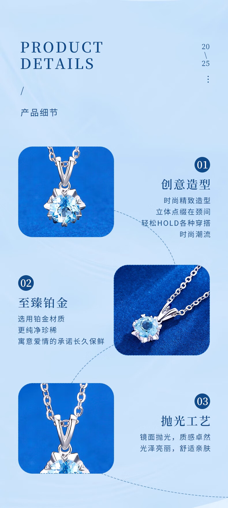 CHINA GOLD PT950 Platinum Star Snowflake Pendant Women's Collarbone Necklace Light Luxury High-end Niche Birthday Gift for Girlfriend Platinum Star Snowflake Pendant About 1.1g Free Silver Chain + Heart-beating Gift Box