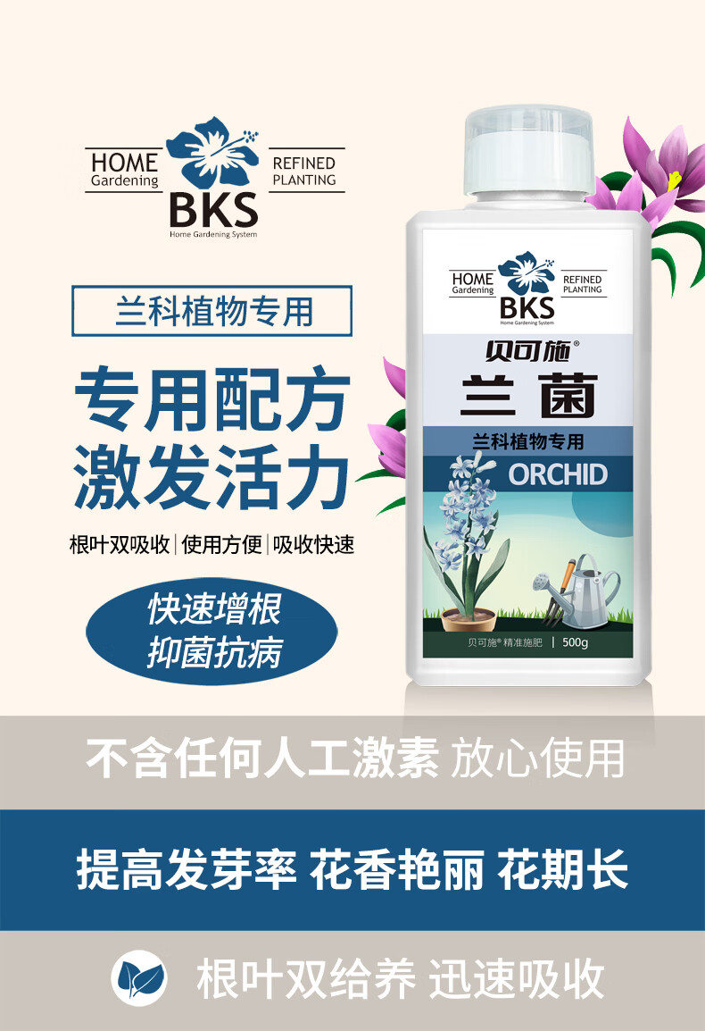 Bekshi orchid special nutrient solution for universal hydroponic nutrition to promote rapid flowering orchid exclusive square bottle orchid 500g/bottle