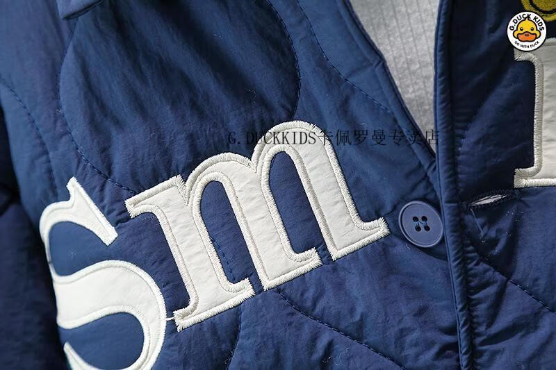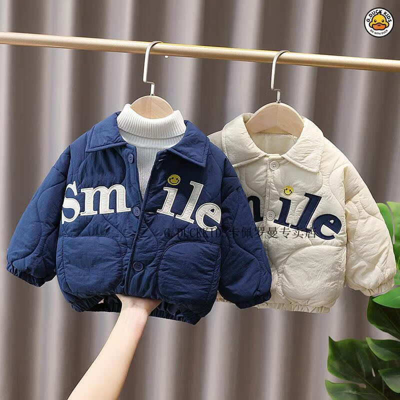G.duck Little Yellow Duck Boys' Autumn and Winter Quilted Warm Cotton Jacket Baby Jacket Baby Letter Smiley Face Thickened Jacket Beige 100 cm