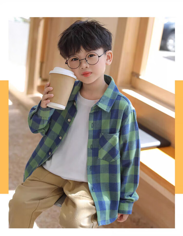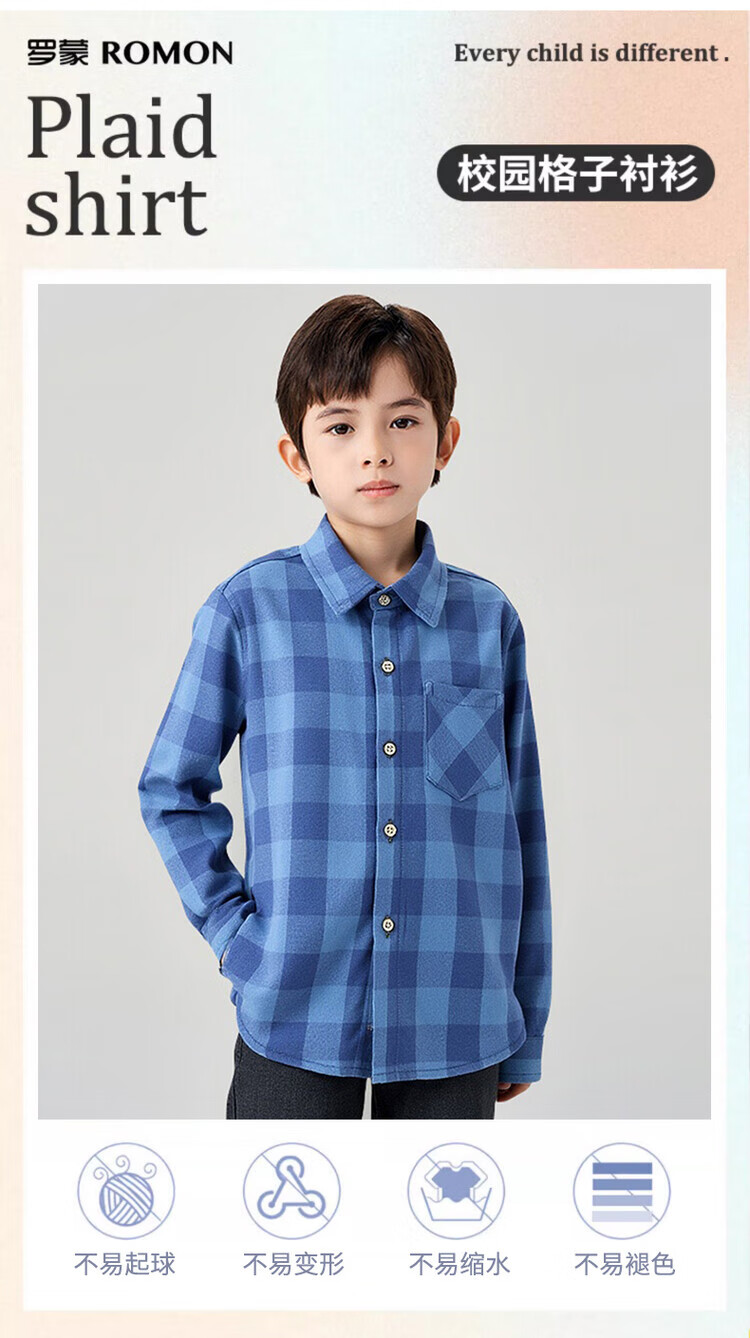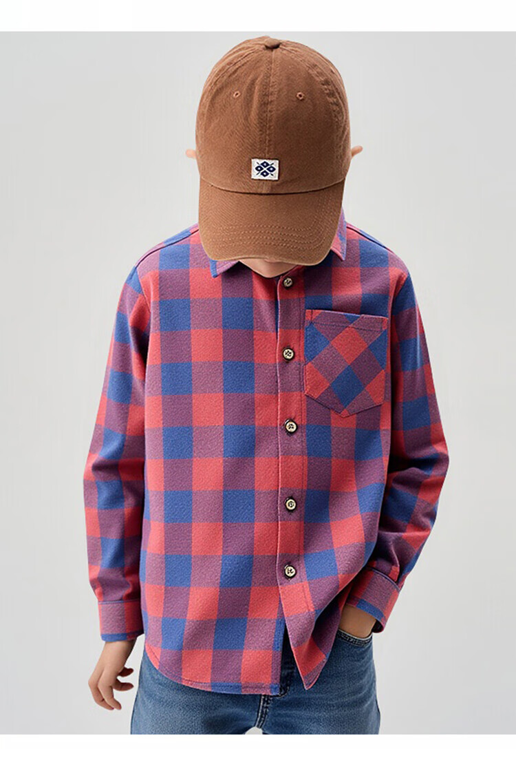 Romon Boys' Shirt Children's 100% Cotton Long Sleeve Plaid Top Spring and Autumn Thin Shirt Pure Cotton Casual Jacket Red Plaid 130 Recommended Weight 50-58Jin Jin is equal to 0.5 kg