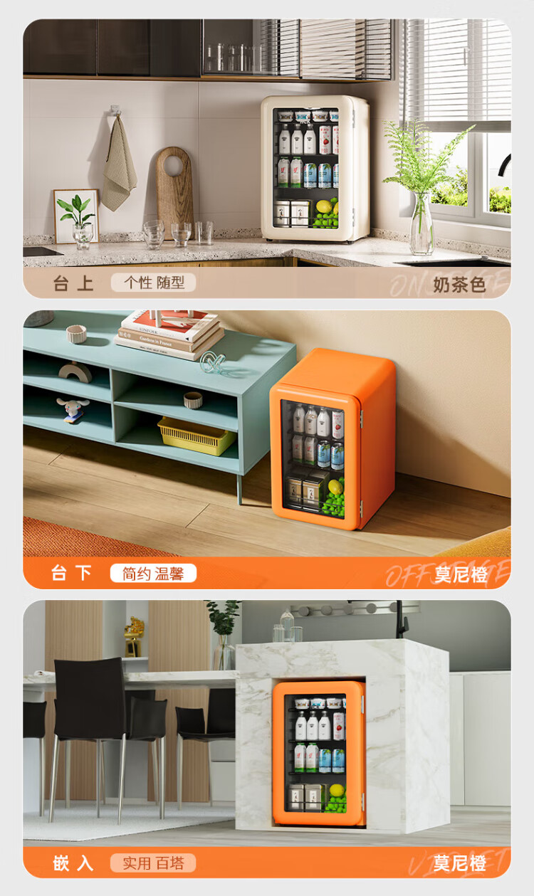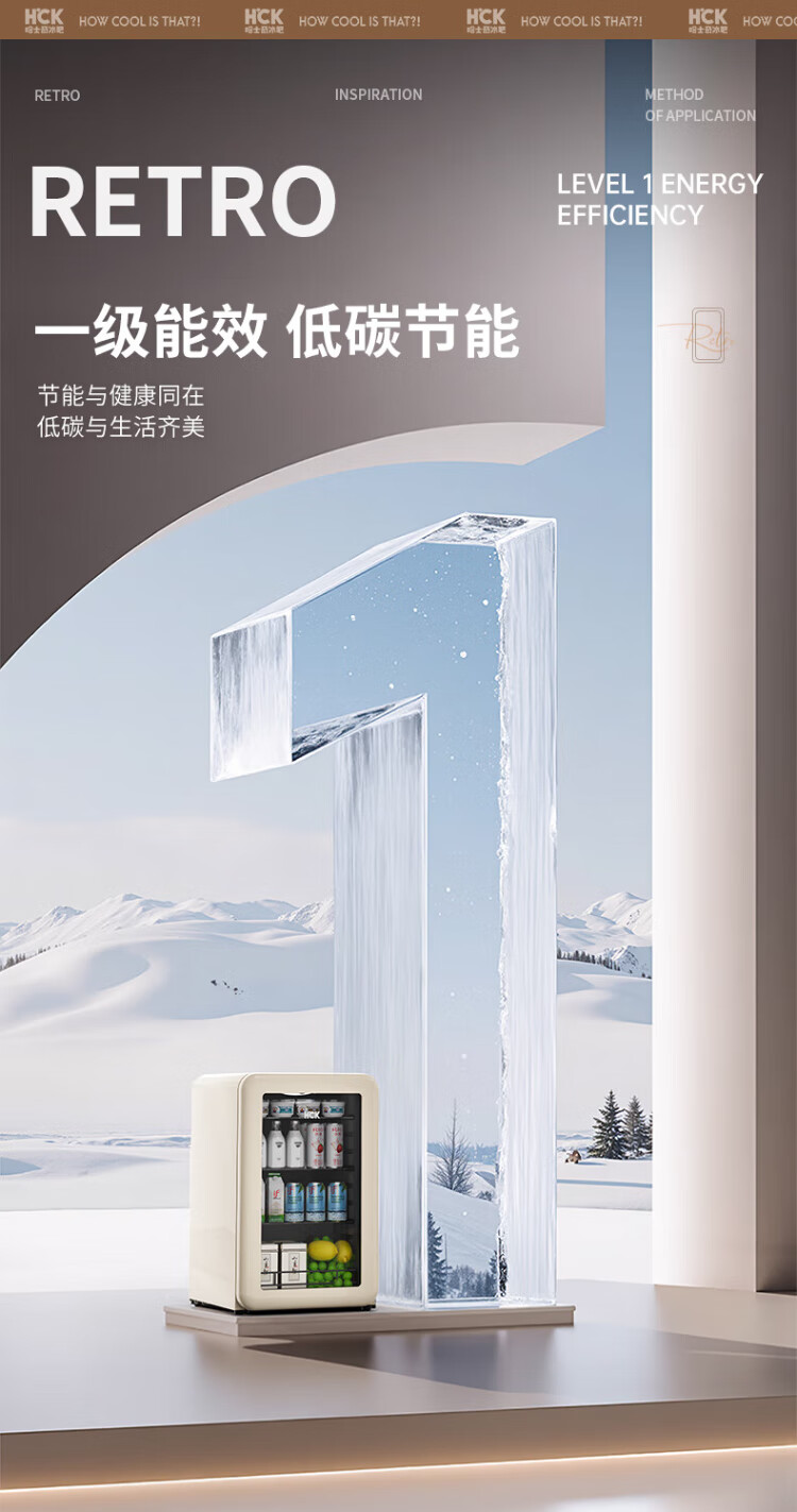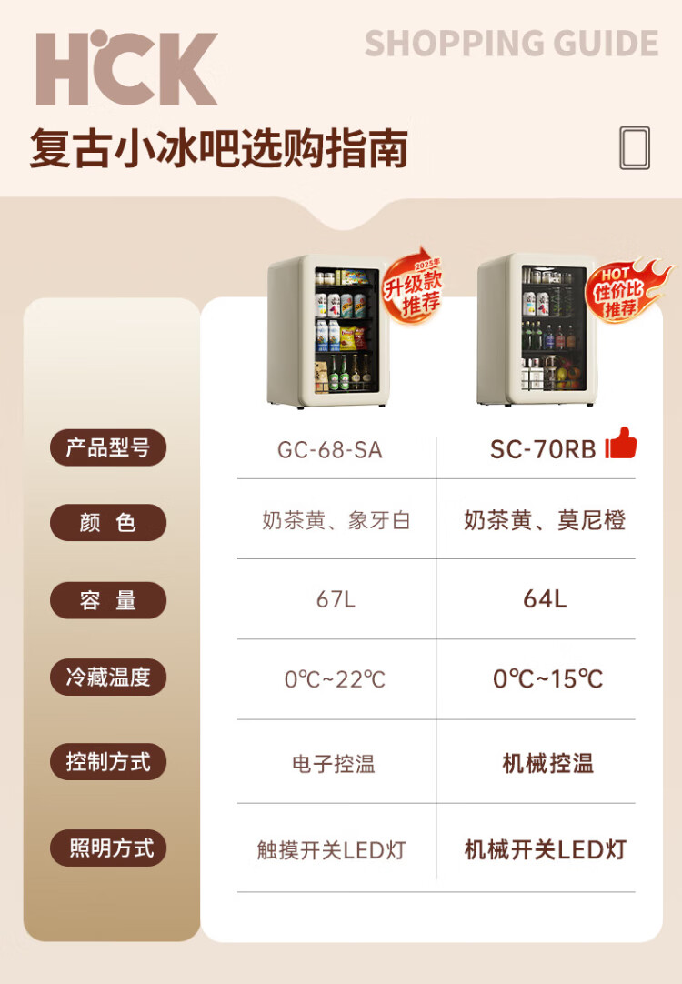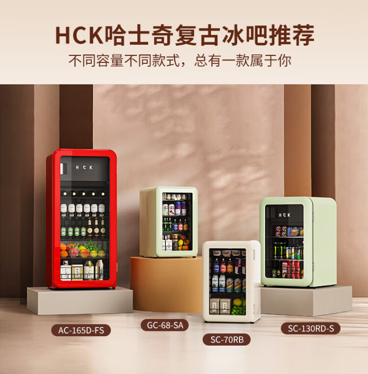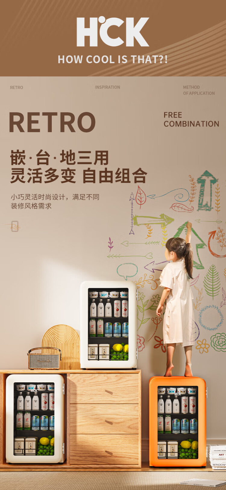 HCK Husky Ice Bar Up to 20% Subsidy Small Mini Refrigerator Retro Small Refrigerator Glass Door 70RB Hotel Apartment B&B Refrigerator Tea Refrigerated Beverage Cabinet Moni Orange Fully Refrigerated 64L | Electronic Temperature Control 64L First Level Energy Efficiency