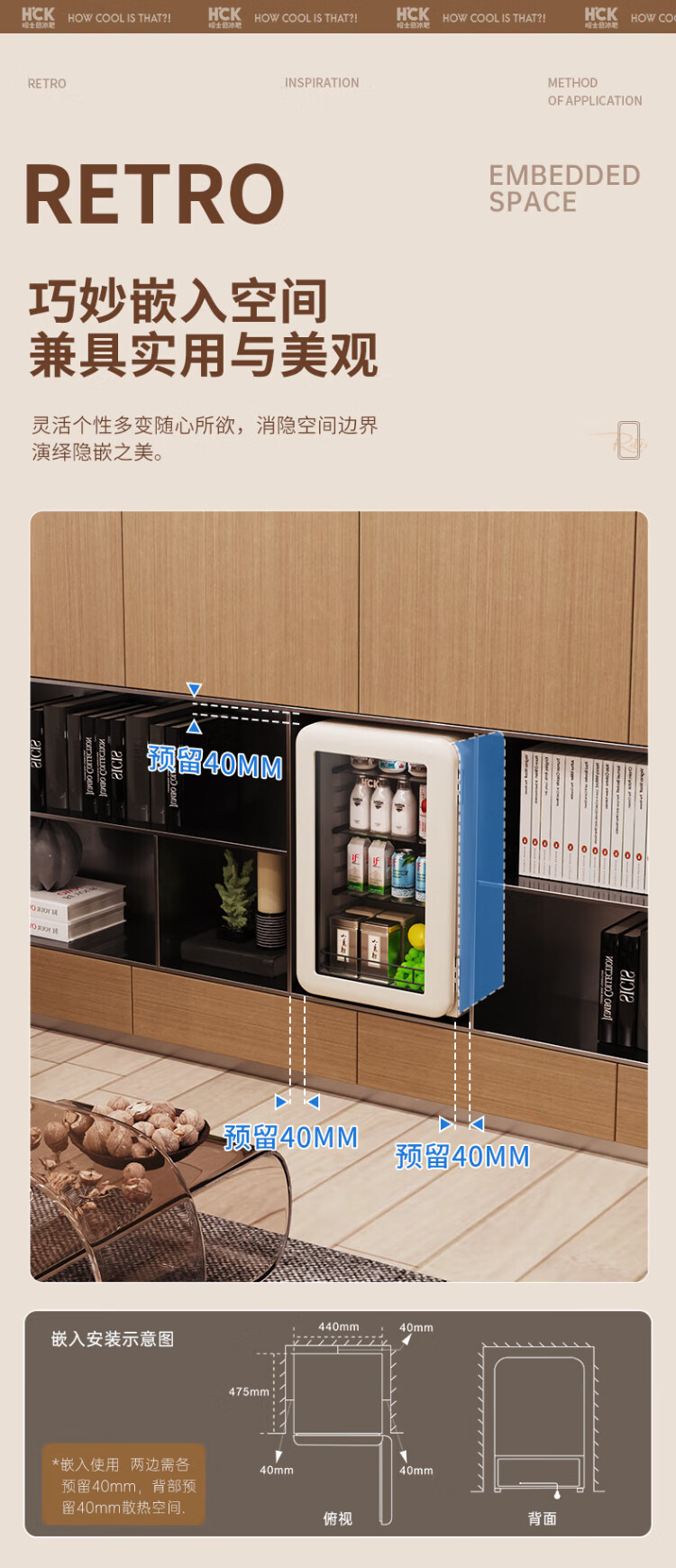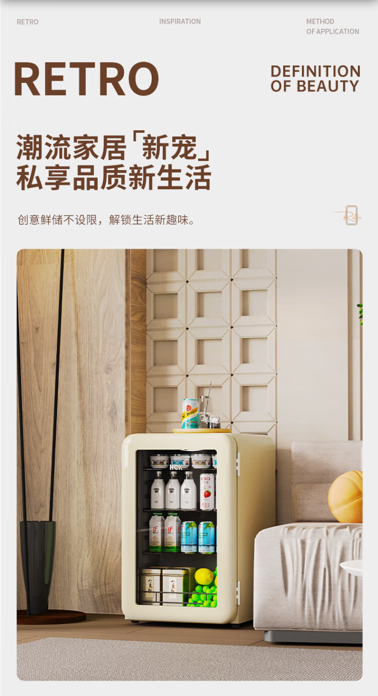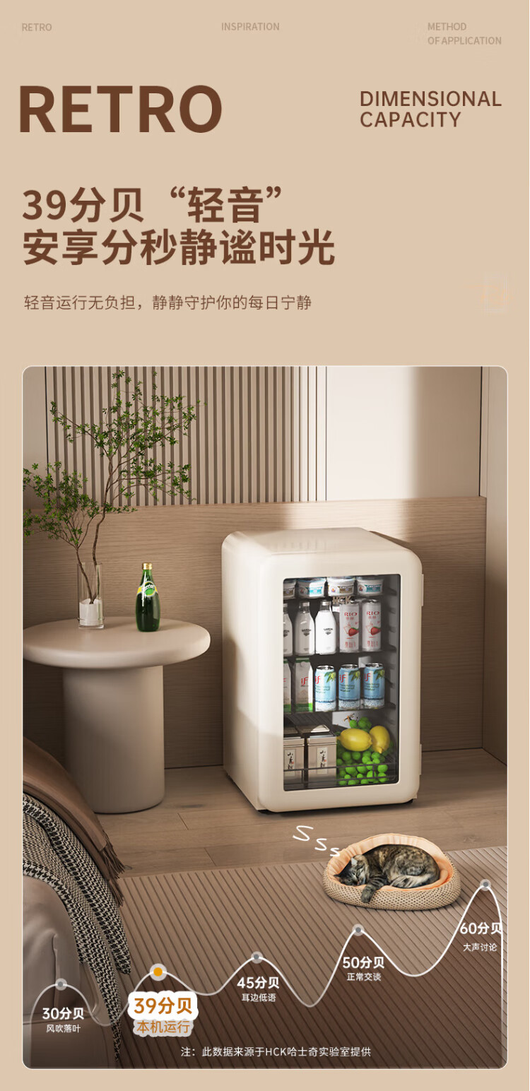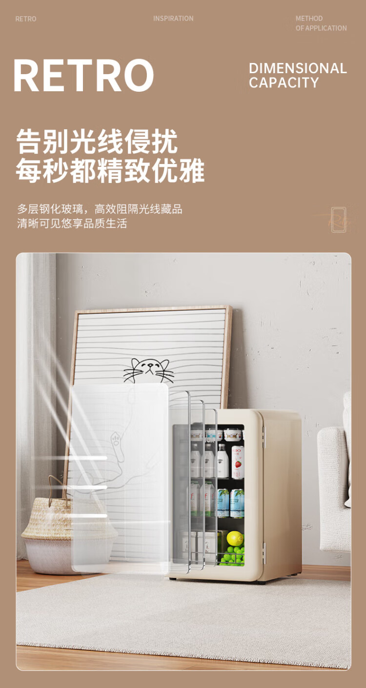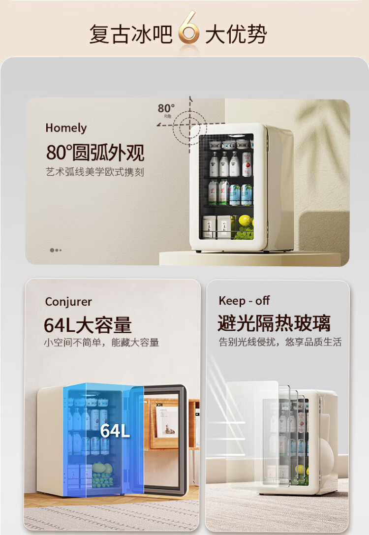 HCK Husky Ice Bar Up to 20% Subsidy Small Mini Refrigerator Retro Small Refrigerator Glass Door 70RB Hotel Apartment B&B Refrigerator Tea Refrigerated Beverage Cabinet Moni Orange Fully Refrigerated 64L | Electronic Temperature Control 64L First Level Energy Efficiency