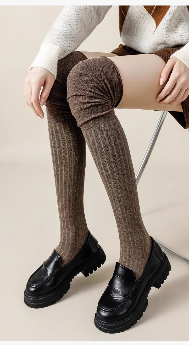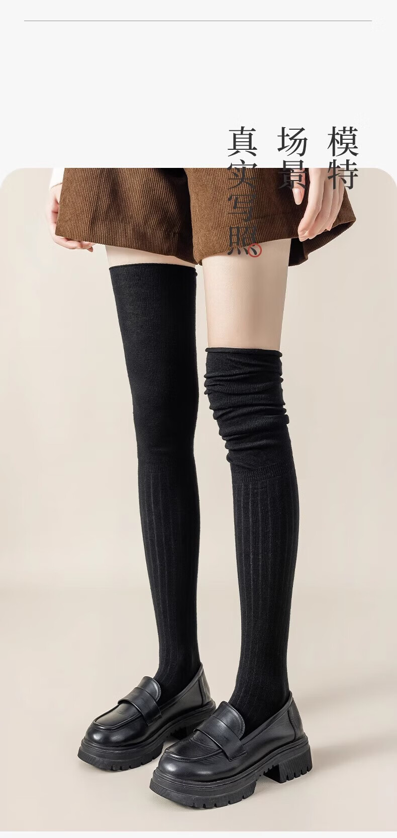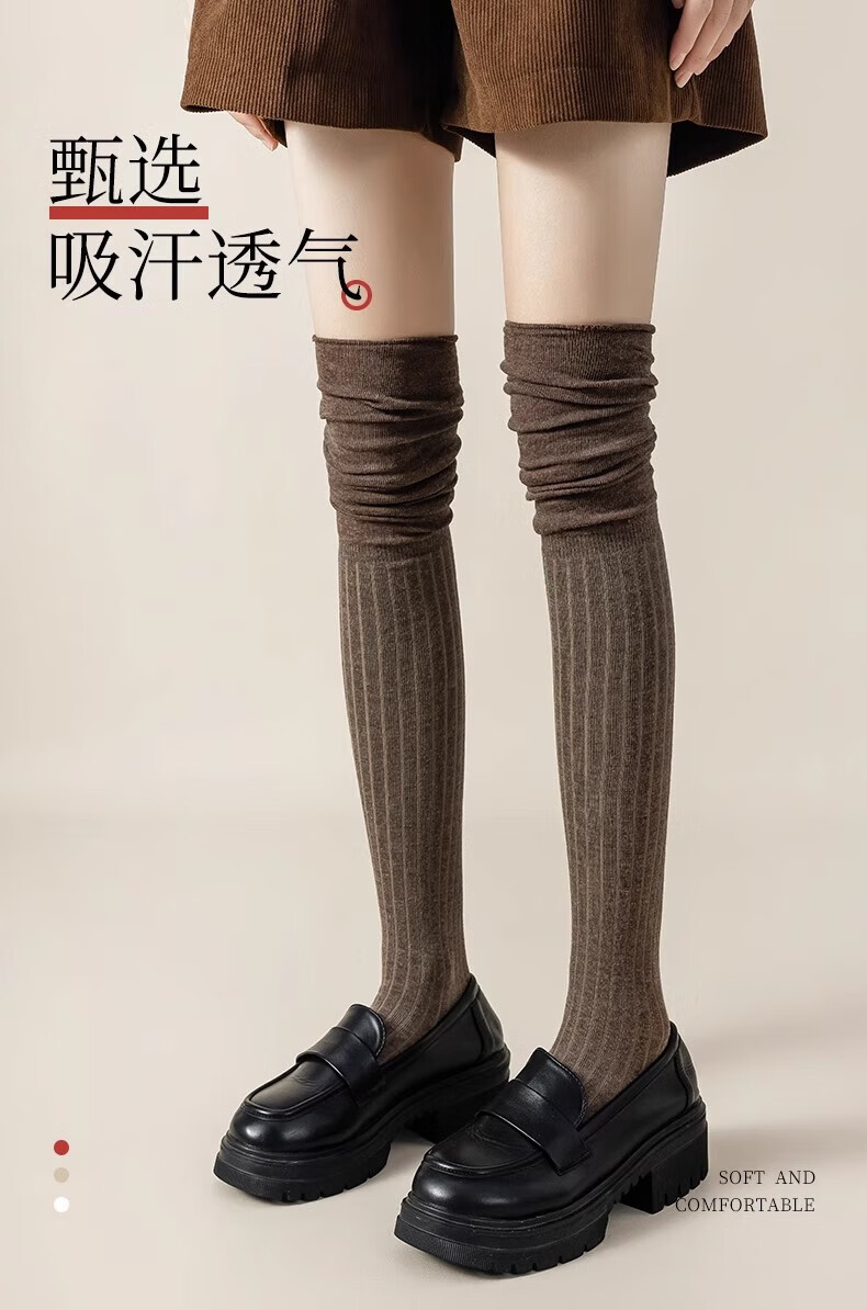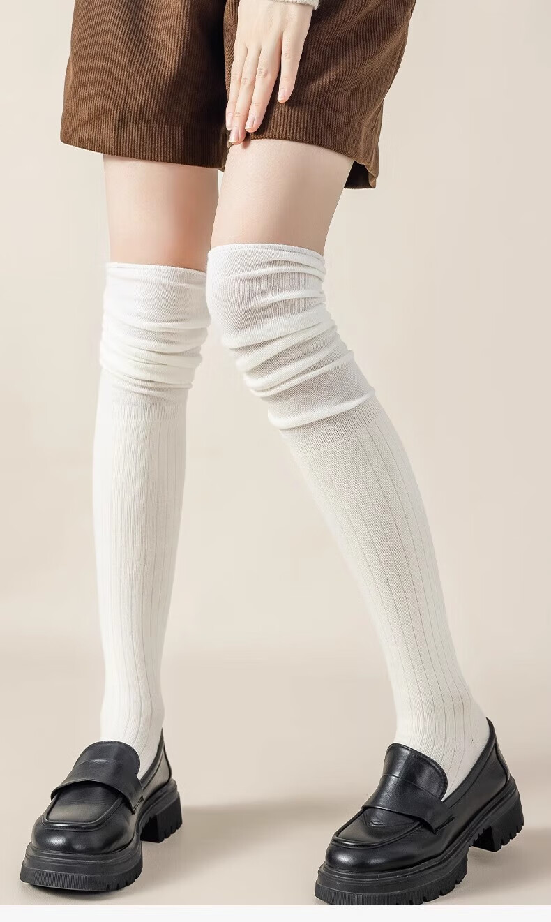 Tanbei long stockings, boot socks, over-the-knee piled pressure socks, women's spring and autumn Maillard matching boots warm socks, over-the-knee piled pressure socks, 1 pair, white