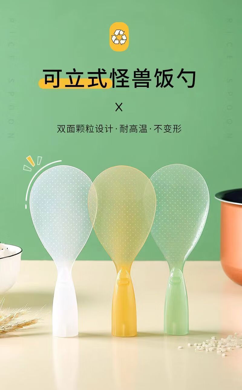 Bei Mu Xing Little Monster thickened non-stick rice spoon for serving rice, non-stick household kitchen measuring spoon plastic rice spoon, high temperature resistant and non-deformable white