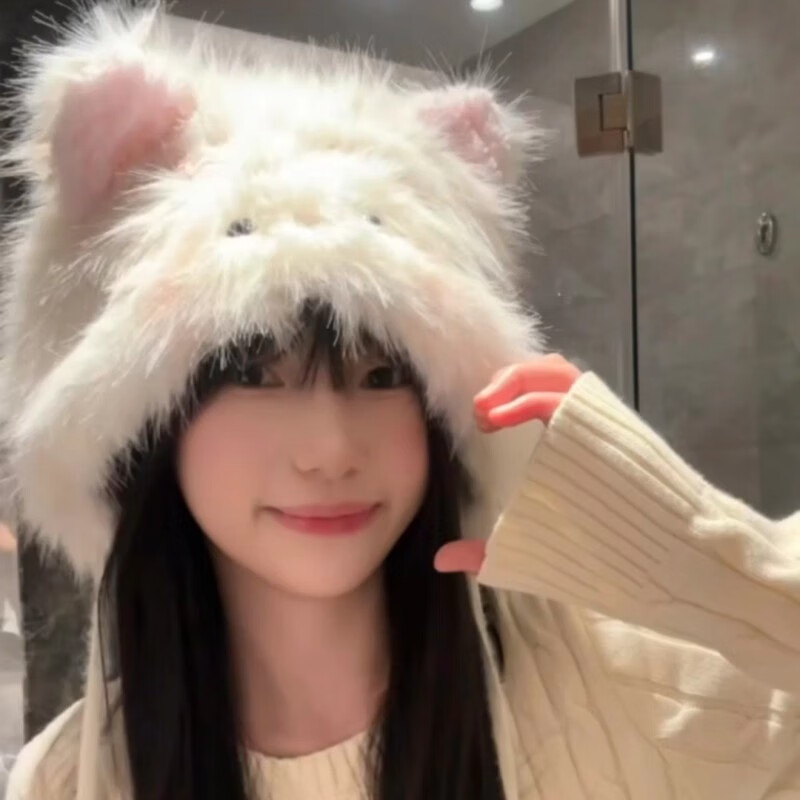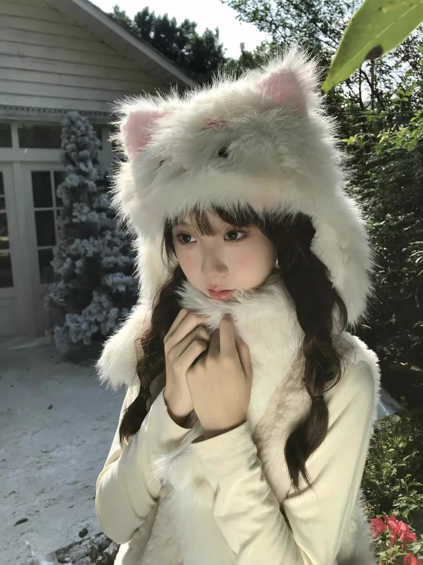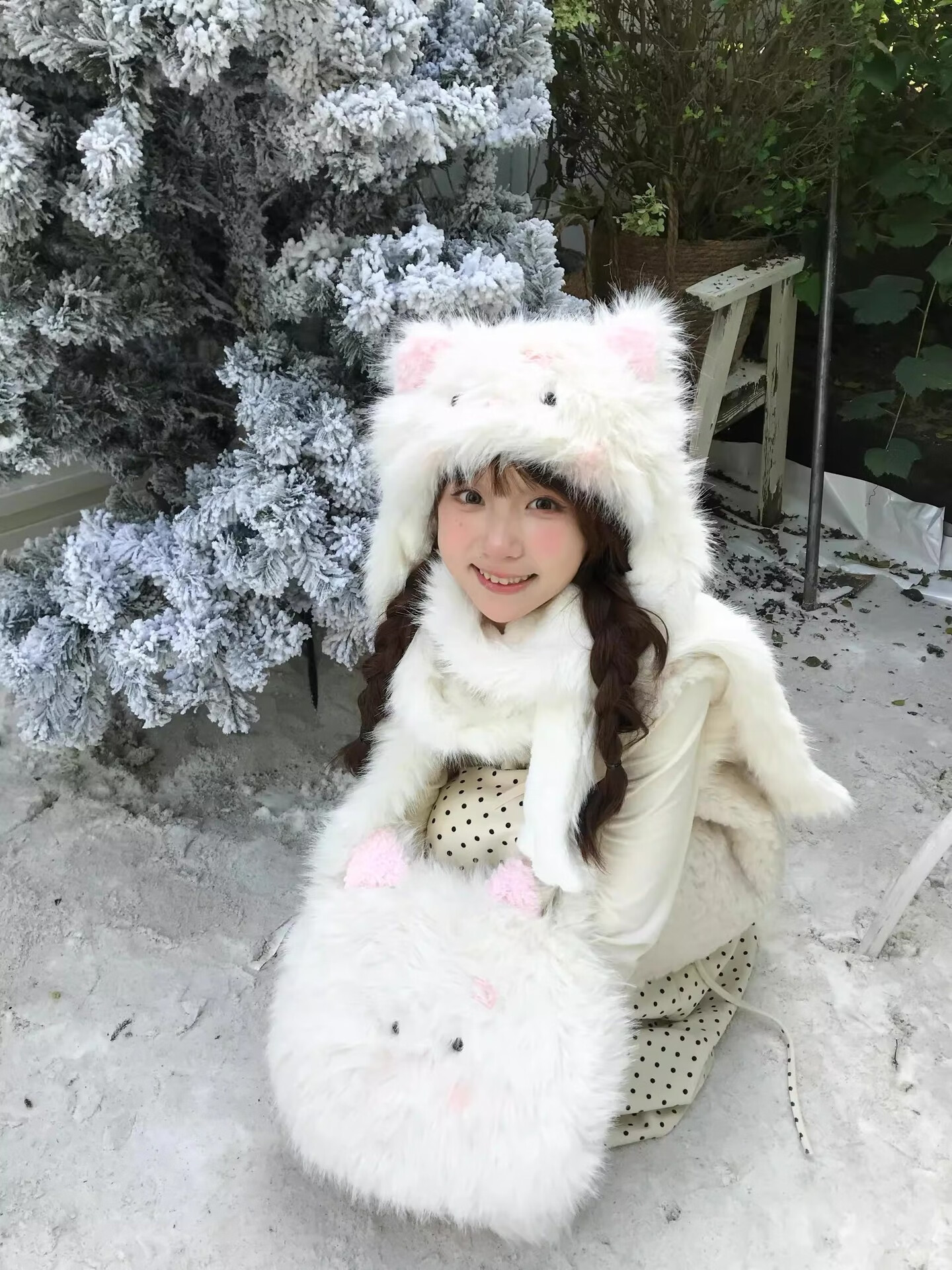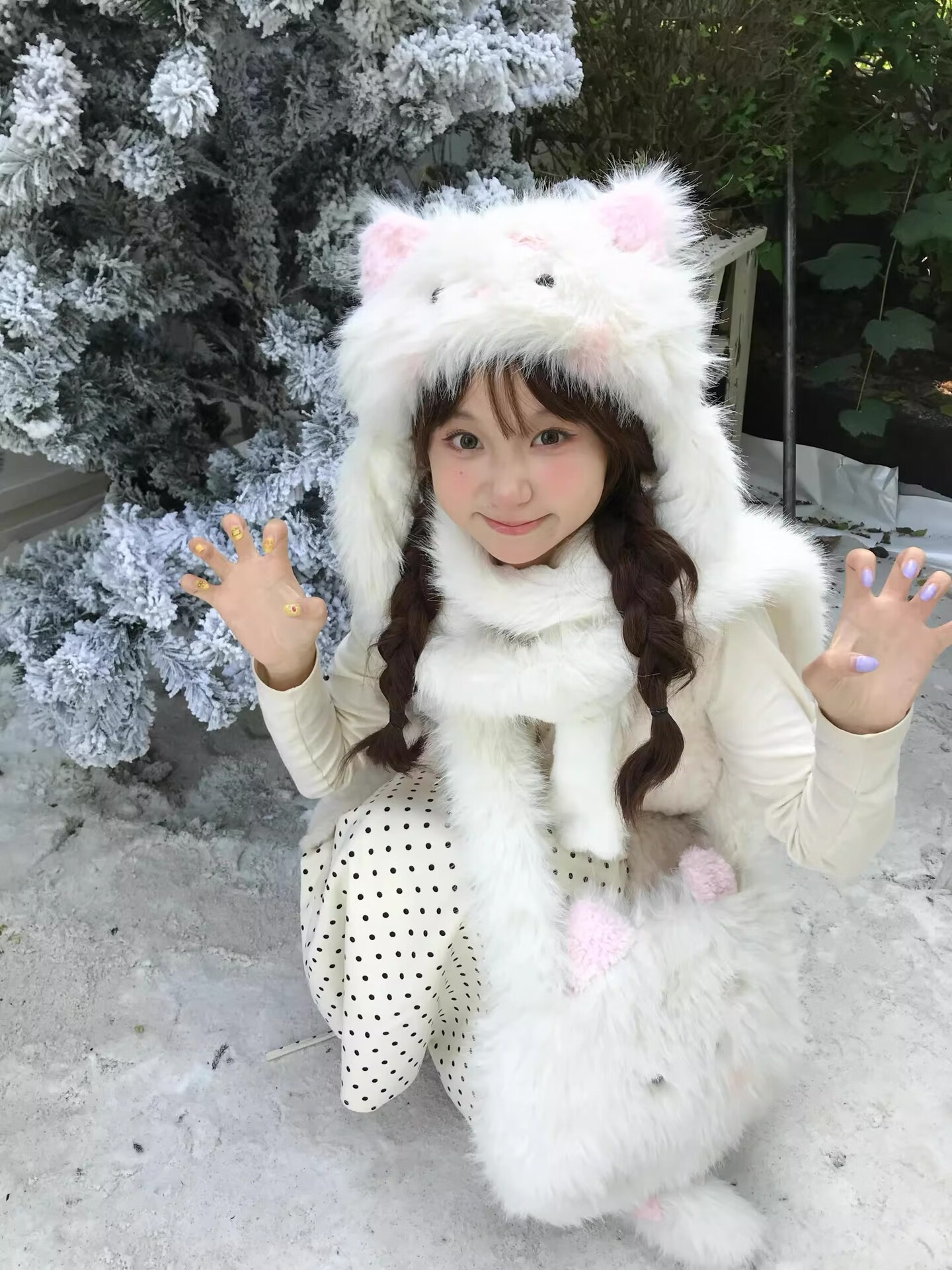 Tuzun Kitten Tail Hat Cute Cat Ears Ear Protection Plush Hat Warm Hat for Traveling and Taking Photos Women Winter Cat Ears Hat and Scarf All-in-one
