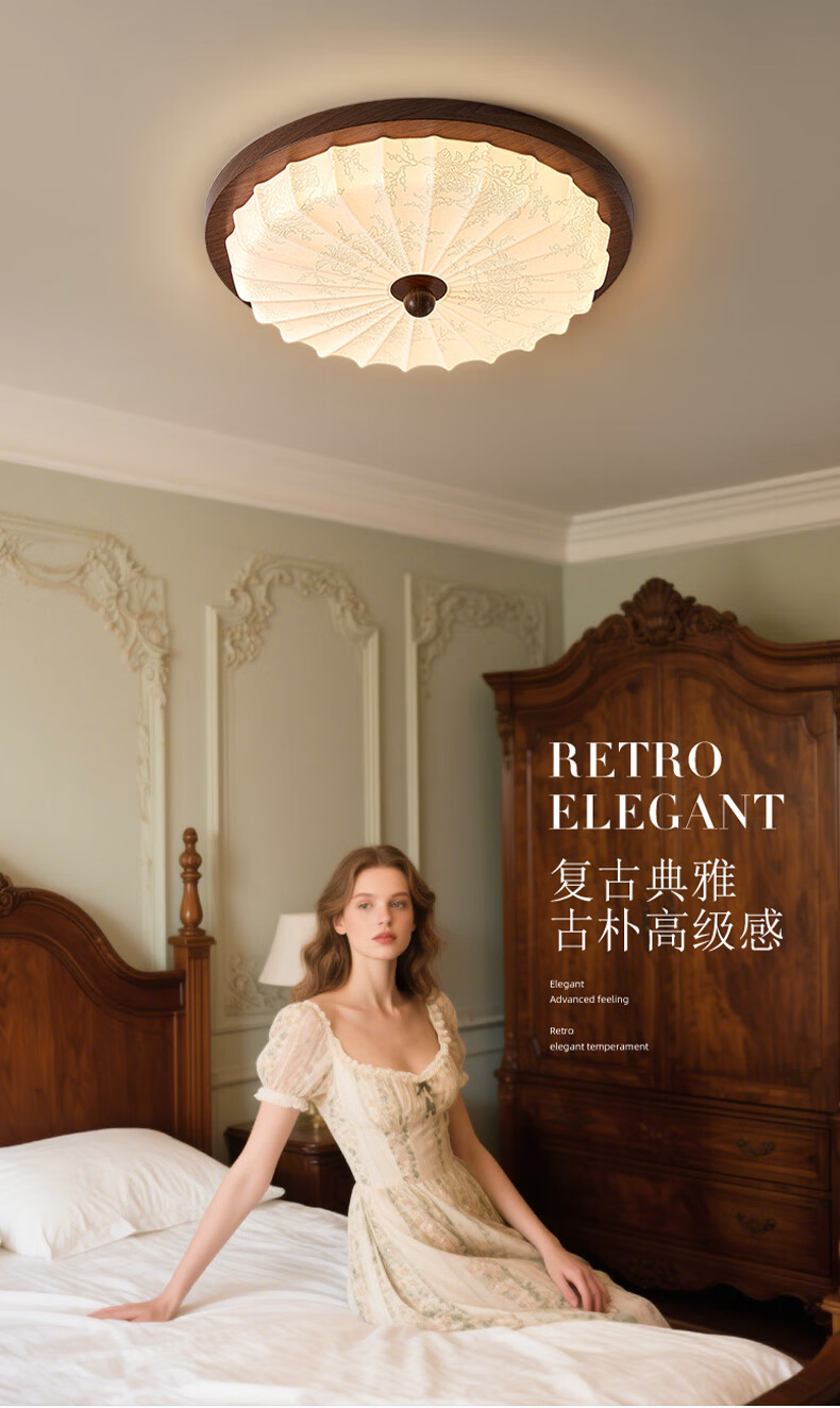 ARROW Medieval Bedroom Lamp Ceiling Lamp Retro Room Lamp Prelight Creative Master Bedroom Walnut Color Lamp Hot Selling! American Prelight Source 44cm-Three Color Segments