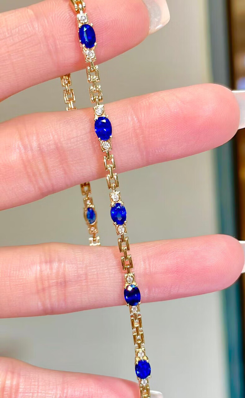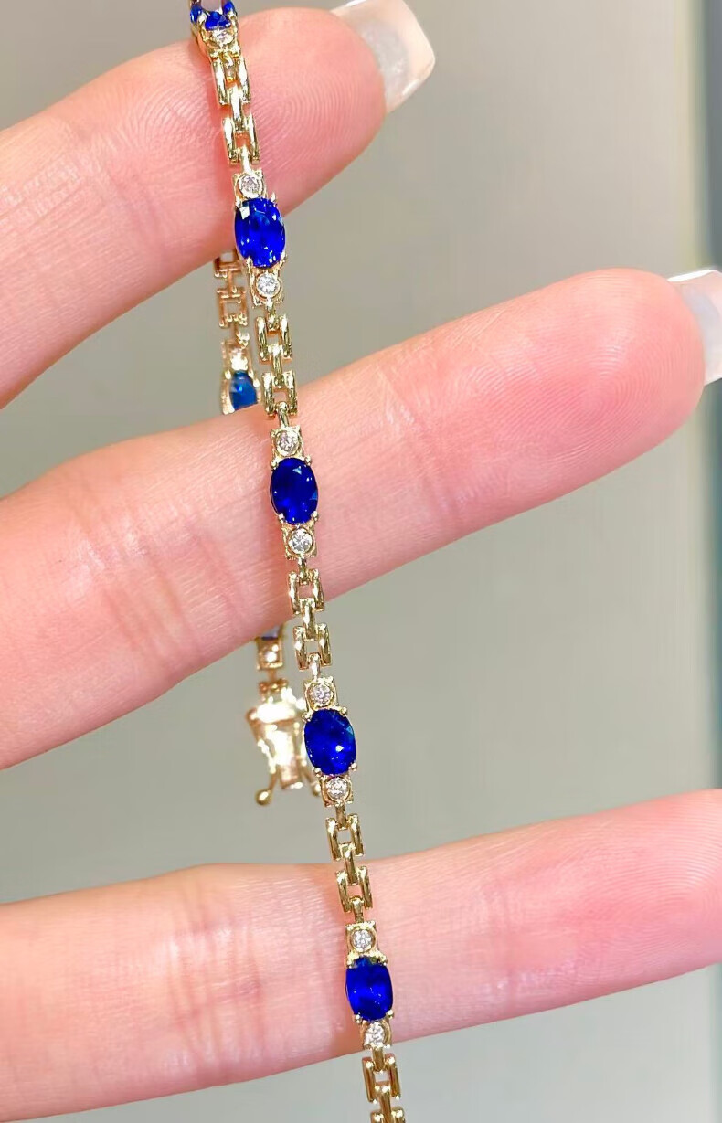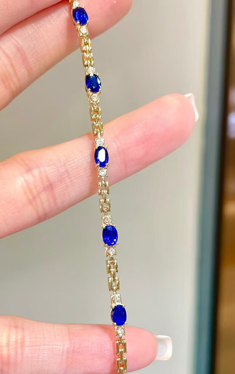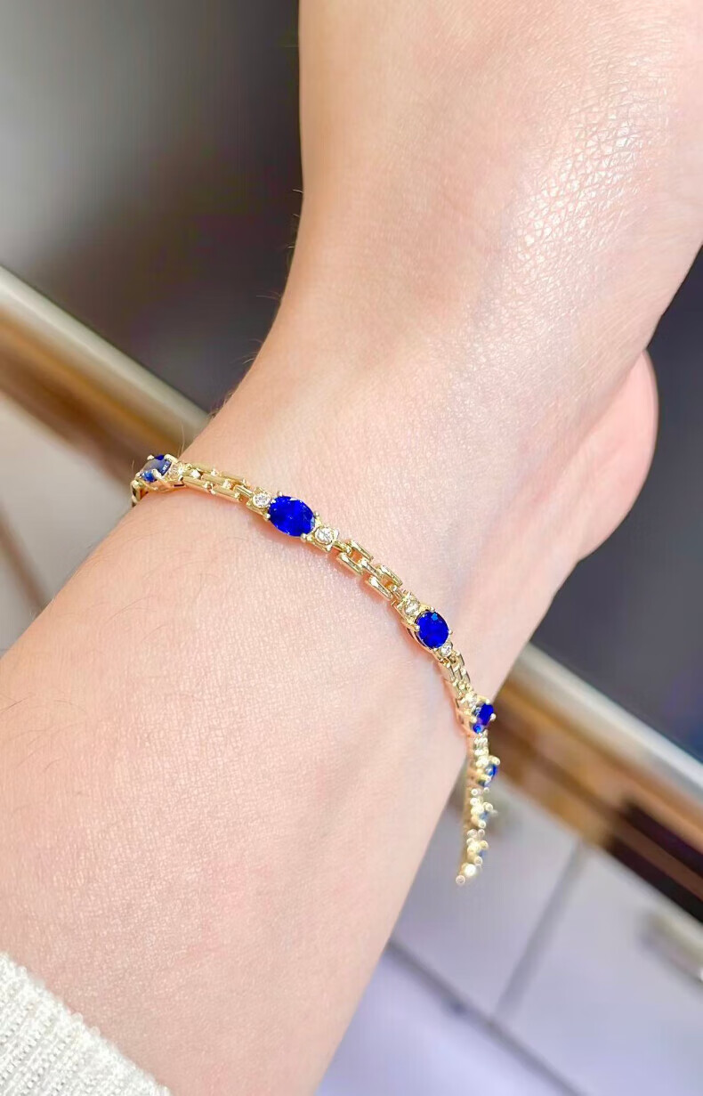 HEEKAIYI Sapphire Bracelet for Women Royal Blue 18k Gold Diamond Bracelet Chinese Valentine's Day Birthday Gift for Wife and Girlfriend Selected 3.2 Carat/Royal Blue