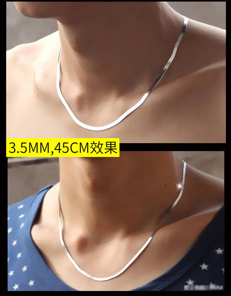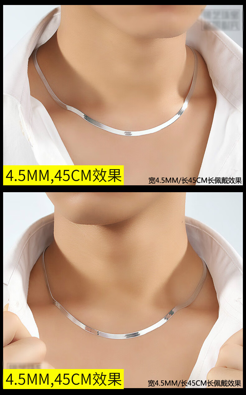 MZMZ platinum snake bone necklace for men and women pt950 platinum flat clavicle versatile plain chain Valentine's Day birthday gift for boyfriend when/next day delivery - light luxury width 3.5mm chain length 40cm