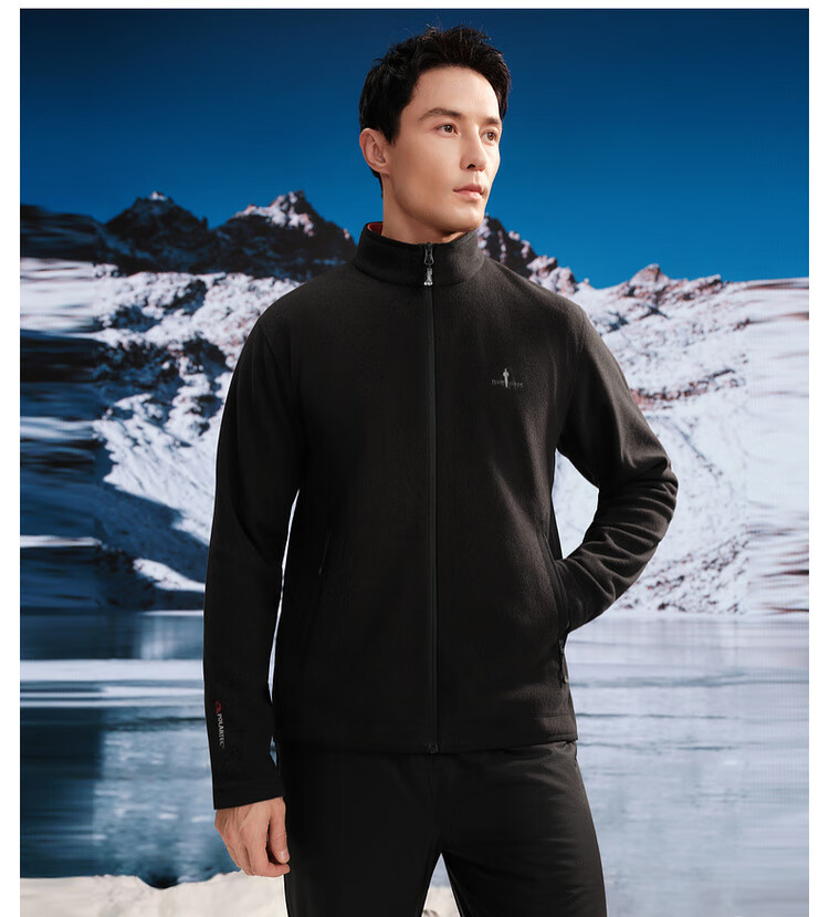 Biyinlefen POLARTEC Fleece New Technology 2025 Autumn and Winter New Men's Outdoor Stand Collar Knitted Jacket Jacket 07 Black L (105)