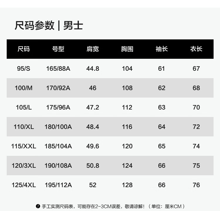 China (cm) 165 / 88-90 170 / 96-98 175 / 108-110 180 / 118-122 185 / 126-130