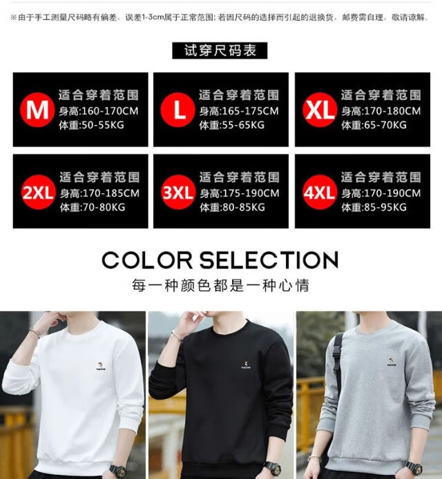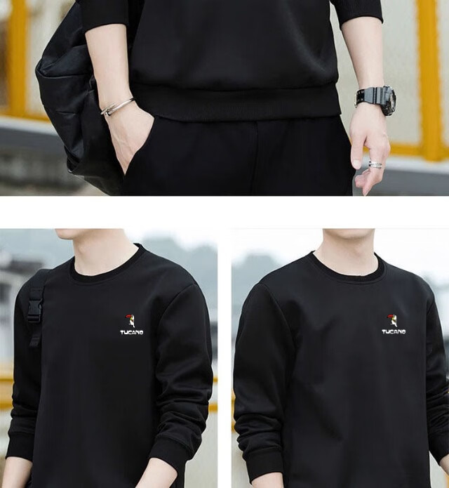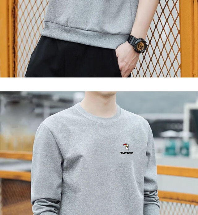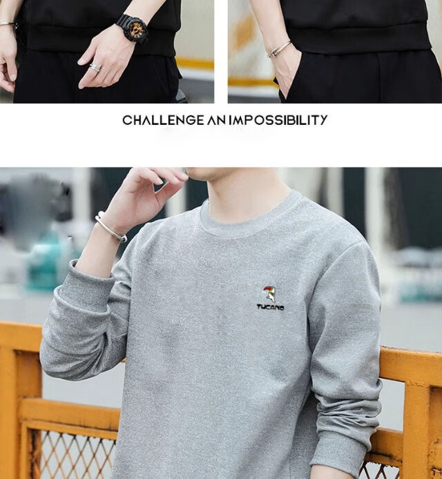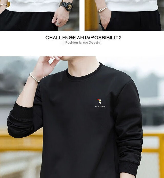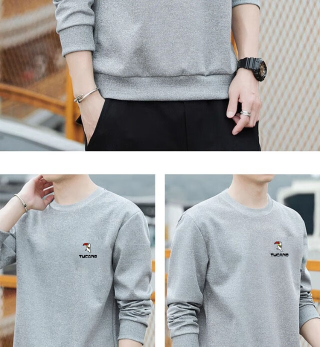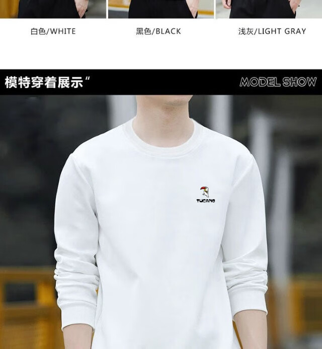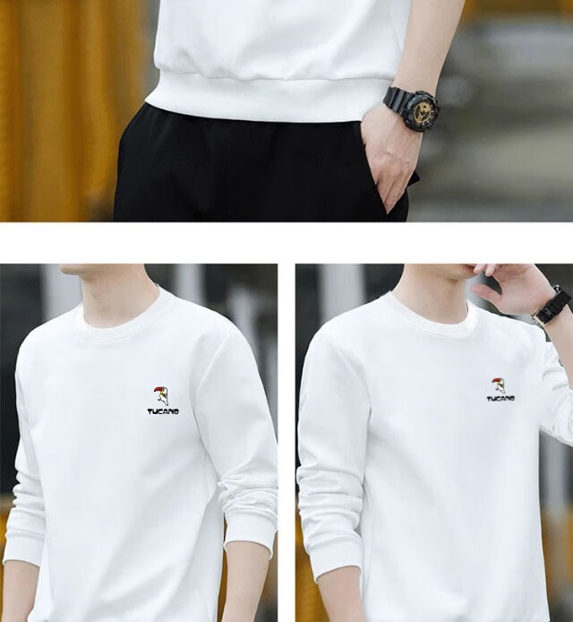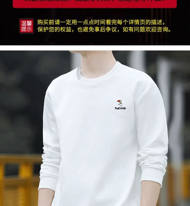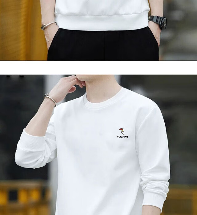 Woodpecker (TUCANO) sweatshirt men's autumn casual loose round neck versatile pure cotton long-sleeved T-shirt youth bottoming shirt men's white - no velvet XL (recommended 115-135Jin Jin equals 0.5 kg)