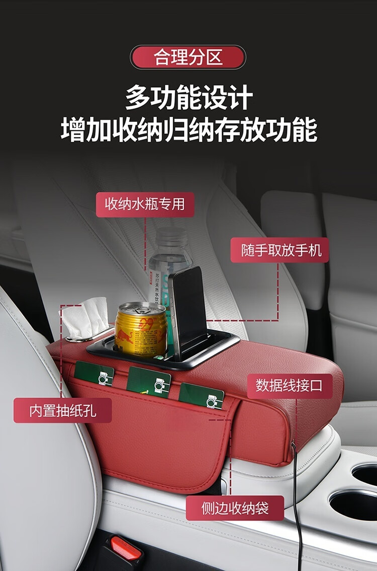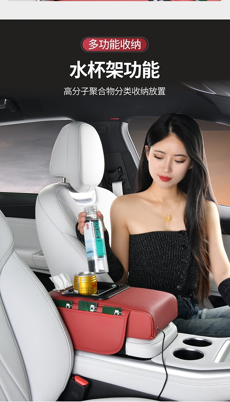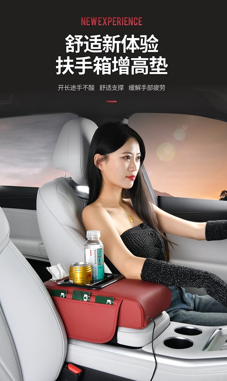 New charging four-in-one car armrest box pad suitable for Nissan Teana Sylphy height increasing pad multi-functional storage carton universal large armrest box-classic black Sylphy
