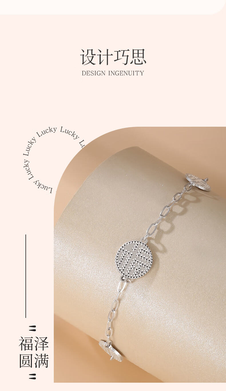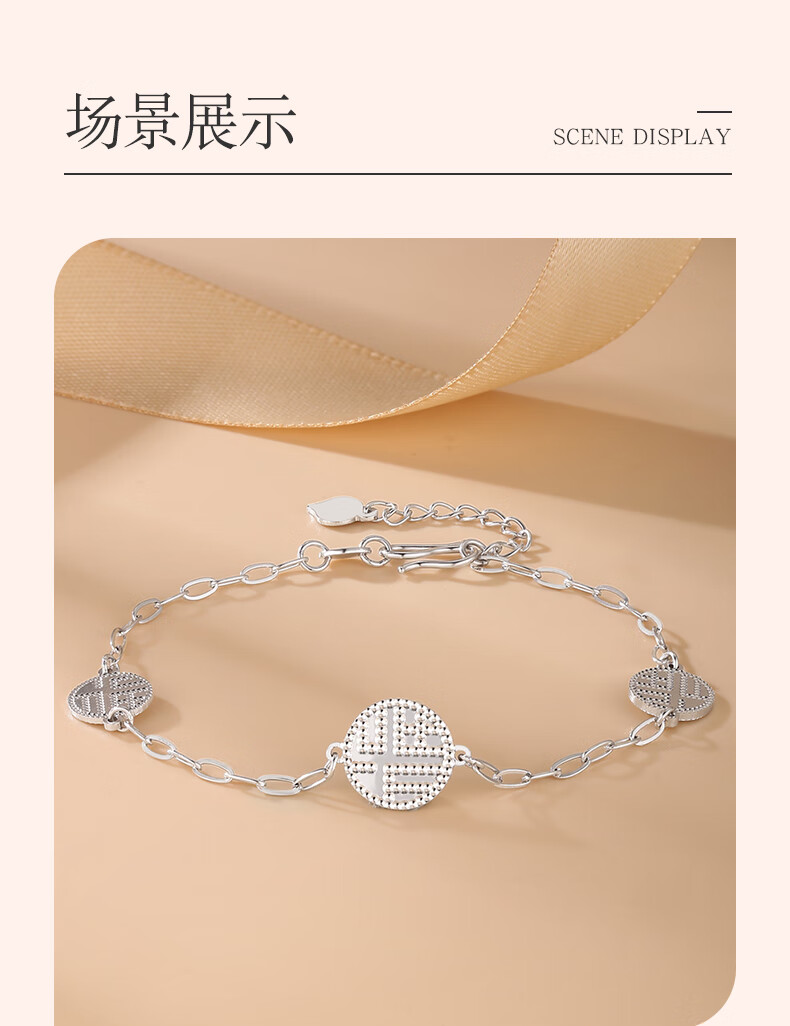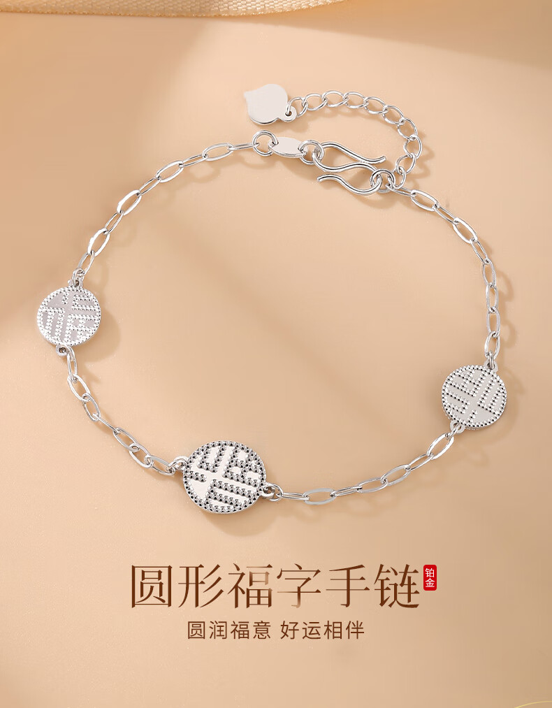 Cuihua pt950 platinum round lucky adjustable bracelet for girlfriend and wife on birthday and anniversary gift, fashionable and versatile, about 5g
