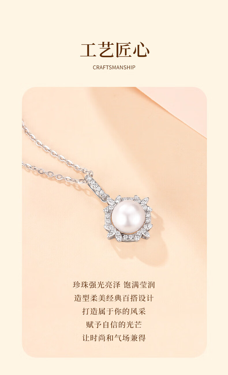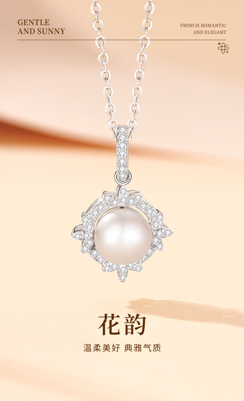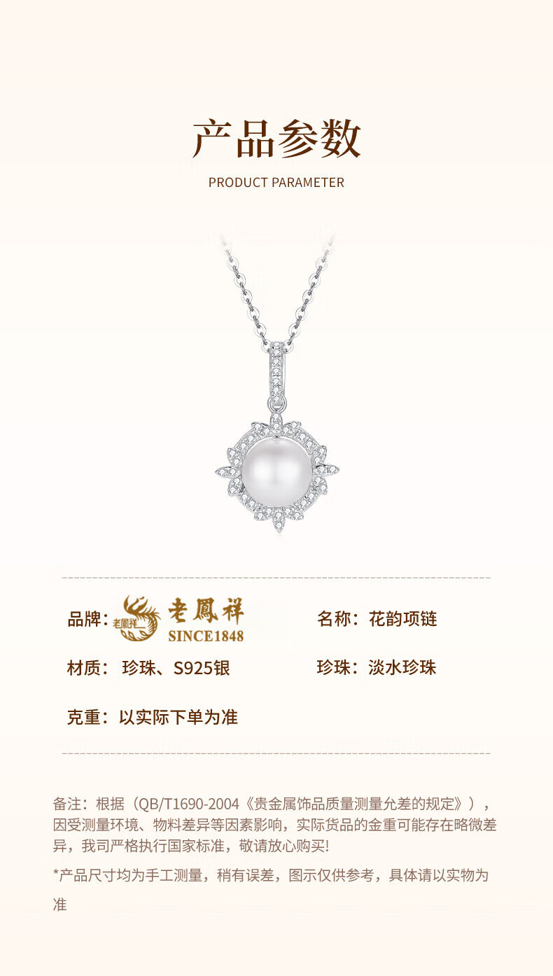 Lao Fengxiang 925 Silver Flower Rhyme Pearl Necklace, Light Luxury Niche Clavicle Chain Feeling Birthday Gift for Girlfriend, Wife and Best Friend Flower Rhyme Pearl Pendant, Free Pure Silver Chain*Rose Gift Box