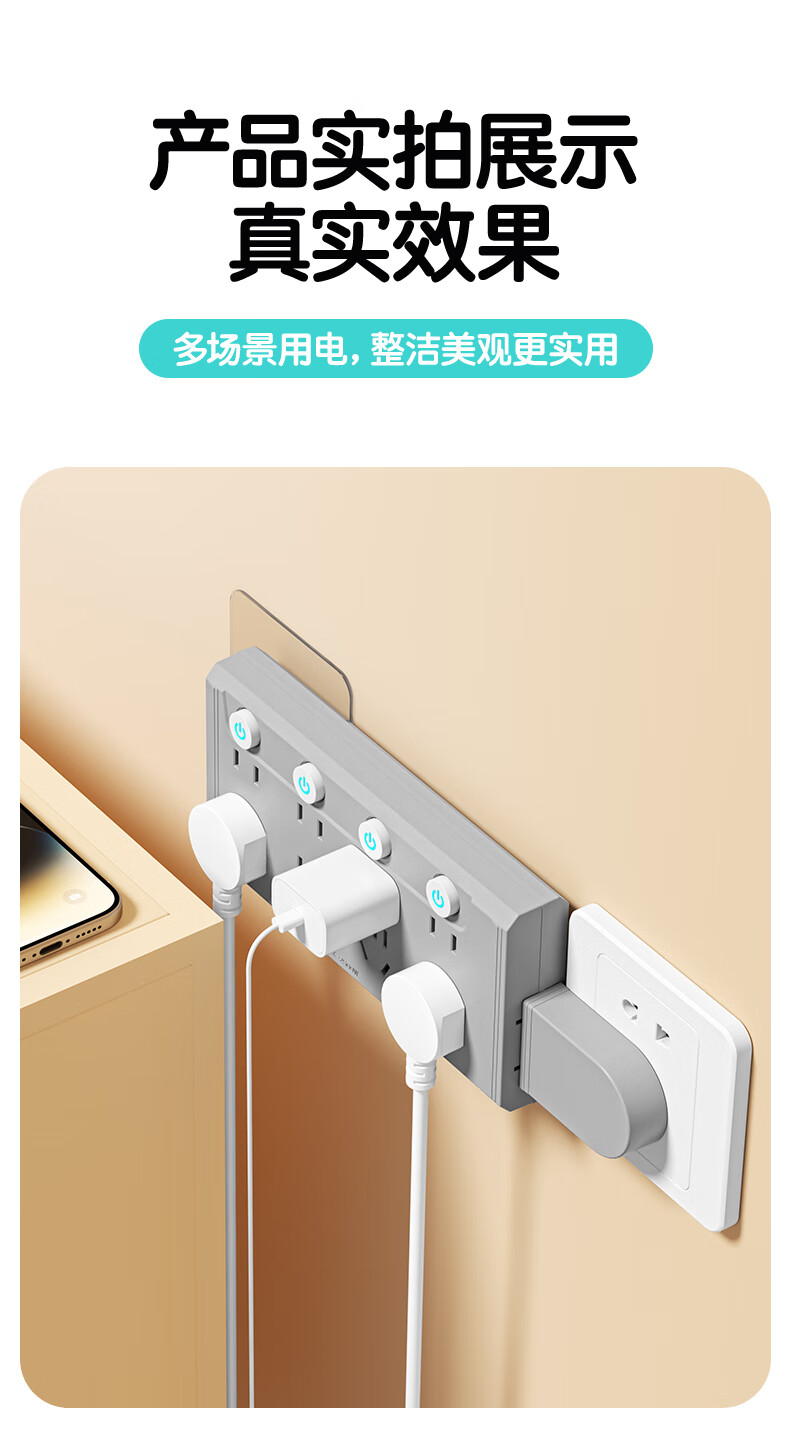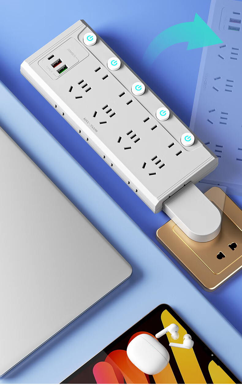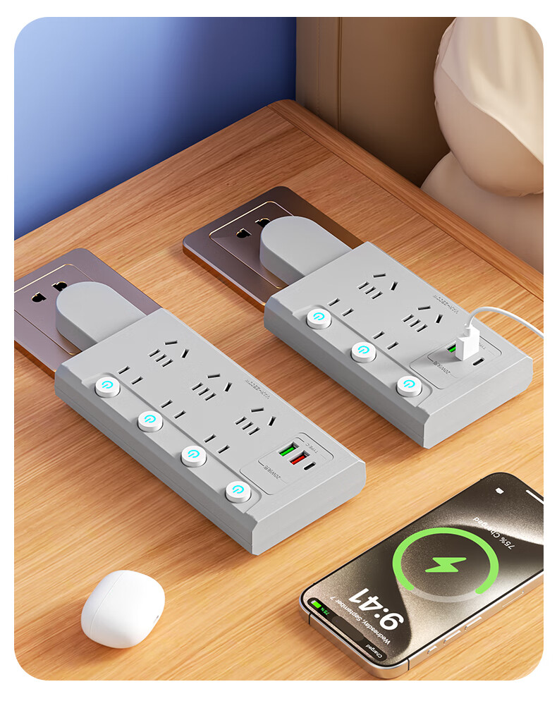 JD Logistics Wireless Socket Xiaomi Same Style Expansion Rotatable Plug Desktop Socket Converter Multi-Function Plug-in Board Gray 104 Expansion Socket + Rotation Plug 20W Fast Charging Version