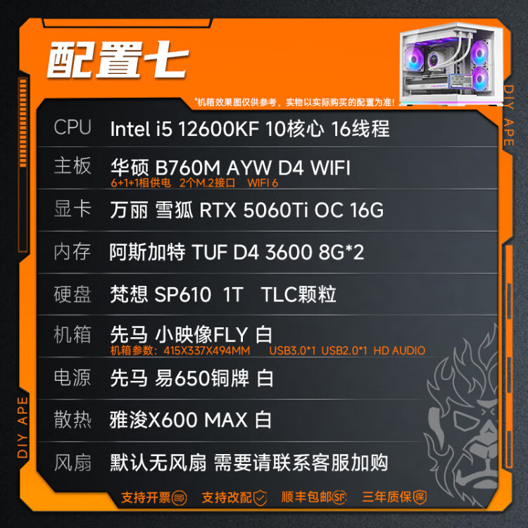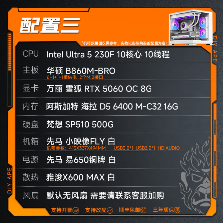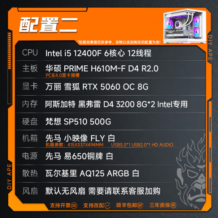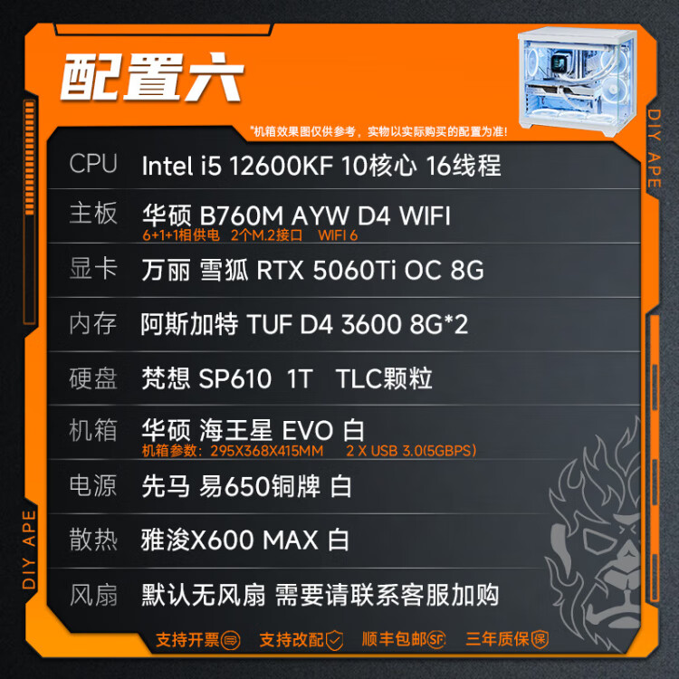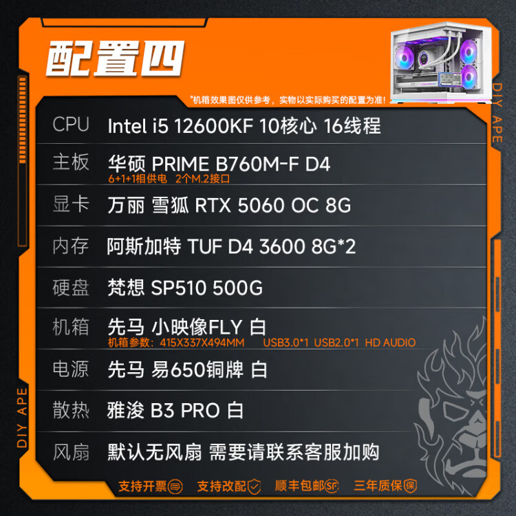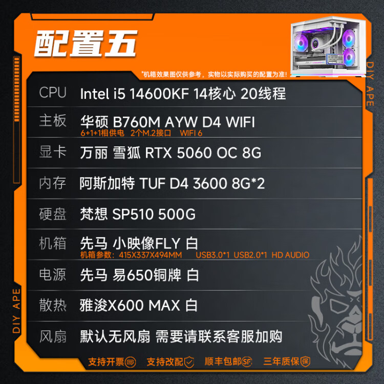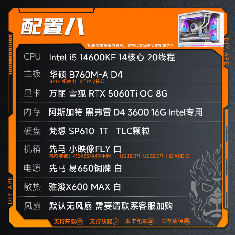 DIY APE installation ape 12600KF/14600KF/12400F host RTX5050/5060/5060TI graphics card E-sports live broadcast 3A game desktop complete assembly computer 9 14600KF+RTX5060TI-16G