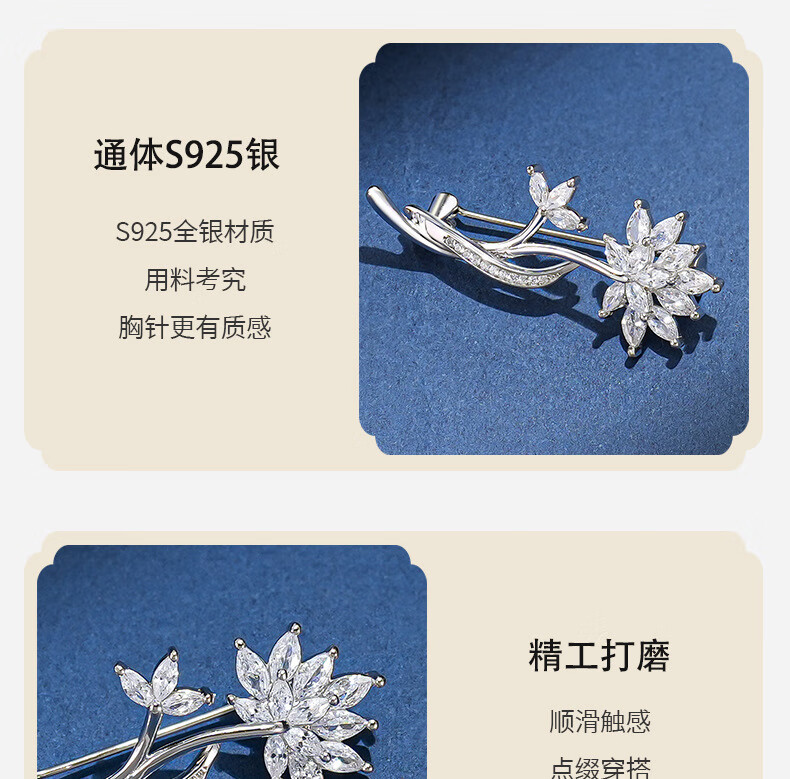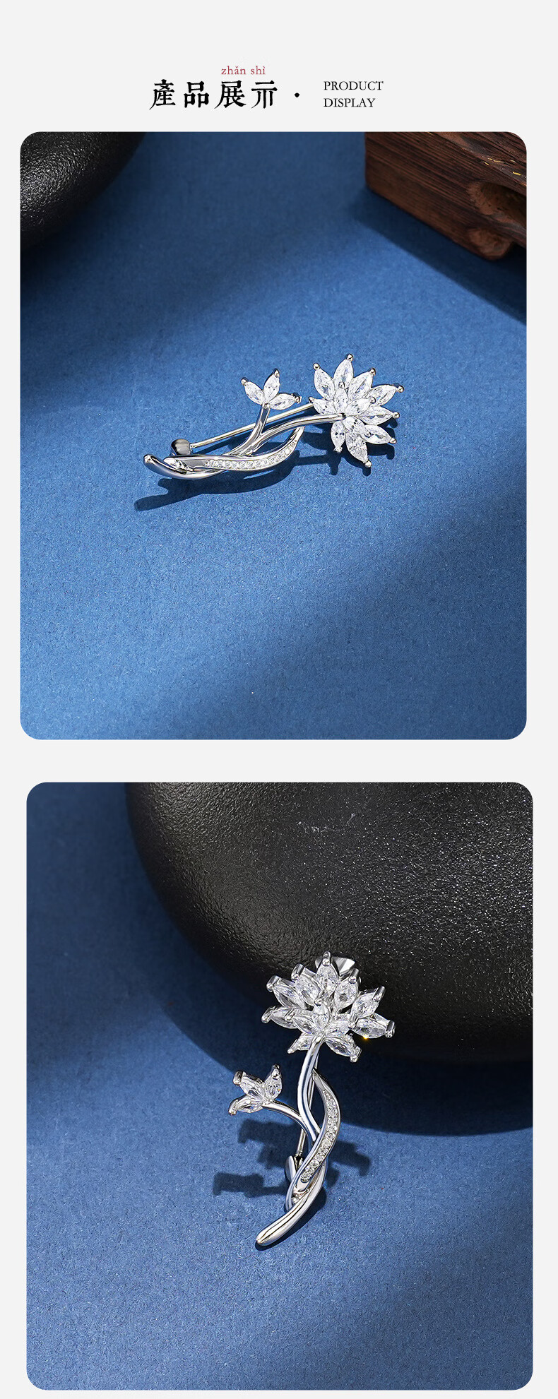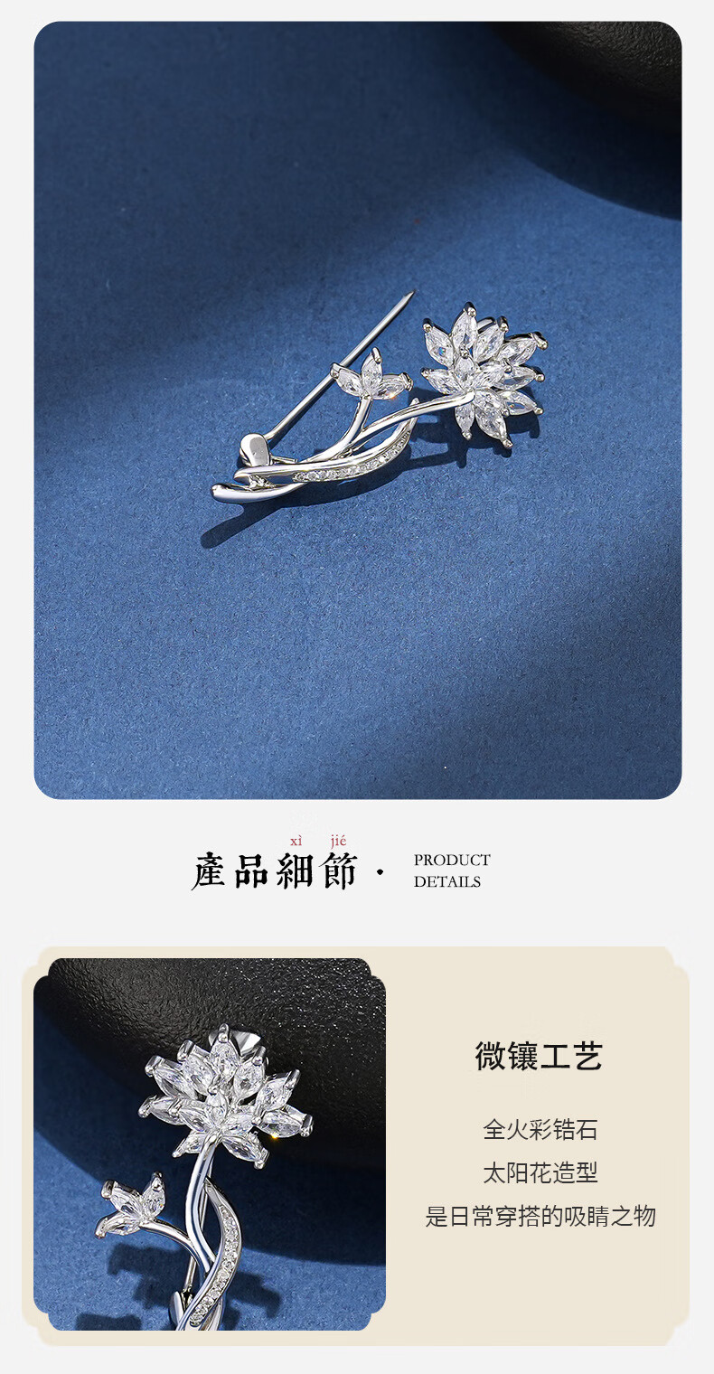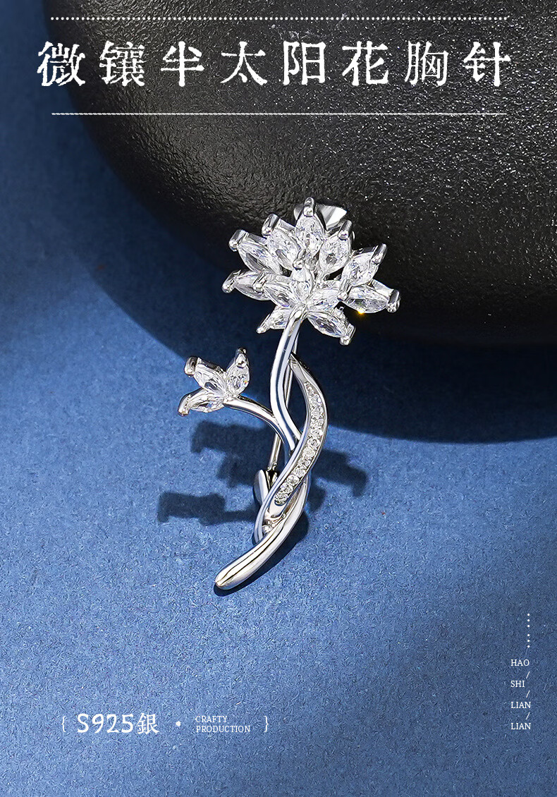 Lao Fengxiang S925 silver sunflower brooch, high-end women's light luxury and elegant birthday gift for girls, exquisite niche and practical L-X06 sunflower brooch-brand gift box