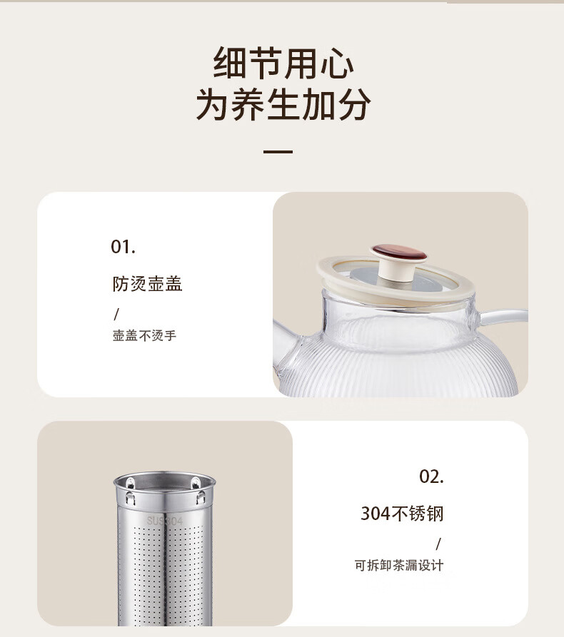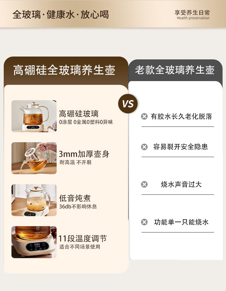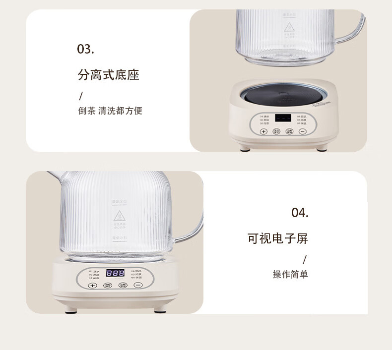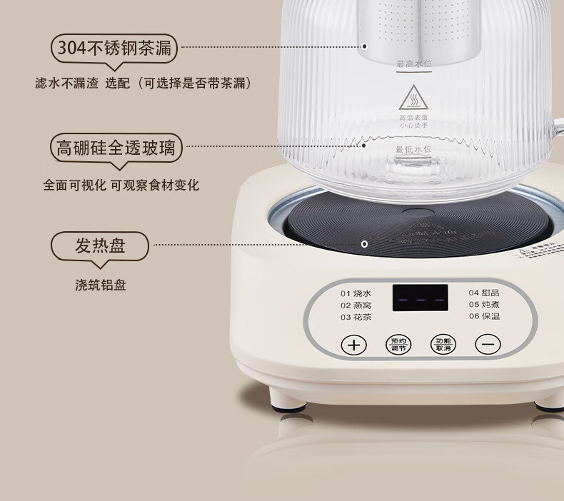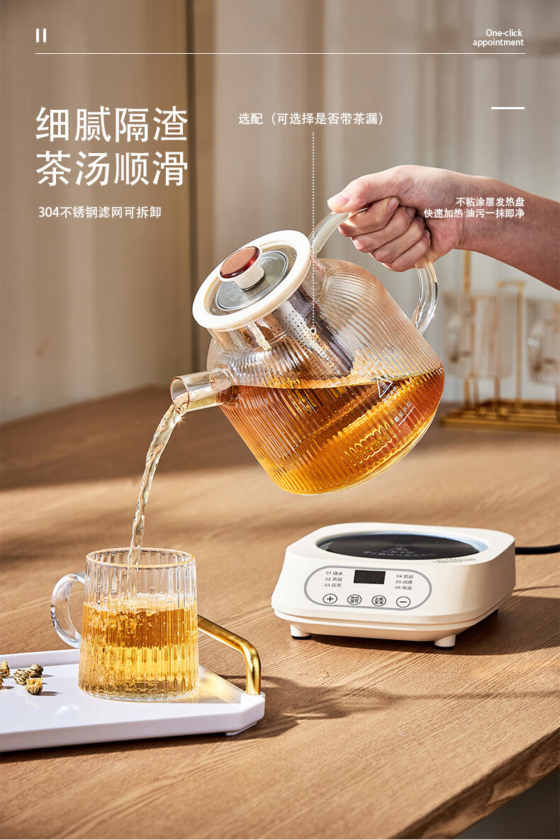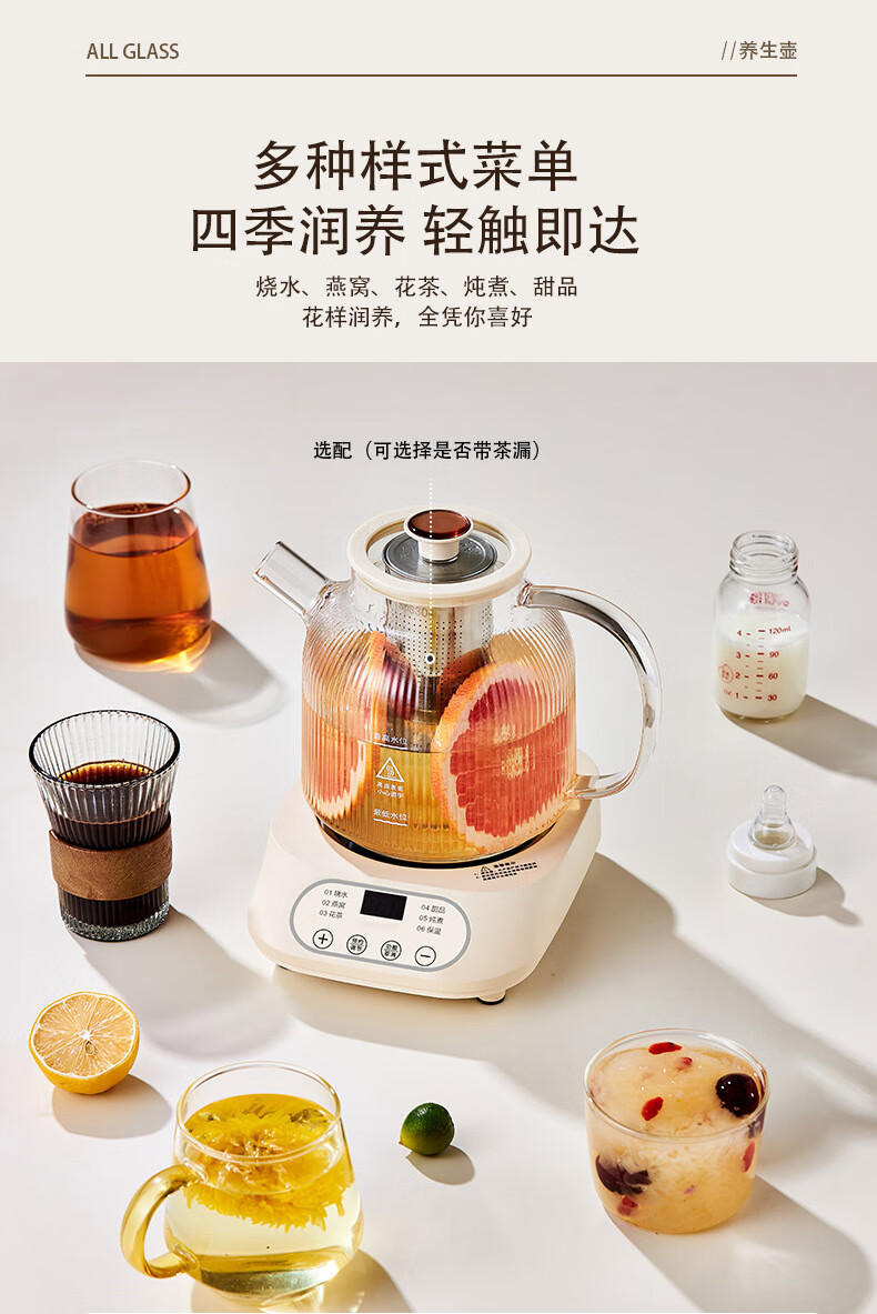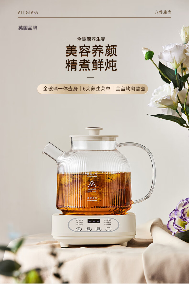 WIFer all-glass health pot multi-function fully automatic tea maker household 1L kettle office fruit teapot decoction pot split flower tea health pot without filter 1.2L