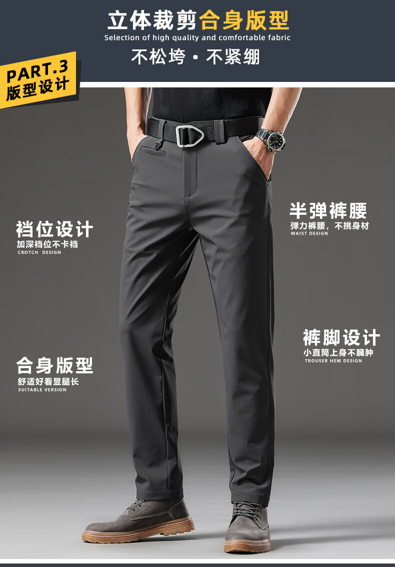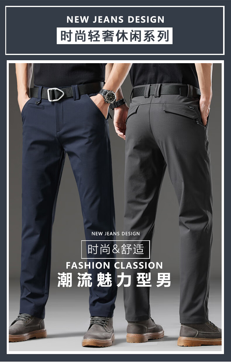 Rich men's casual pants 2025 new autumn straight loose sports pants three-proof tactical workwear suit pants for men 3313H black regular style 32