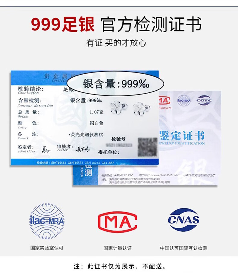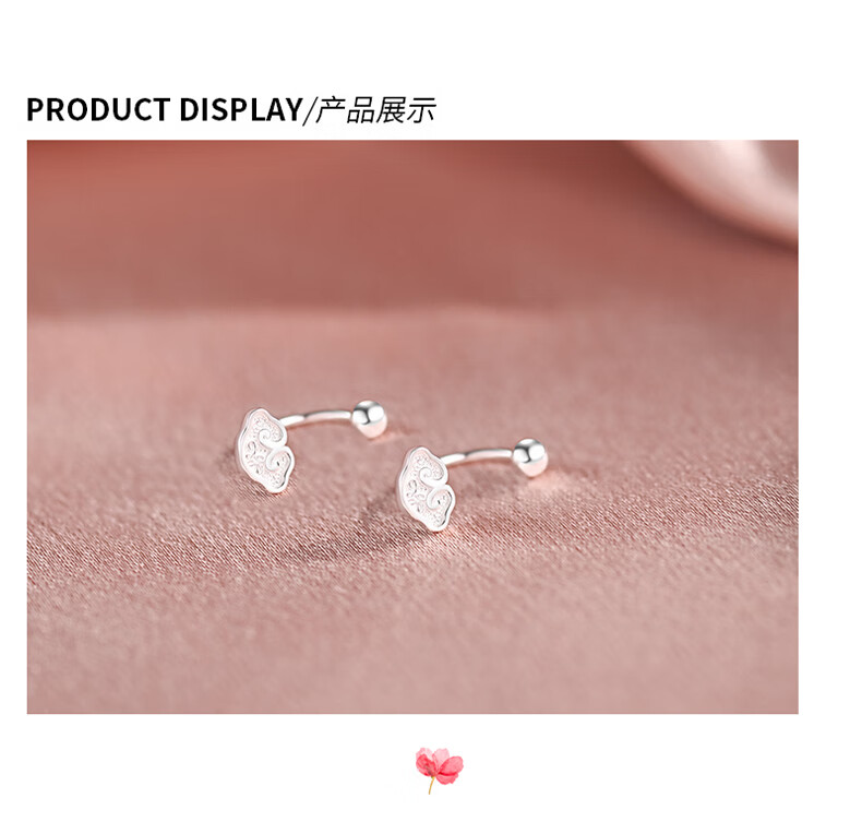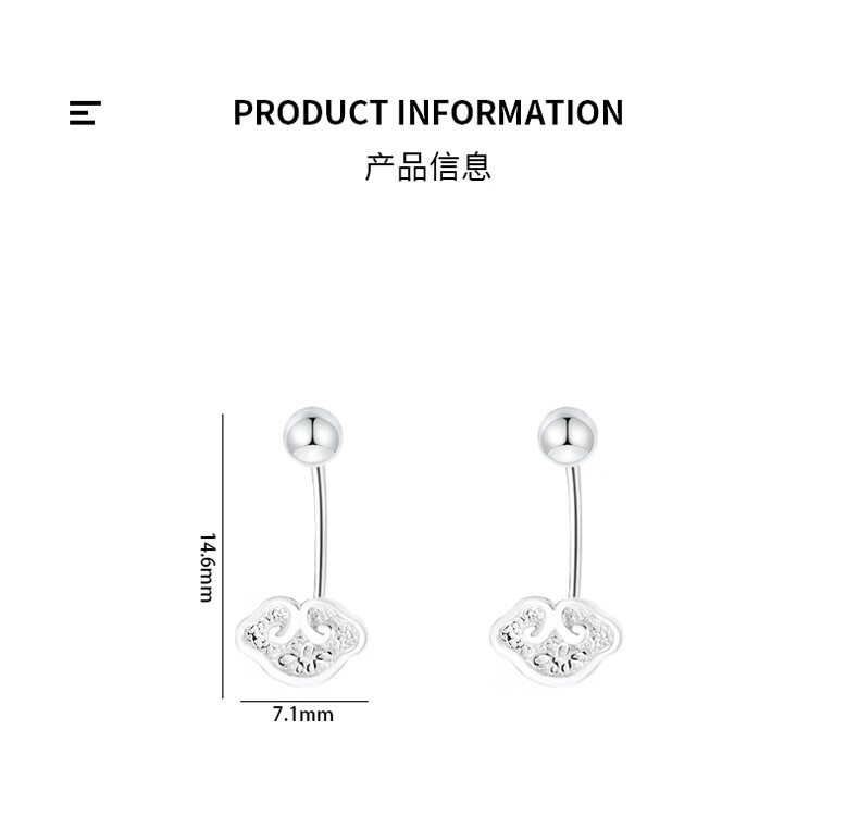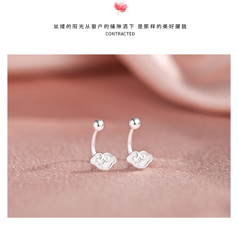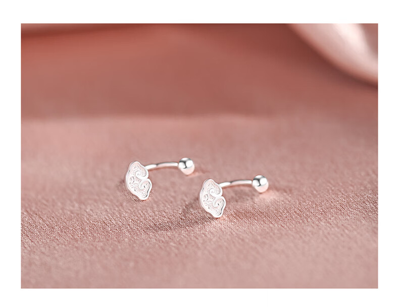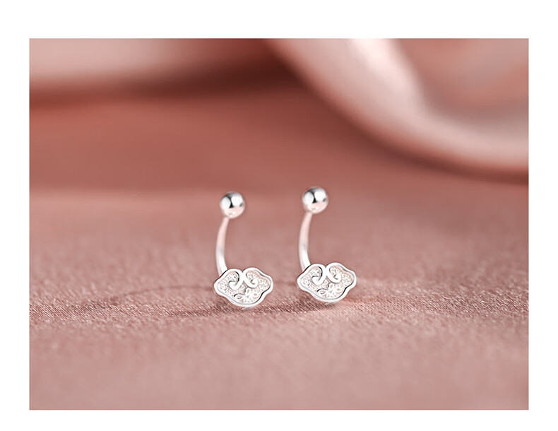 Idel 999 silver earrings, light luxury and high-end, mini small Xiangyun Ruyi back-hanging earrings for women, pierced earrings E4090 Xiangyun silver earrings, gift box + greeting card + certificate