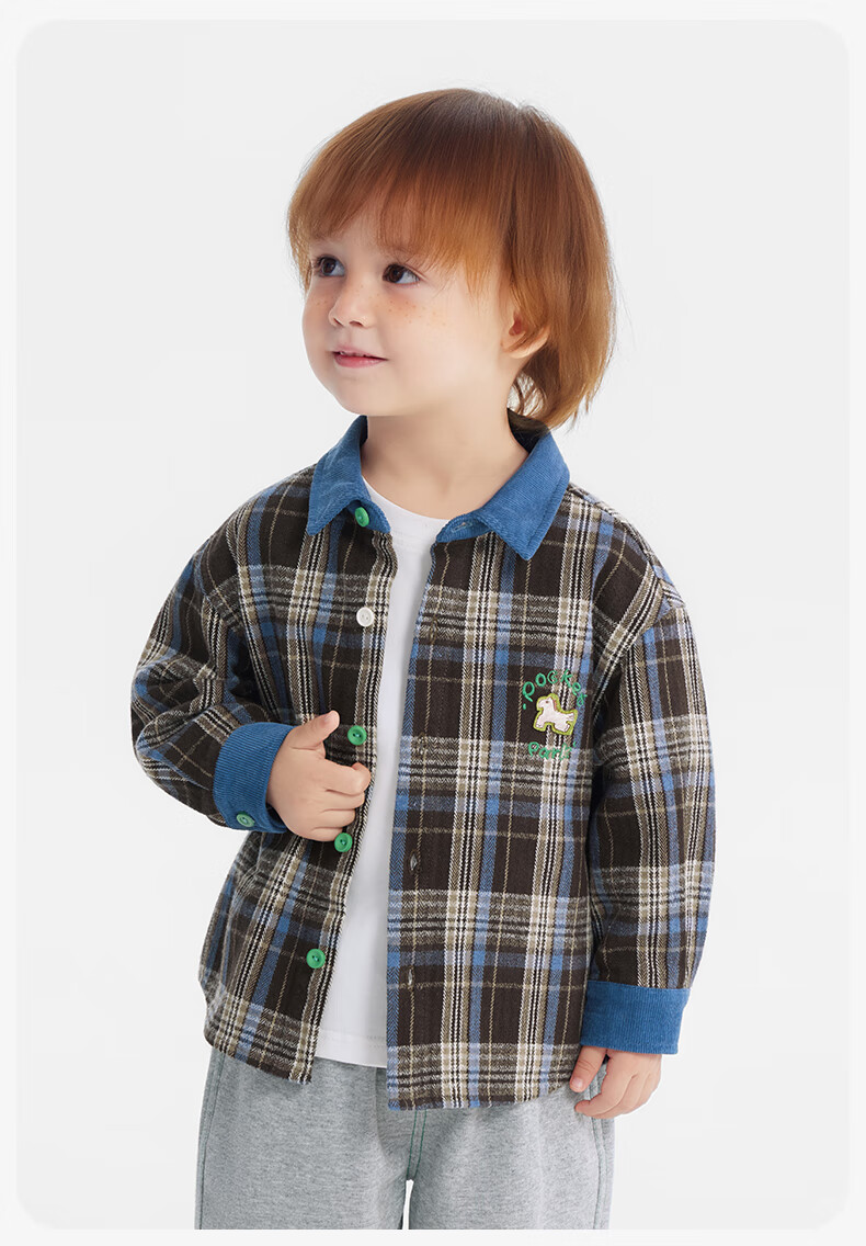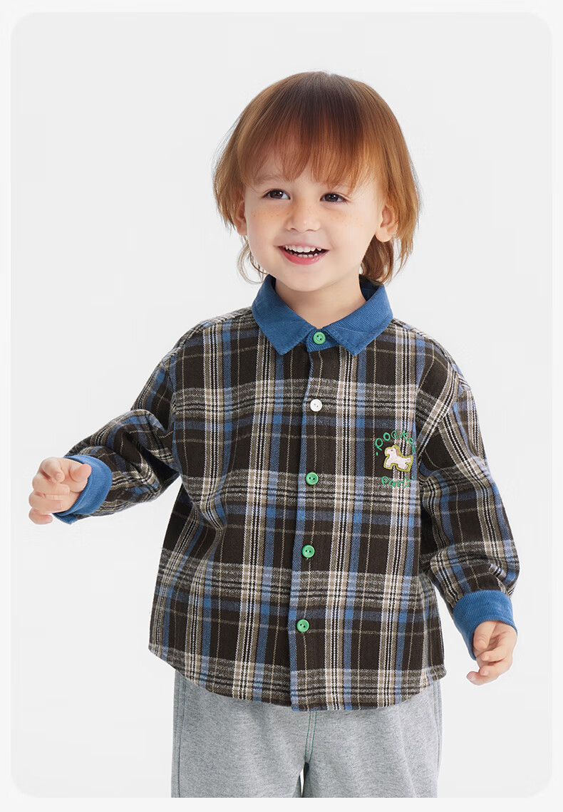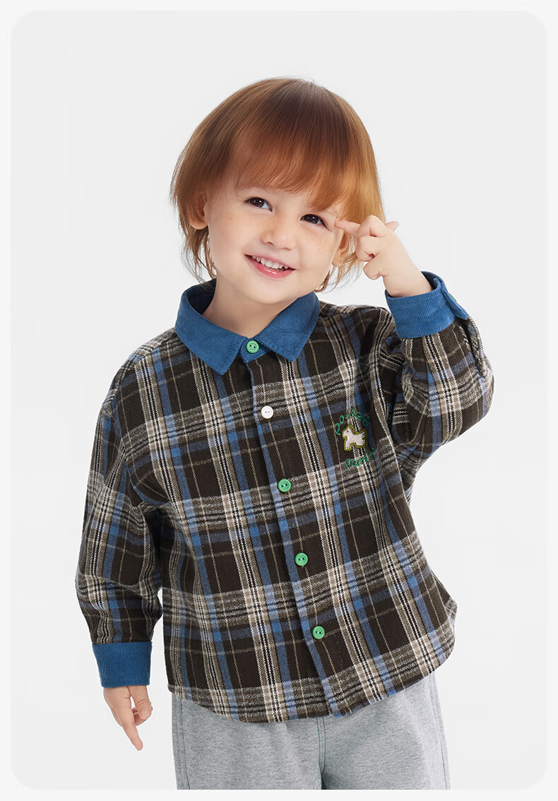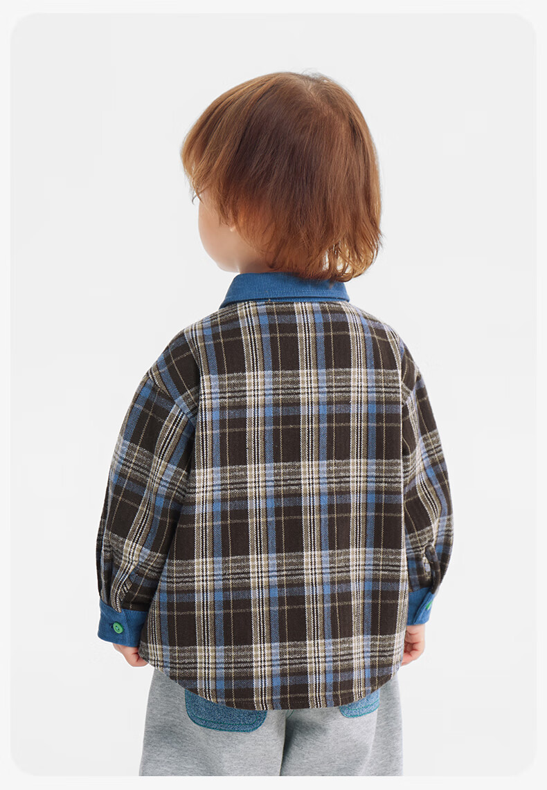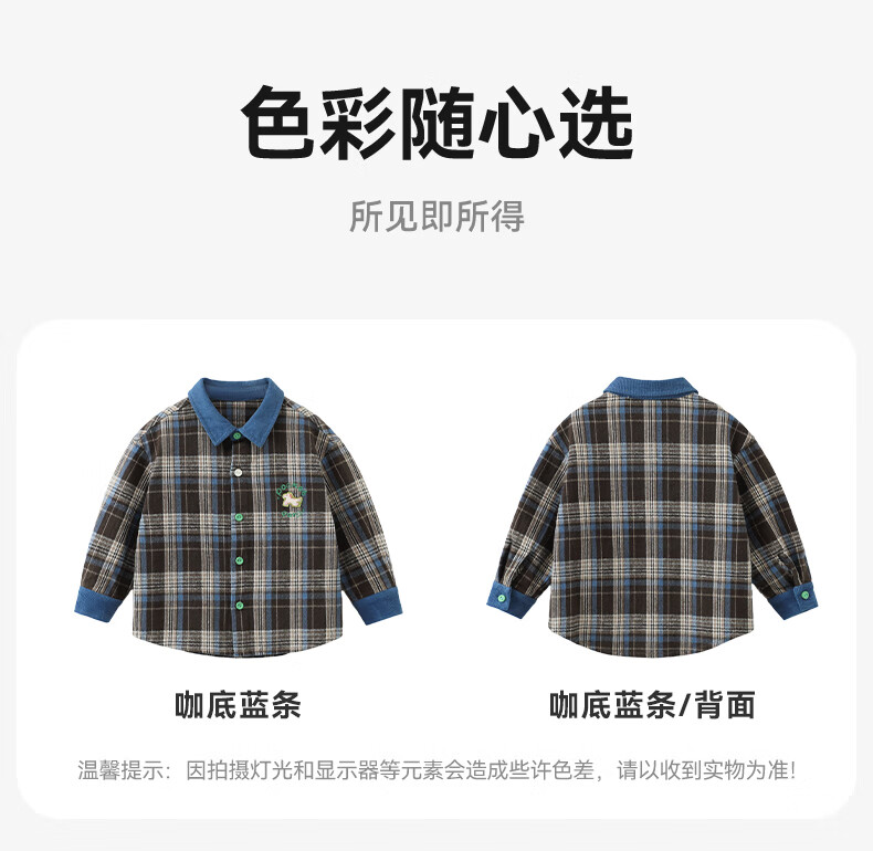 Ciciibear (ciciibear) 100% cotton ciciibear baby plaid shirt boys long-sleeved jacket 2025 autumn and winter new children's warm shirt, coffee bottom blue stripe 110