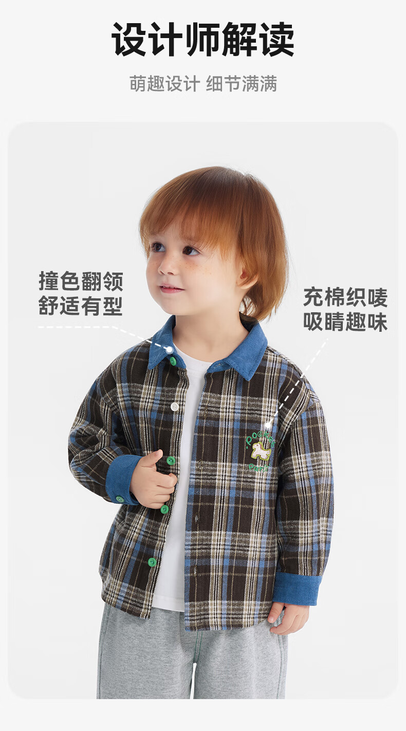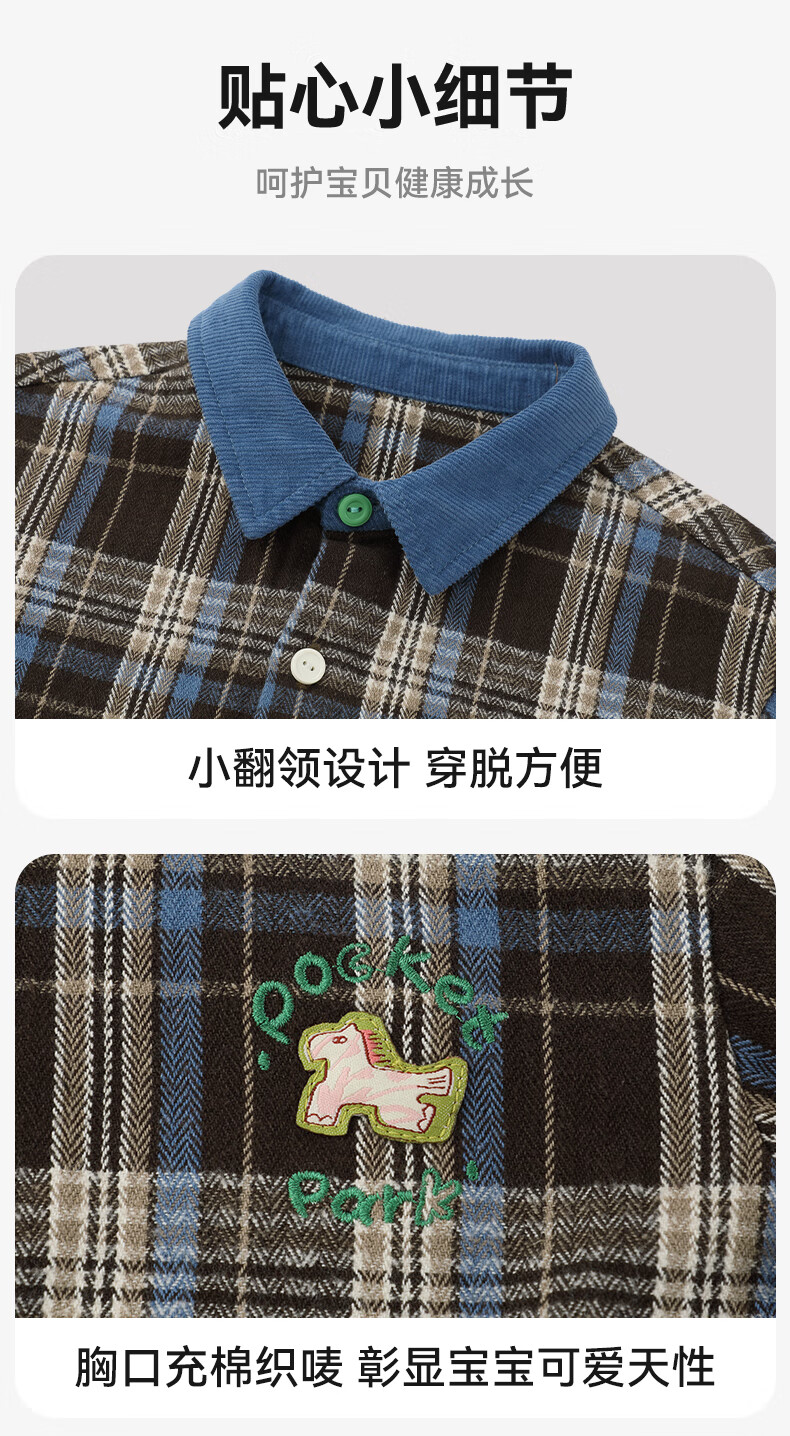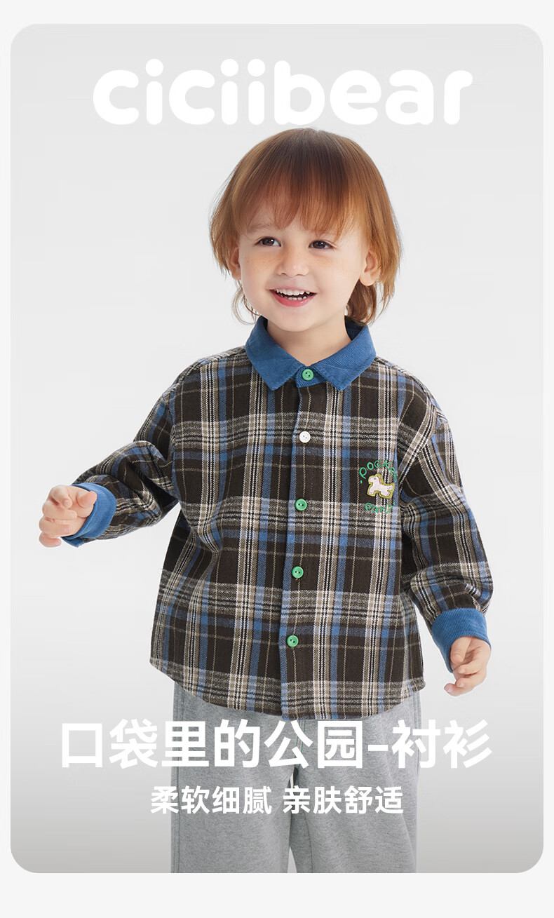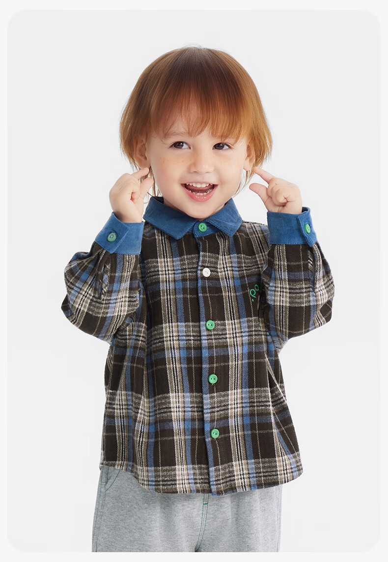 Ciciibear (ciciibear) 100% cotton ciciibear baby plaid shirt boys long-sleeved jacket 2025 autumn and winter new children's warm shirt, coffee bottom blue stripe 110