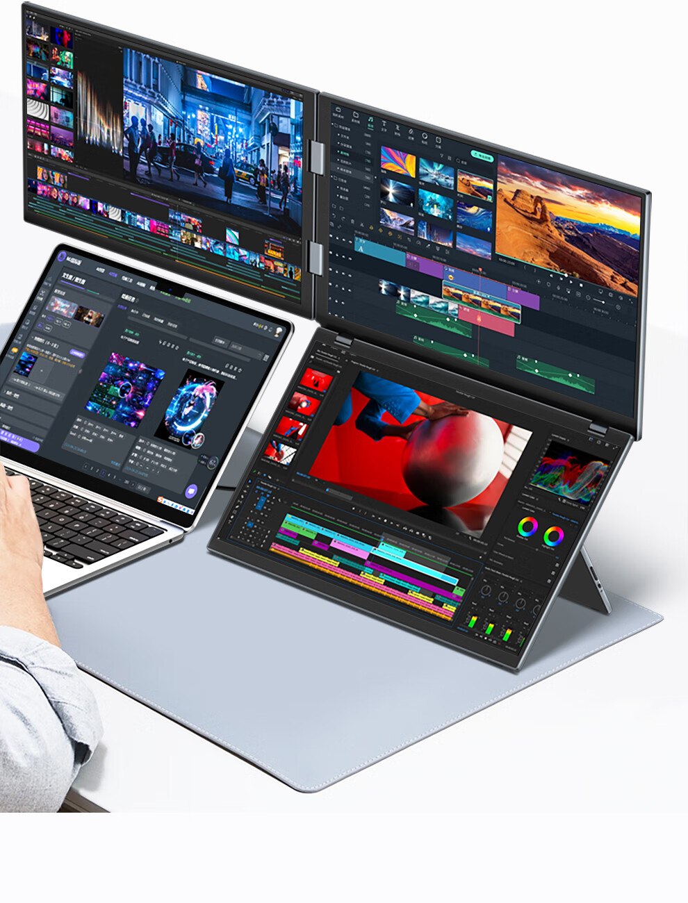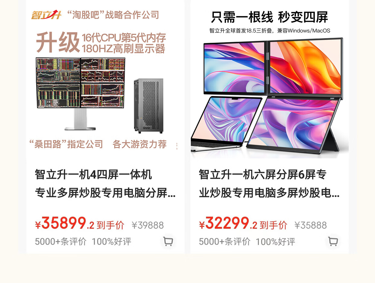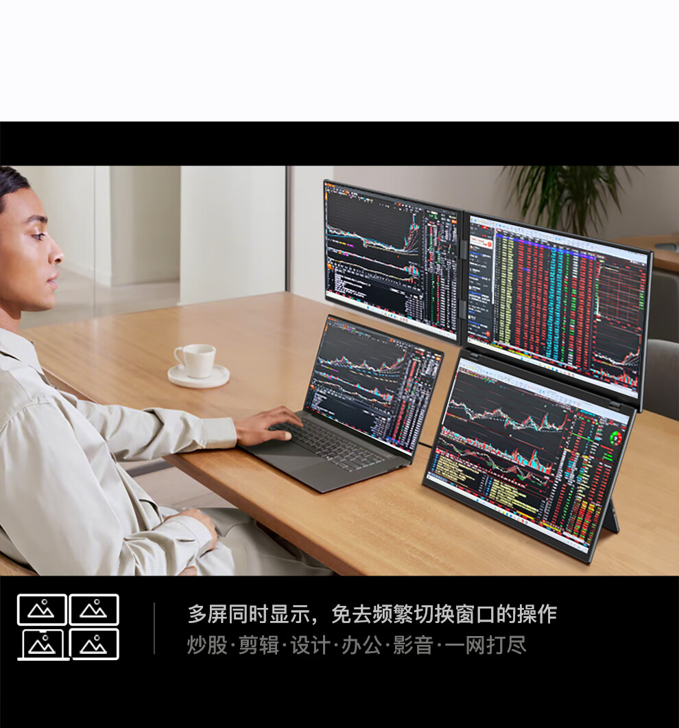 Zhilisheng portable all-in-one folding four-screen six-screen computer professional multi-screen stock trading special screen display stock trading futures financial trading equipment computer full set portable 18.5 three-screen (including permanent multi-screen software)