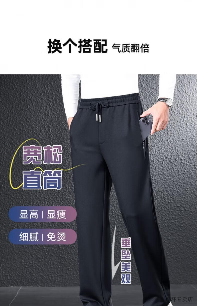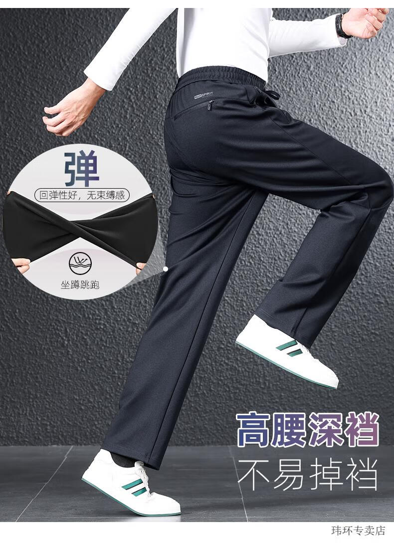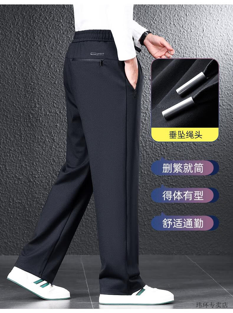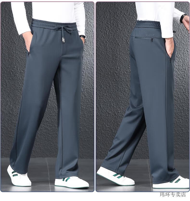 ROMON Drape Anti-wrinkle Men's Casual Pants Spring and Autumn Loose Straight Sports Pants Middle-aged Dad Autumn Men's Pants Blue Gray No Velvet/Advanced Drape/No Ironing Anti-wrinkle 2XL 156-170Jin Jin is equal to about 0.5 kg