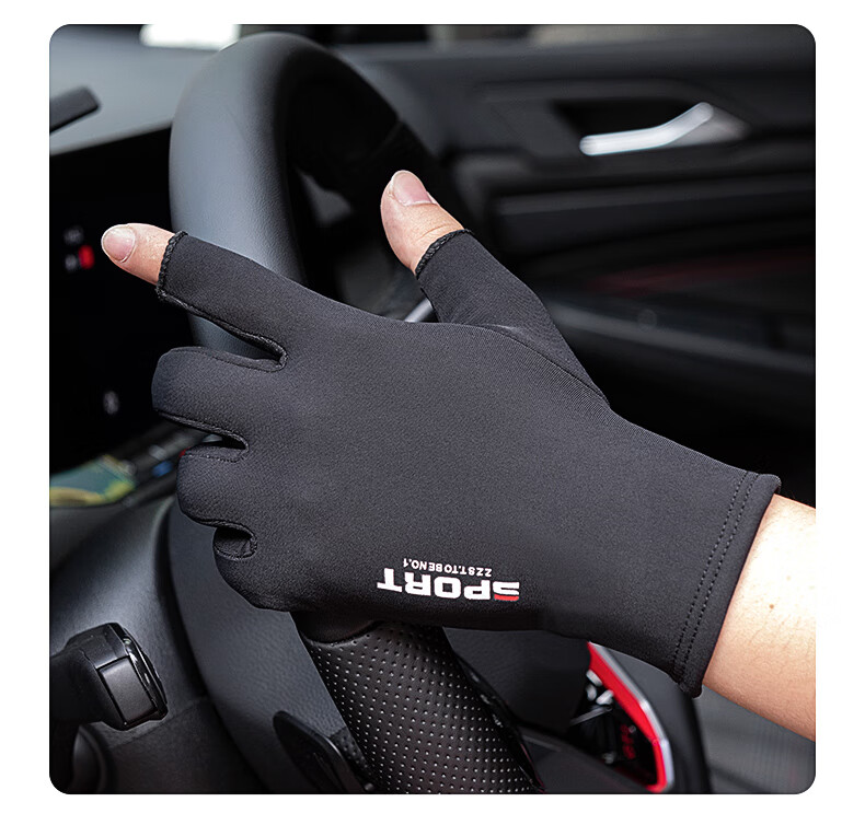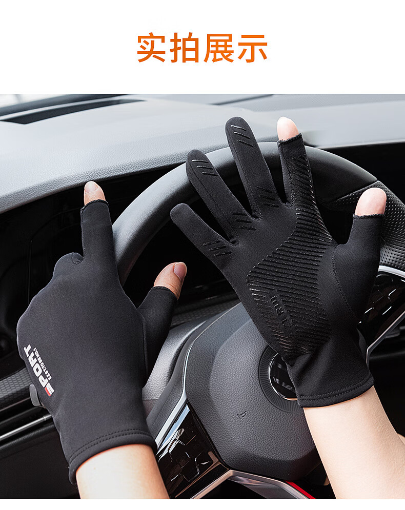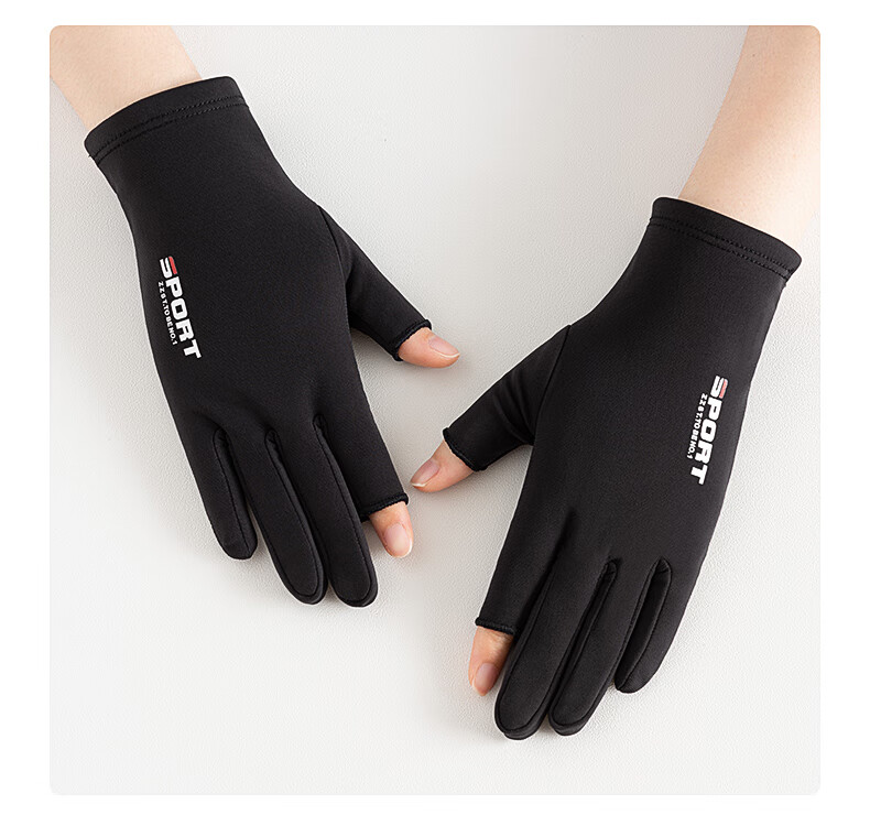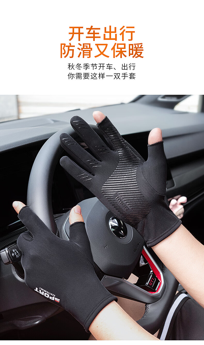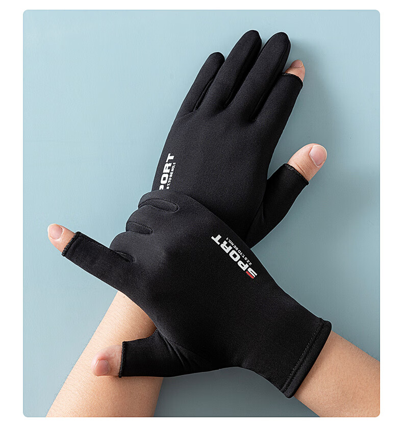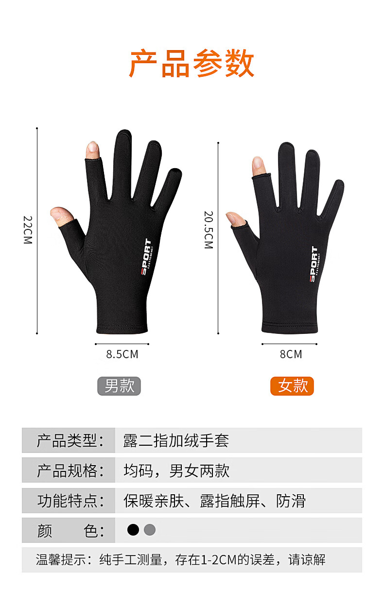 Warm and velvet two-finger anti-slip gloves for autumn and winter, thickened outdoor fishing lures for sale with touch screen for men and women, black elastic, thin velvet, two-finger anti-slip black for men
