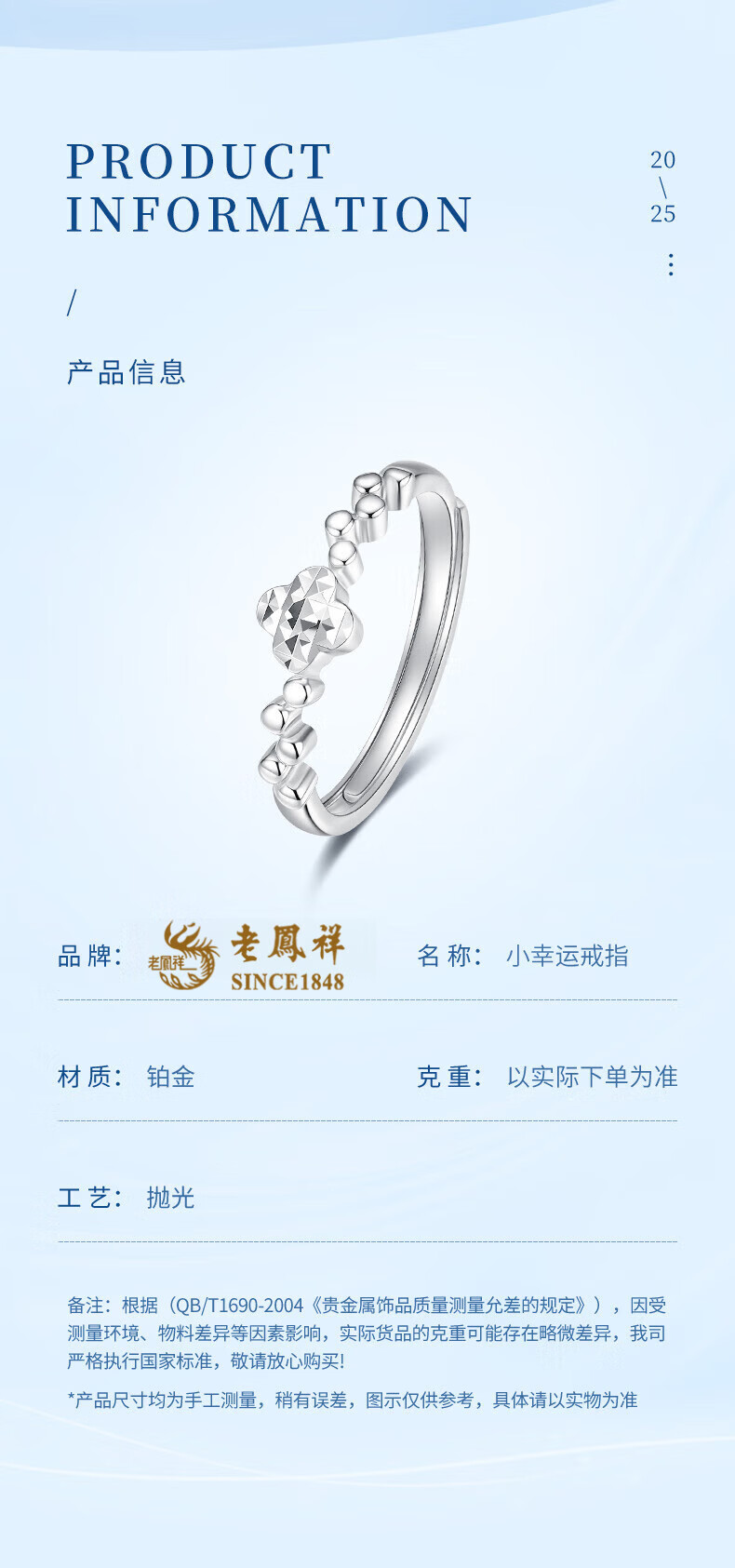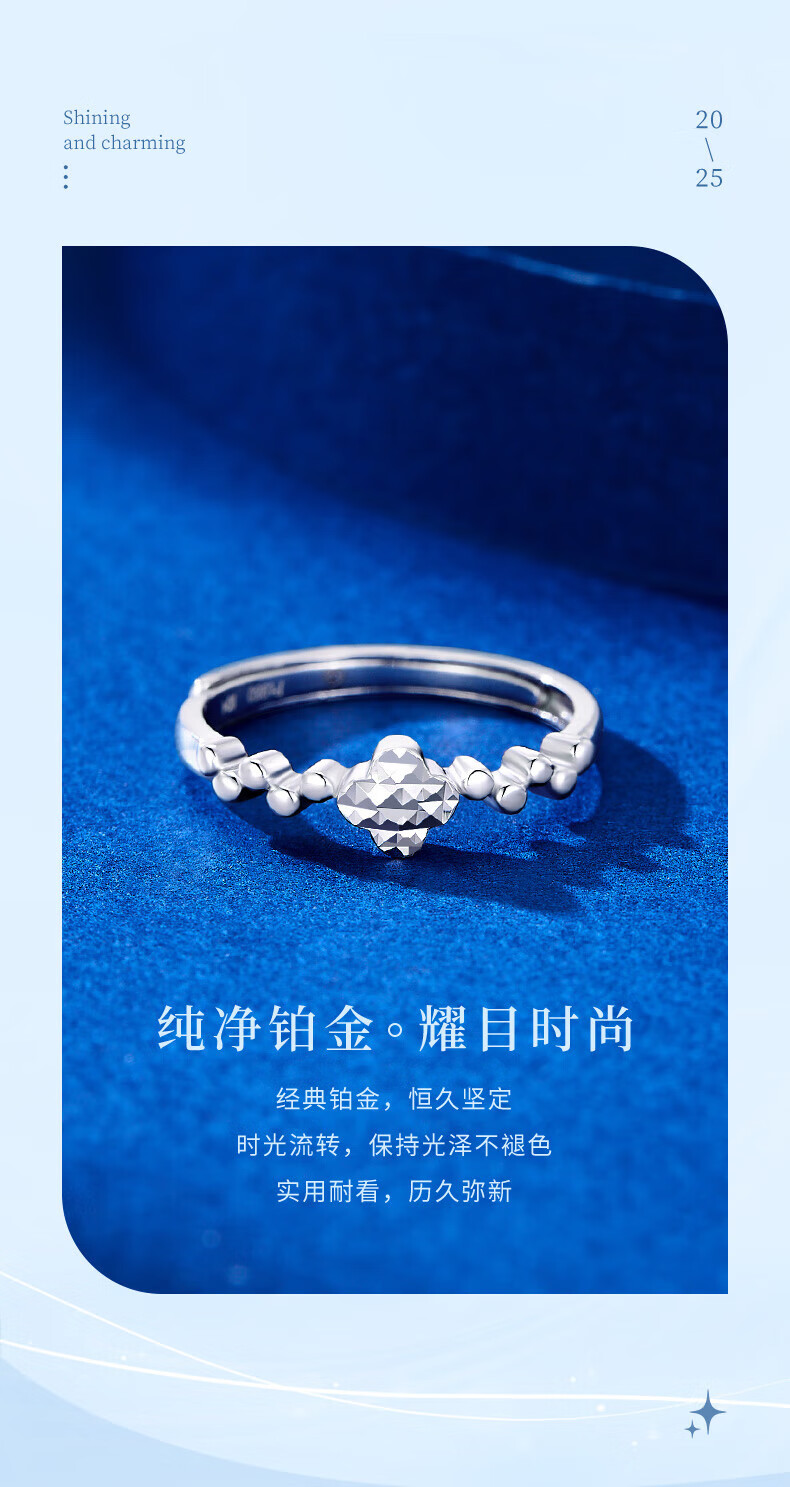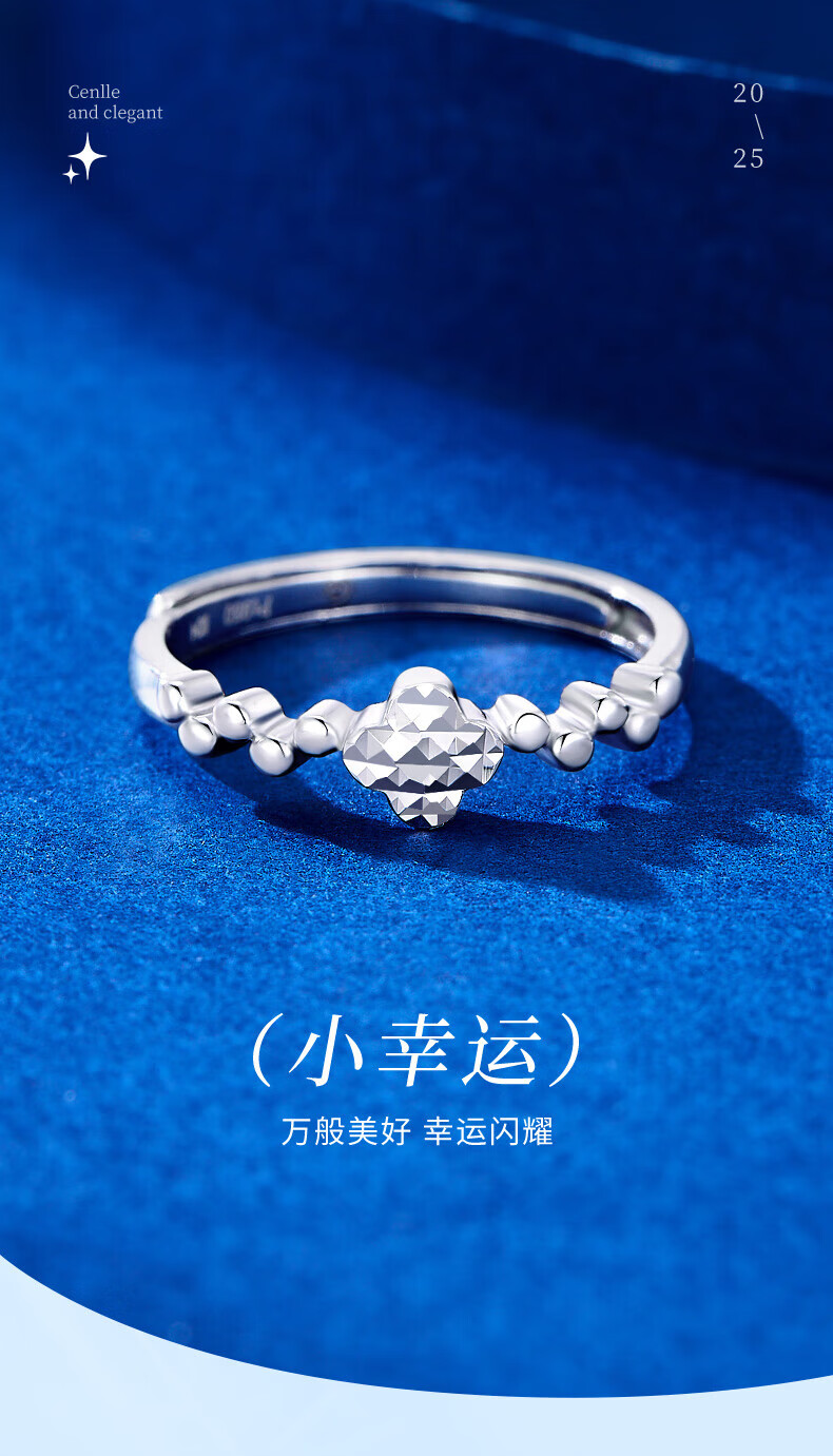 Lao Fengxiang pt950 platinum ring for women, platinum four-leaf clover ring, simple Valentine's Day birthday gift for girlfriend and wife, platinum four-leaf clover ring, about 2.8g, brand gift box