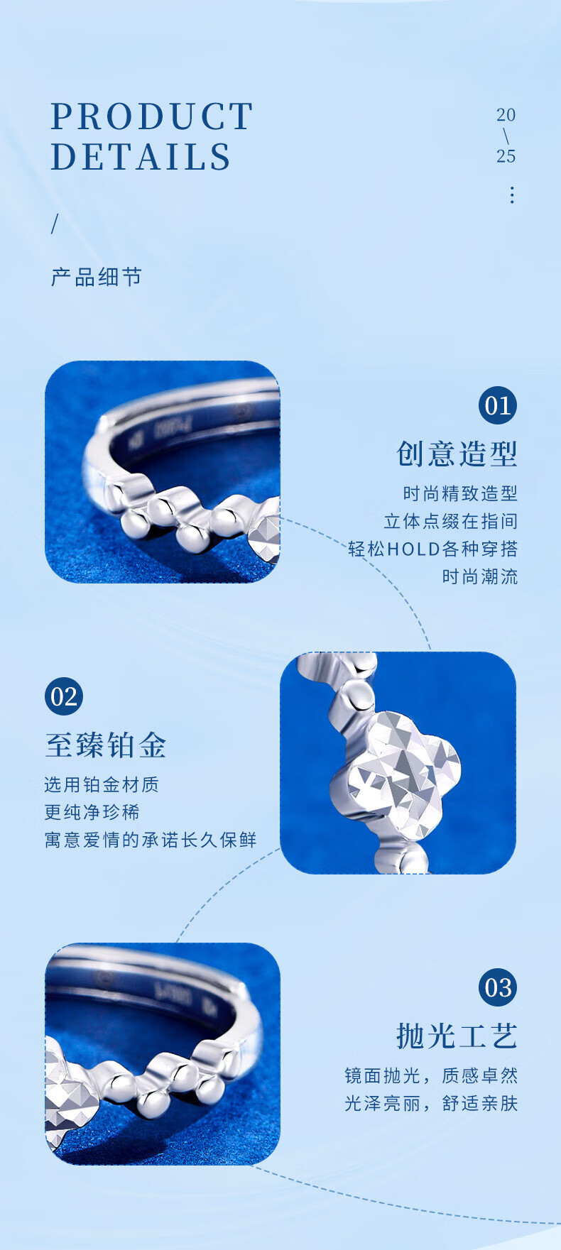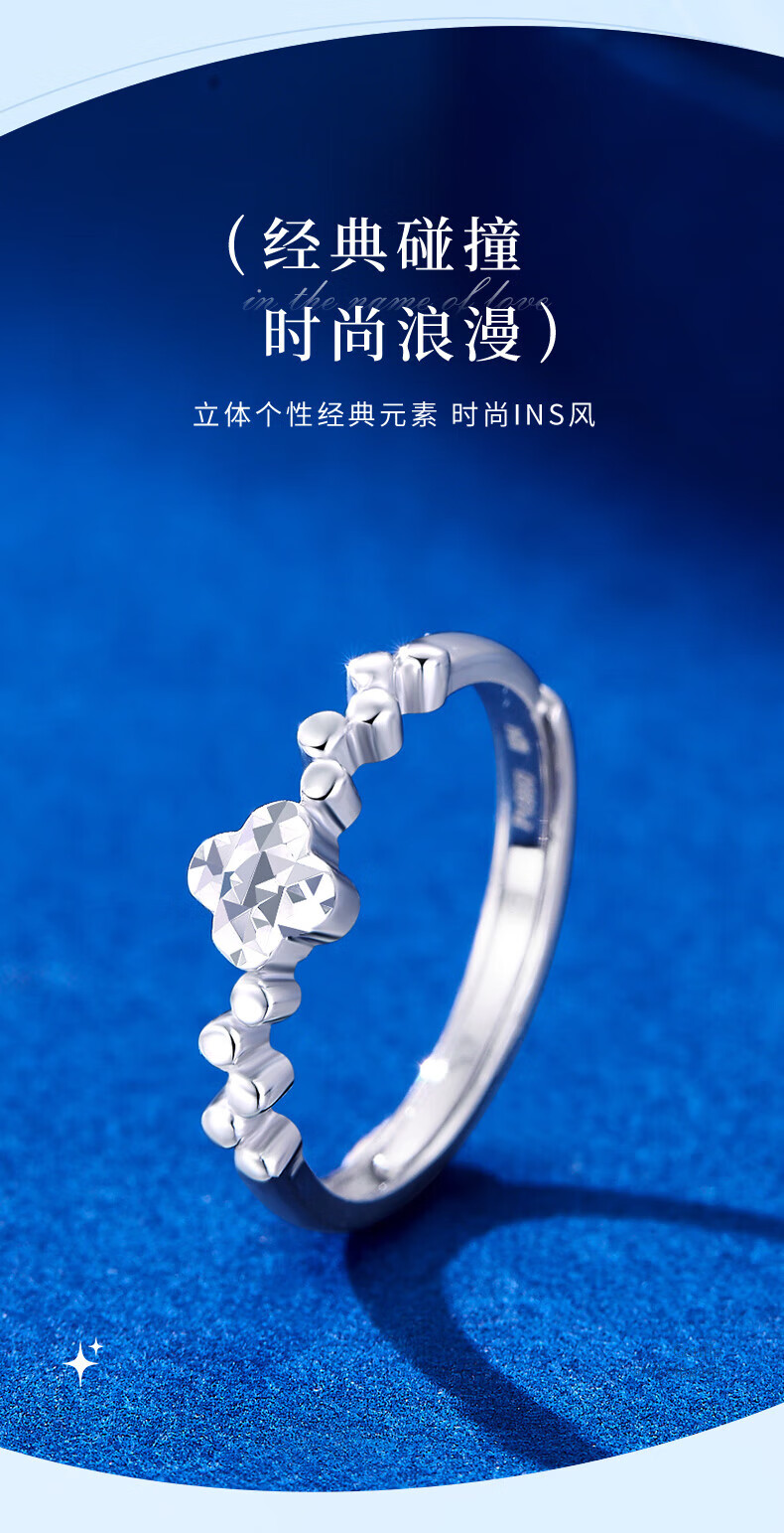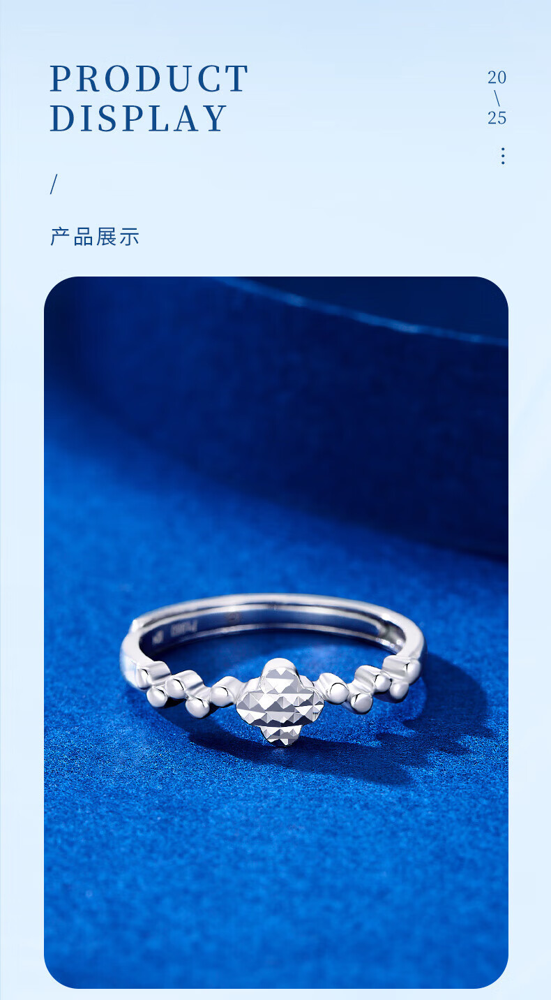 Lao Fengxiang pt950 platinum ring for women, platinum four-leaf clover ring, simple Valentine's Day birthday gift for girlfriend and wife, platinum four-leaf clover ring, about 2.8g, brand gift box