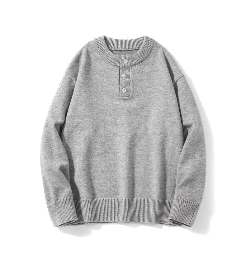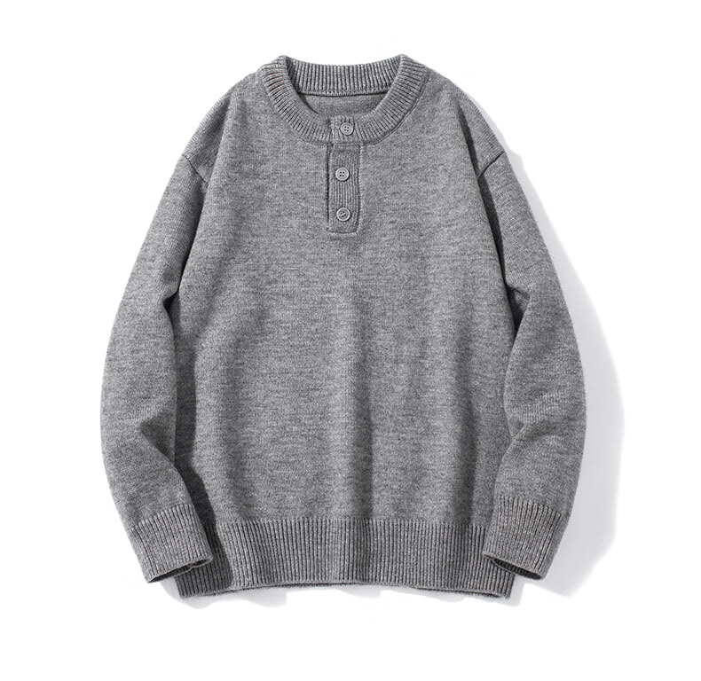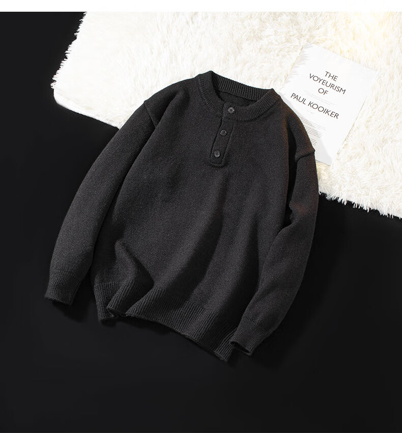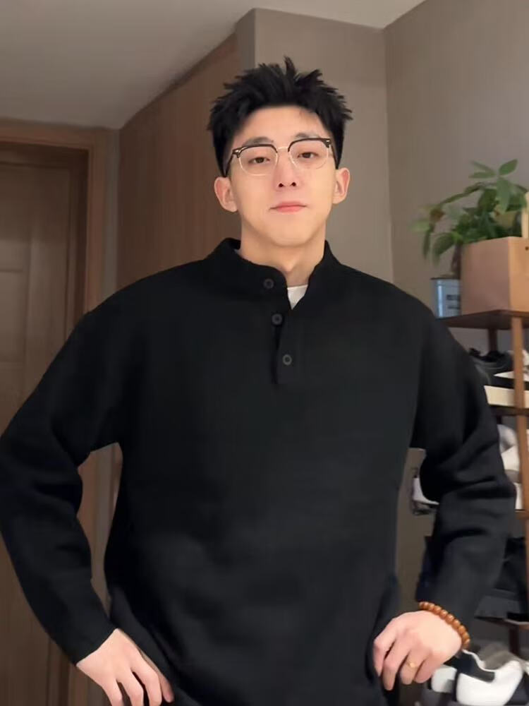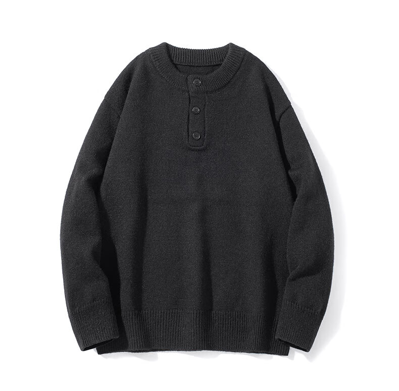 American Henry Collar Autumn and Winter Sweater Men's Sweater American Retro Casual Lazy Style Sweater Men's Solid Color Black 3XL