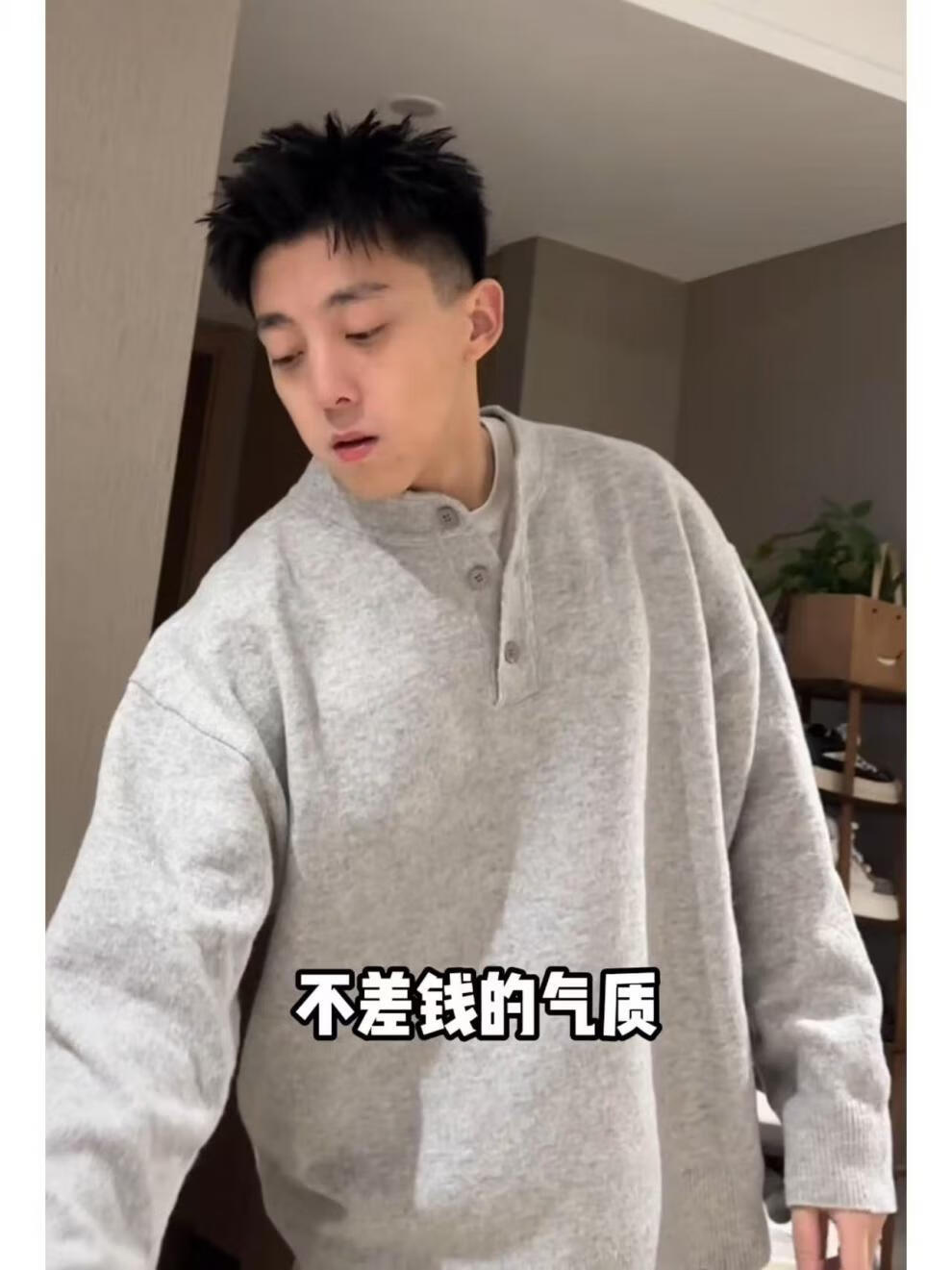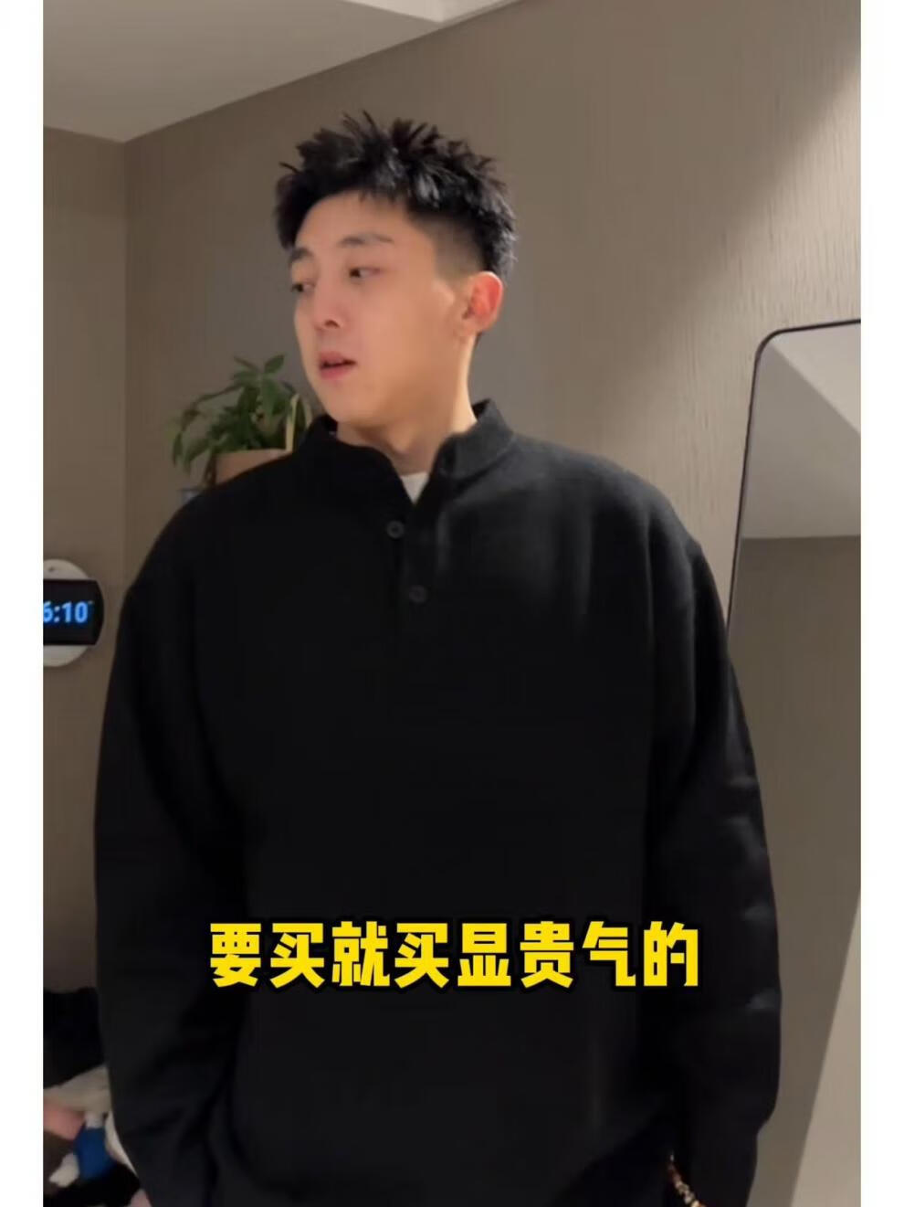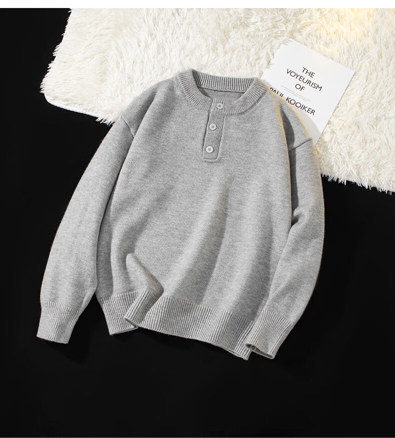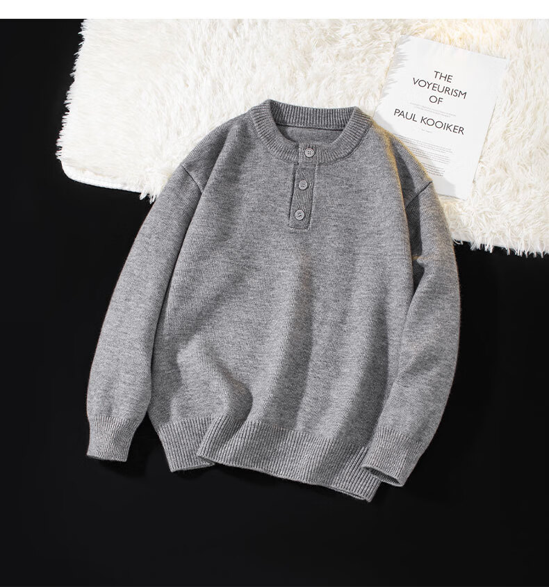 American Henry Collar Autumn and Winter Sweater Men's Sweater American Retro Casual Lazy Style Sweater Men's Solid Color Black 3XL