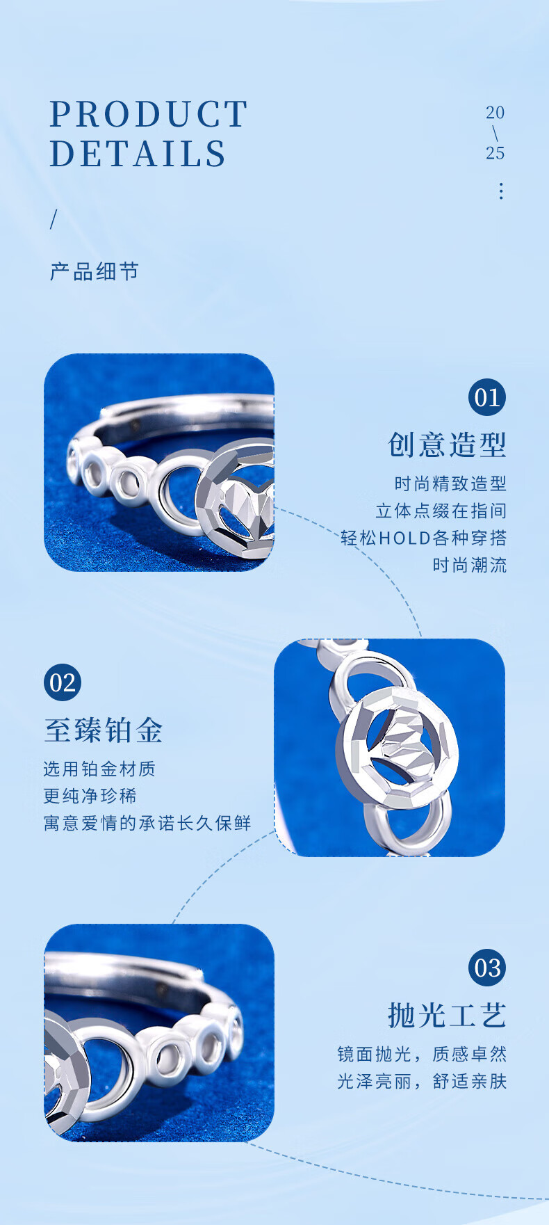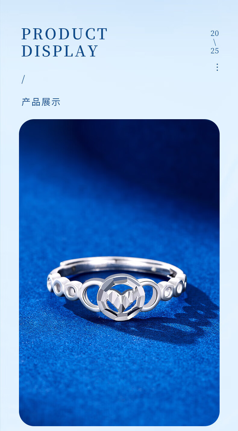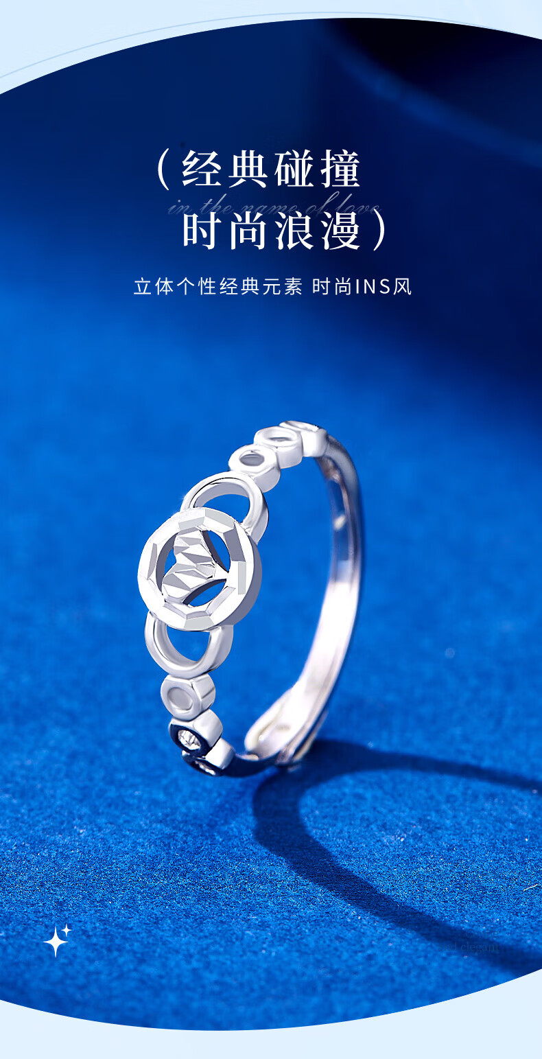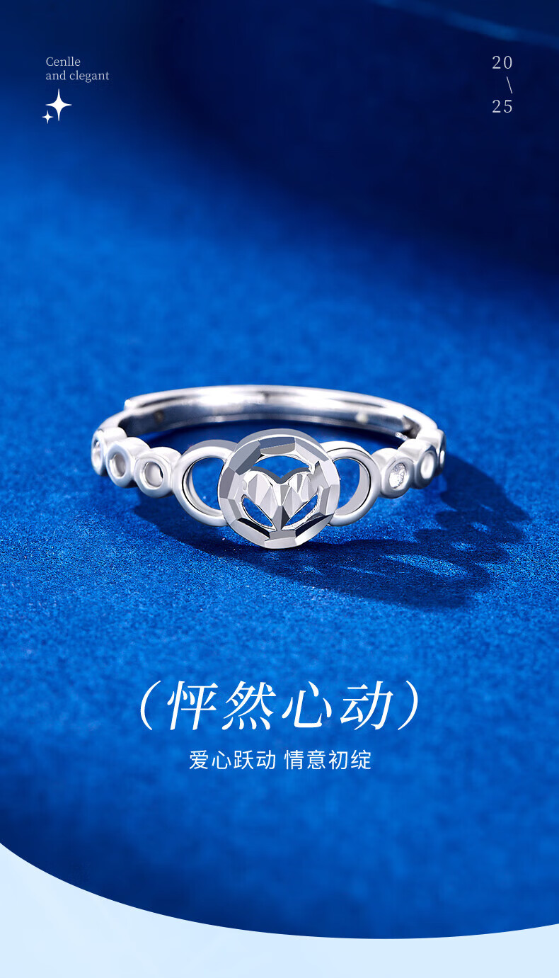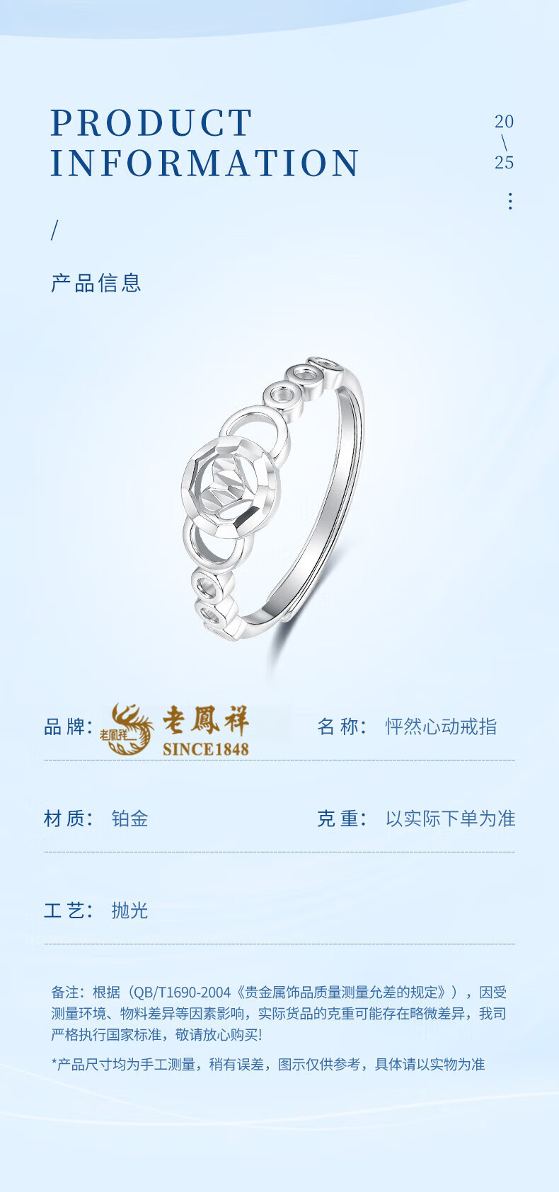 Lao Fengxiang pt950 platinum ring for women, platinum heart-pounding love ring, Valentine's Day birthday gift for girlfriend and wife, platinum love ring, about 2.8g, brand gift box