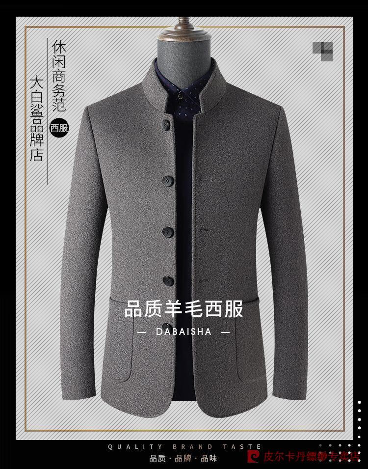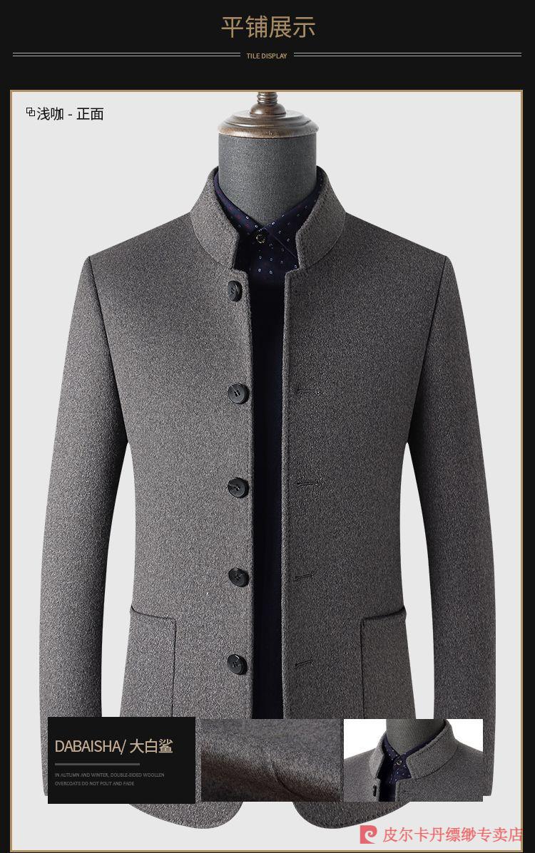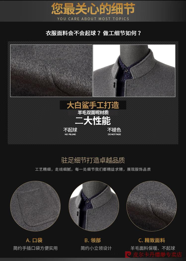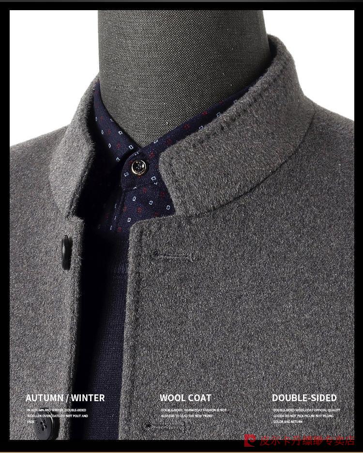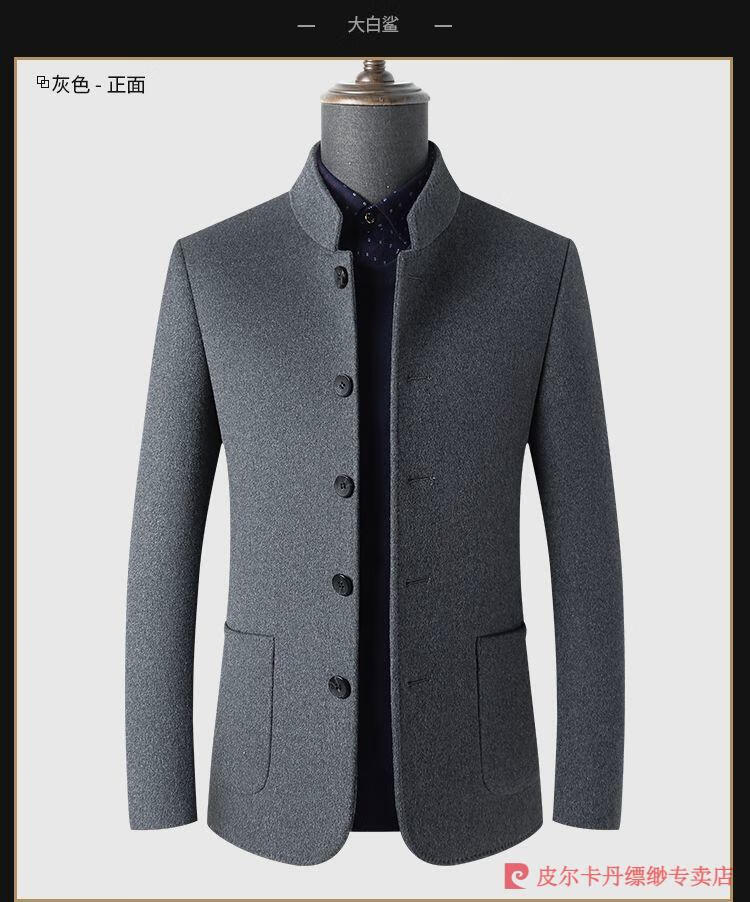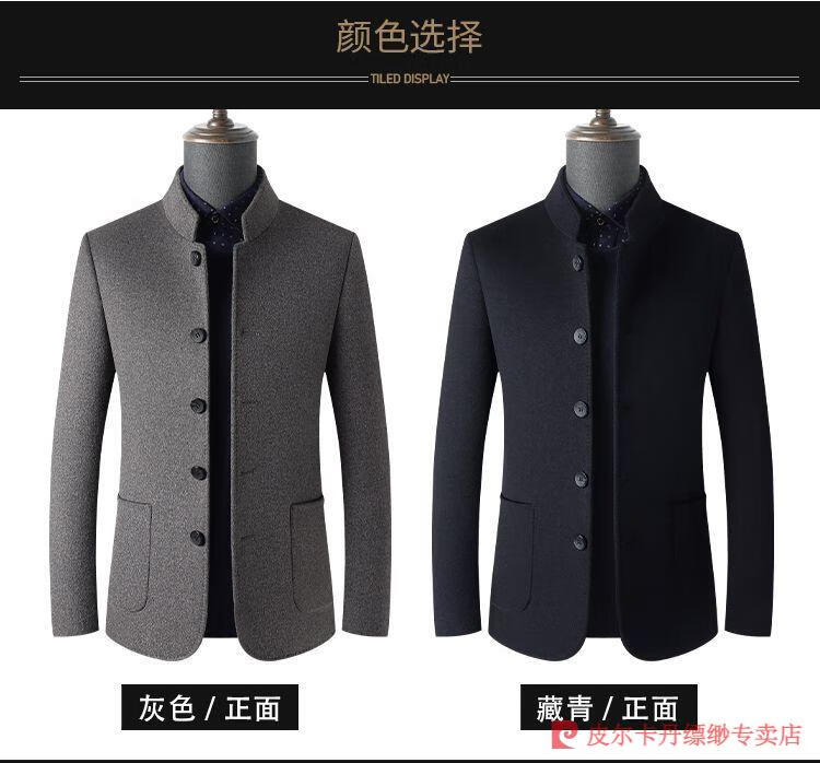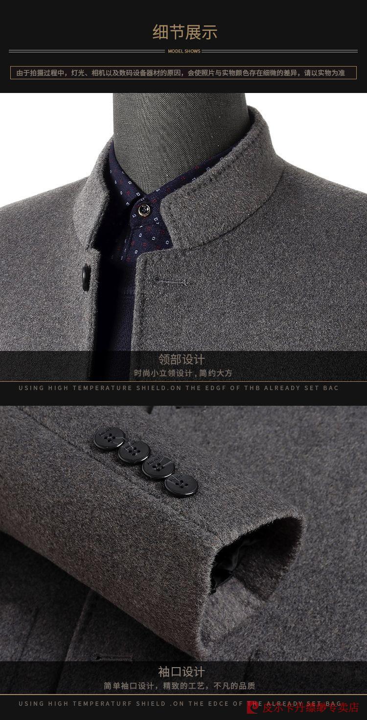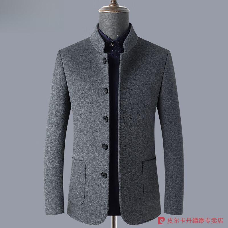 Pierre Cardin high-end double-sided woolen woolen coat men's tunic top suit stand collar daddy autumn and winter men's clothing gray M 170/88A 90-120Jin Jin equals 0.5 kg
