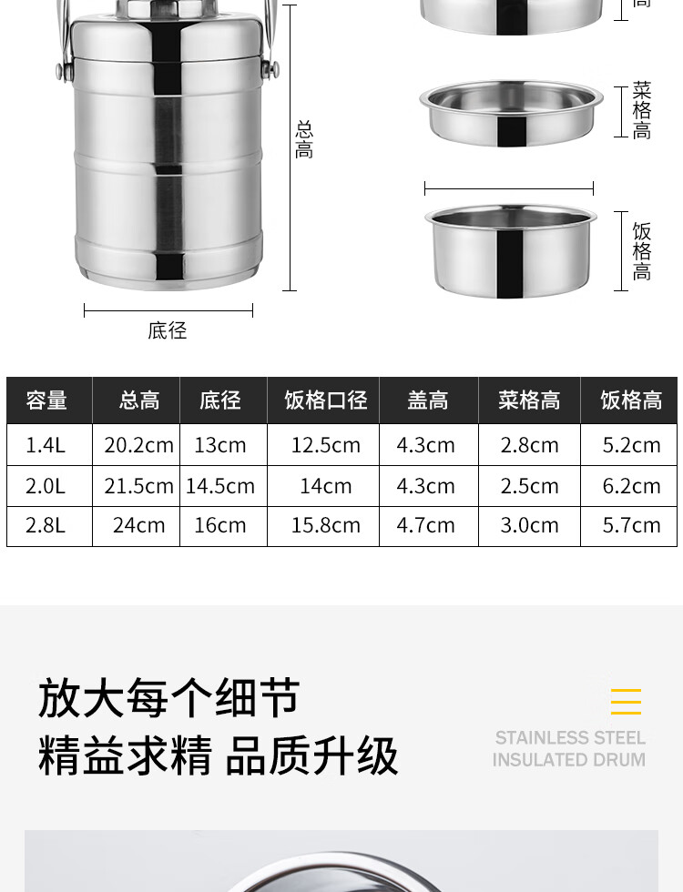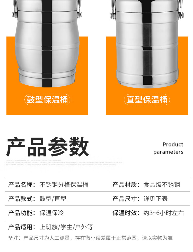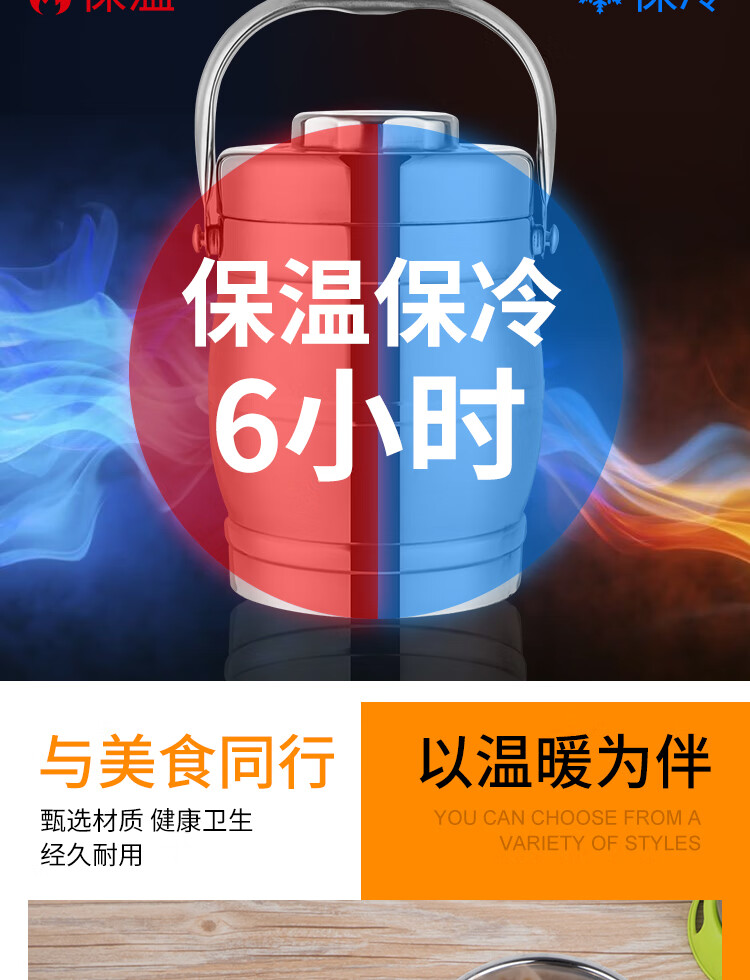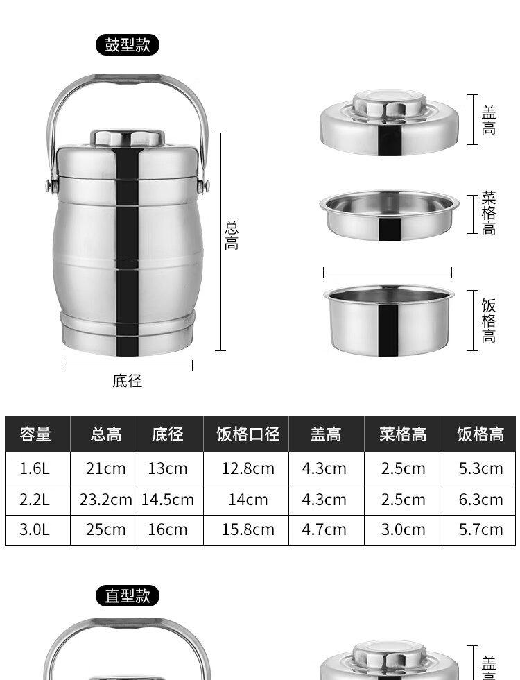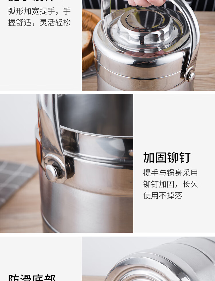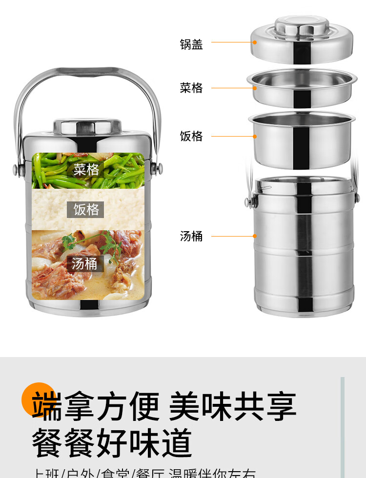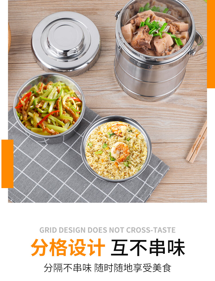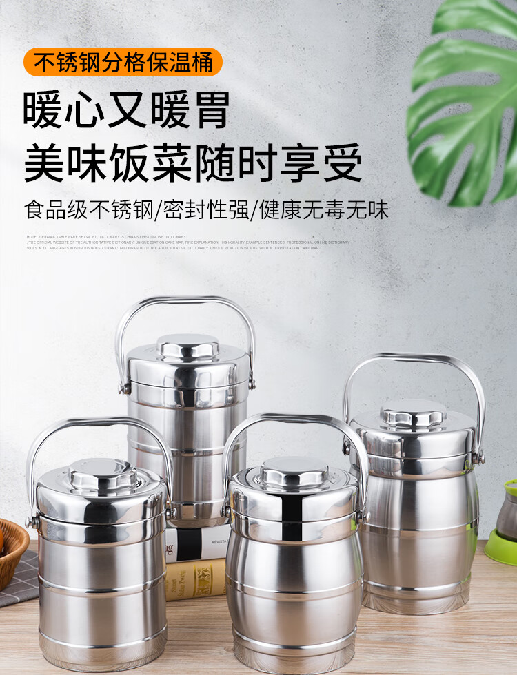 SUPOR Stainless Steel Vacuum Insulated Lunch Box Soup Kettle Portable Student Multi-layer Pot Pot Office Worker Large Capacity Lunch Box Lunch Box Thickened 3.0L Drum Body Pot Suitable for 3-4 People