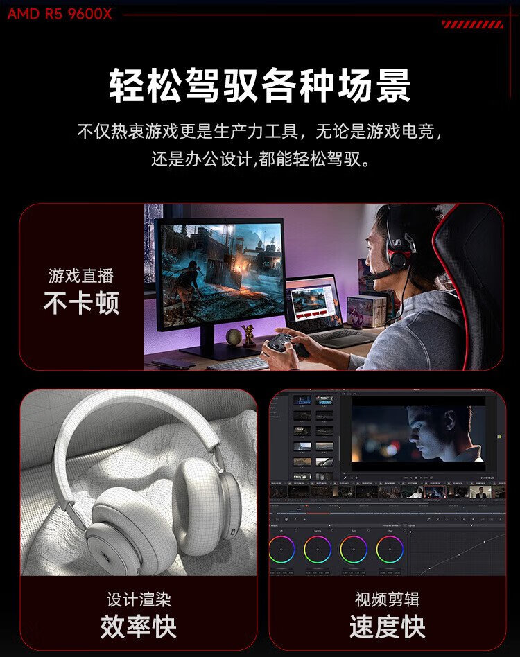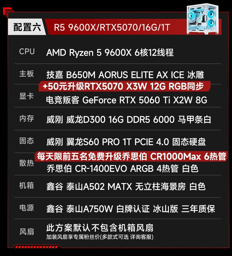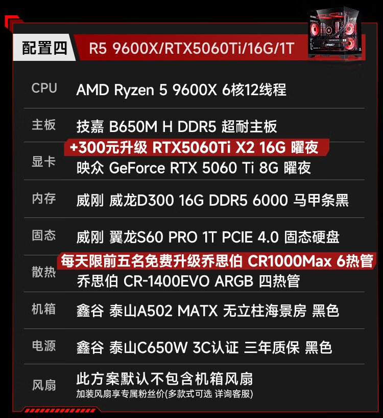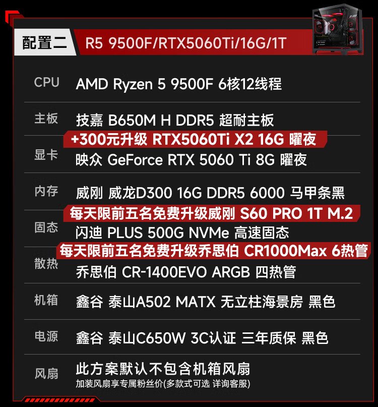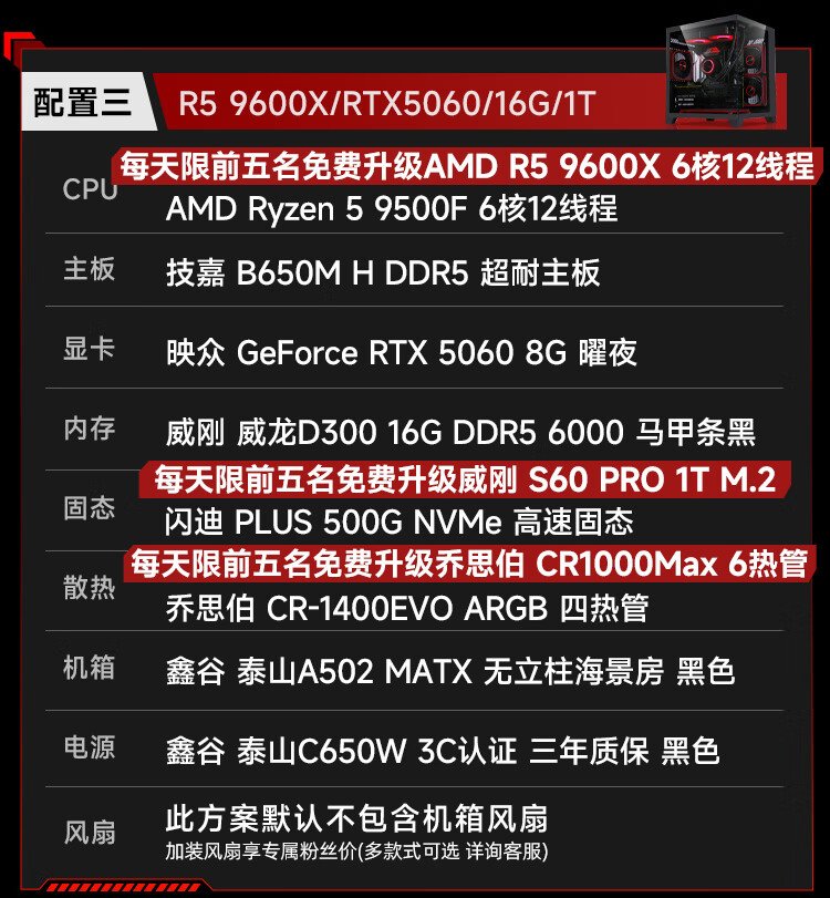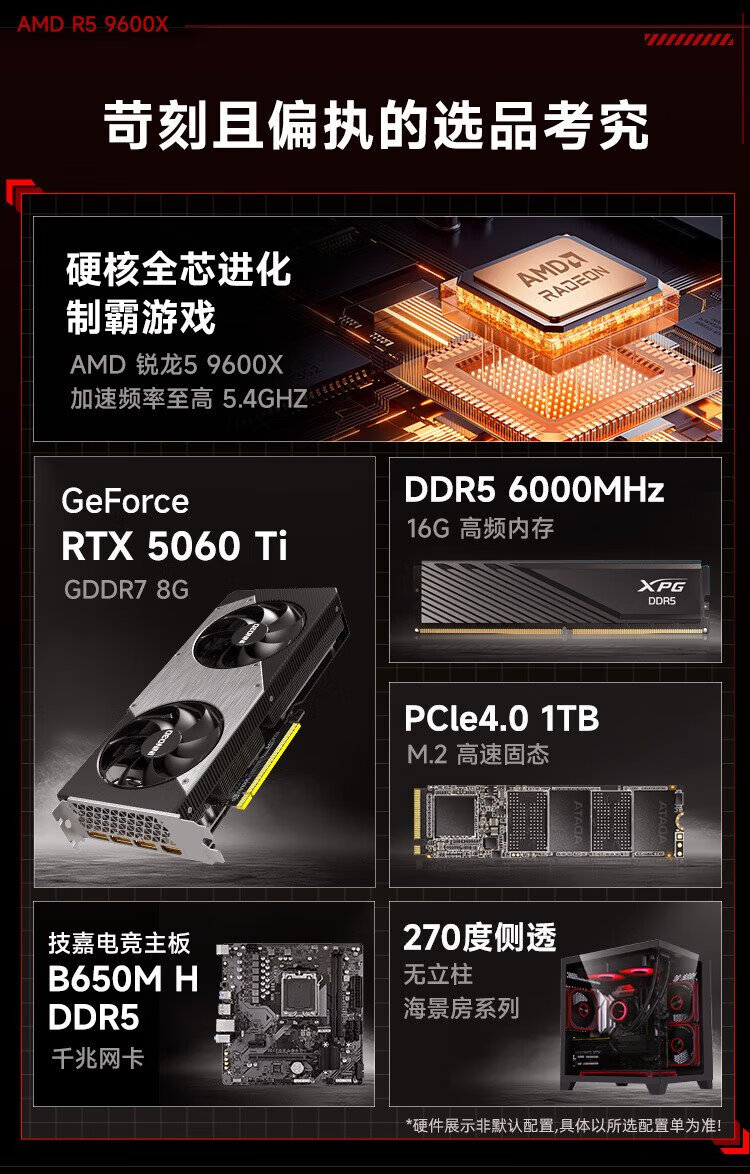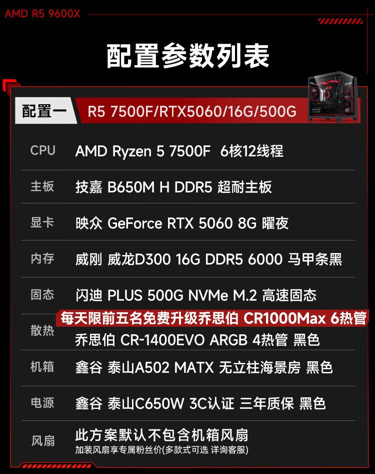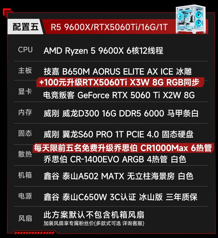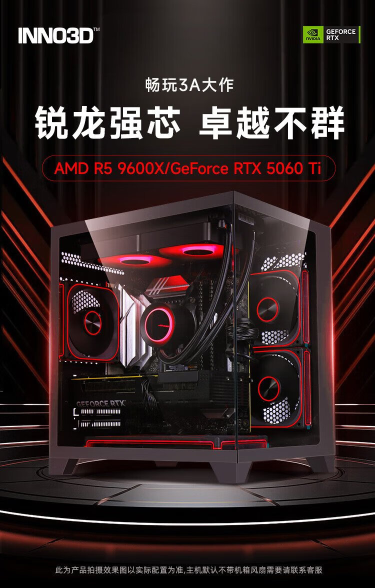 Inno3D RTX5060 host new product 9500F AMD R5 7500F/9600X/RTX5060Ti Delta mobile gaming computer host desktop complete machine DIY assembly machine R5 9600X+RTX5060丨Configuration three