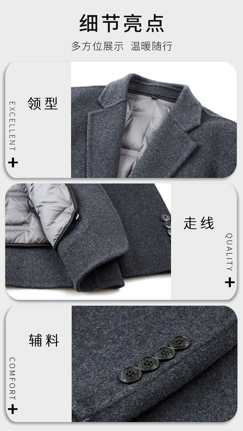 SEVEN 7 Seven brand double-sided woolen coat men's wool woolen coat cashmere suit autumn and winter men's down lining single suit 2366 gray (down lining) M 170/48