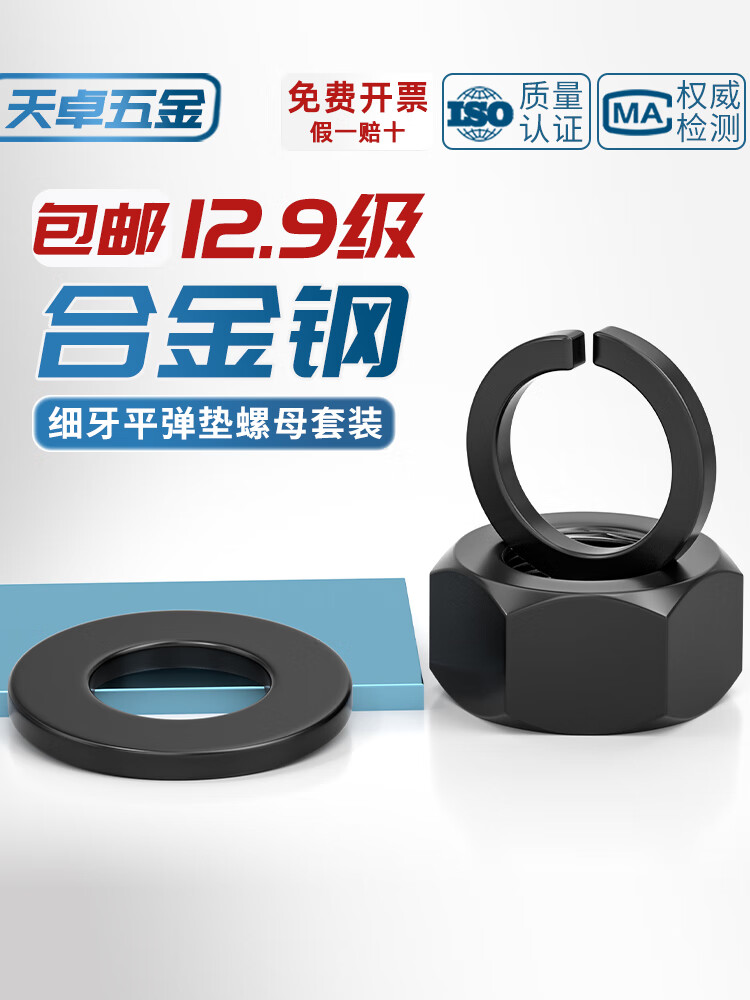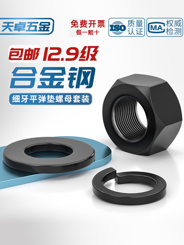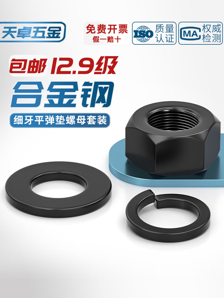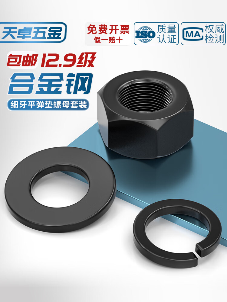 Tianzhuo Hardware Grade 12.9 Fine Thread Nuts Fine Buckle Fine Thread Screw Caps Flat Washers Spring Washer Combination Set High Strength Accessories M24*2 (2 pcs) Nuts