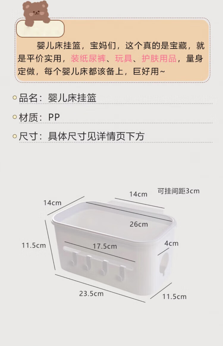 Oein Baby Bedside Storage Hanging Basket Diaper Table Hanging Bag Portable Bed Side Diaper and Oral Wipes Storage Basket Fully Surrounded*2+3-in-1 Hanging Basket*1
