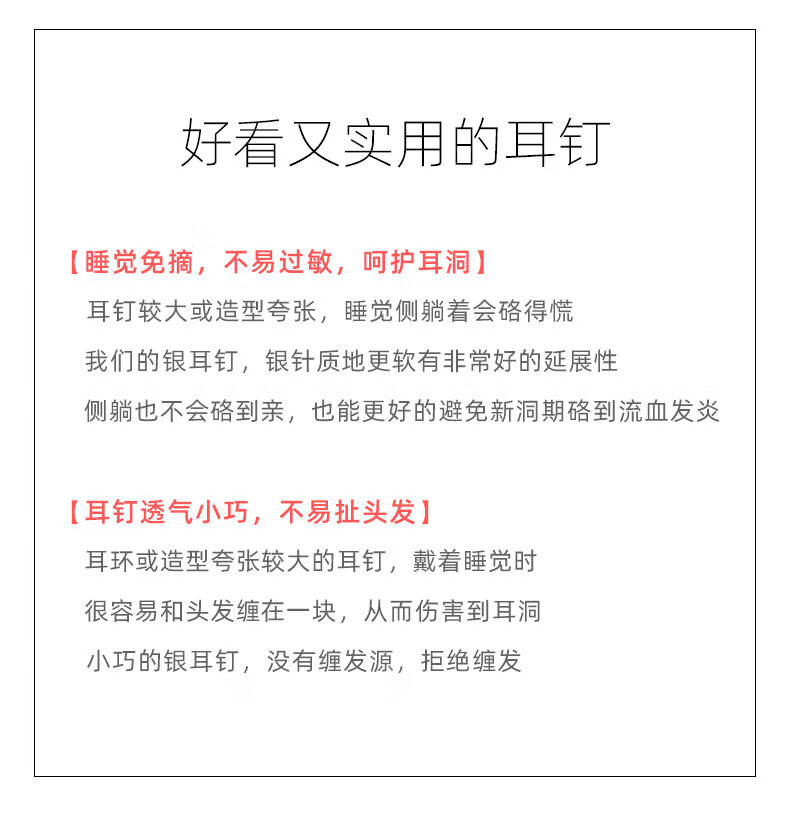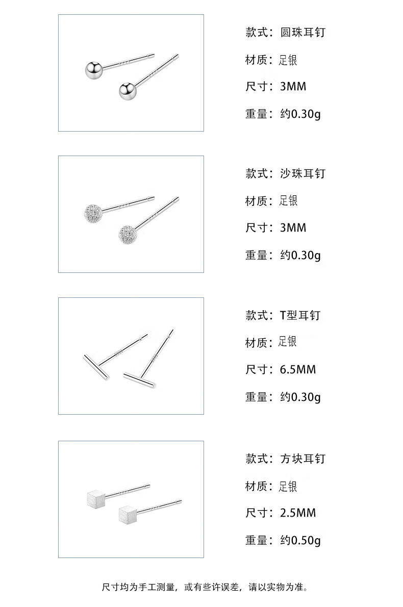 Lao Fengxiang pure silver earrings for women 2025 new sterling silver earrings to support ear piercings to prevent inflammation and sleep without removing ear sticks earrings earrings four-piece set of pure silver earrings - Lao Fengxiang brand gift box