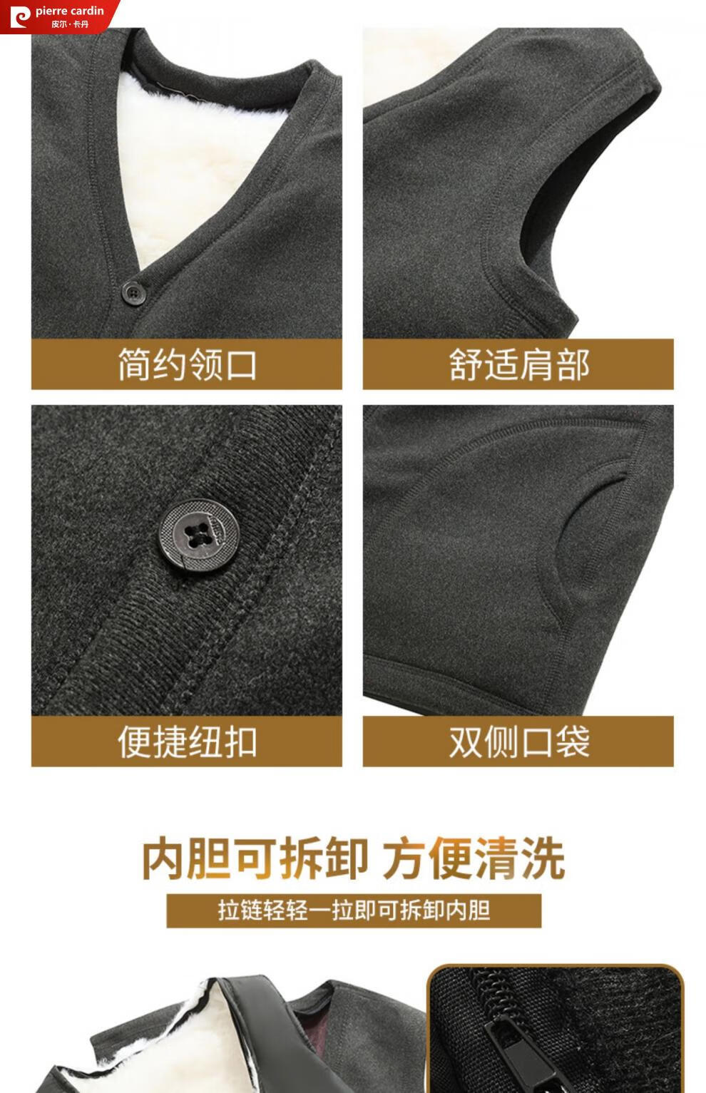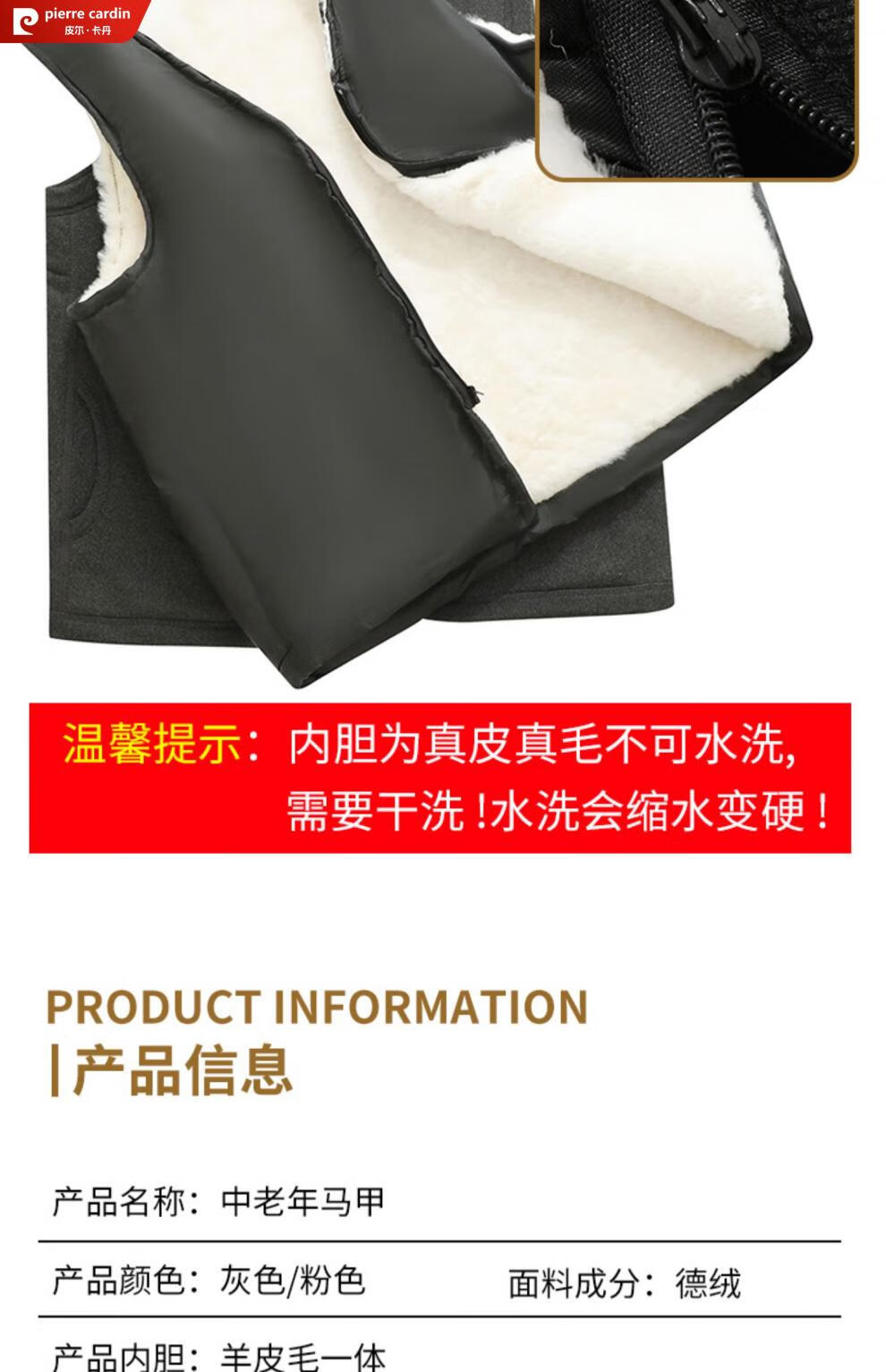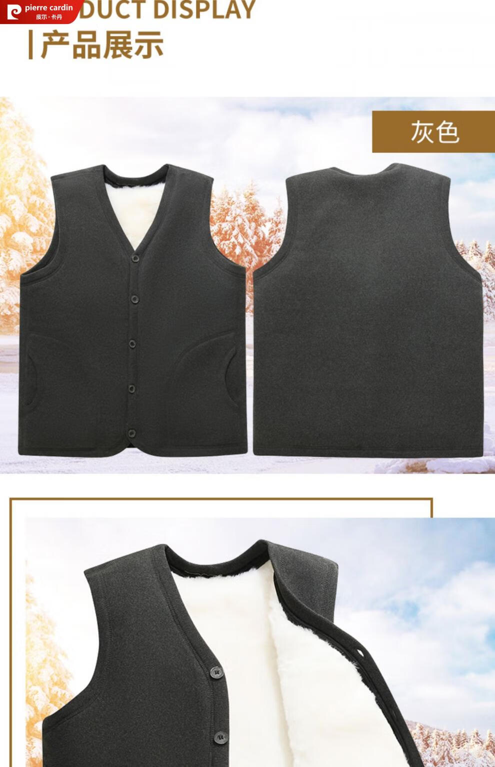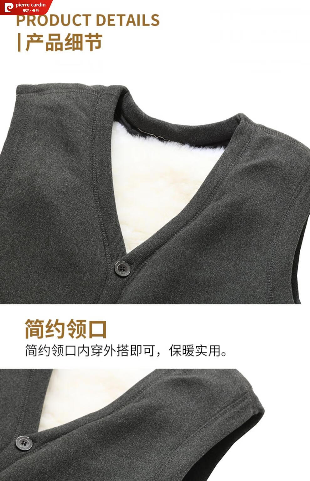 皮尔卡丹羊毛马甲皮毛一体男加绒加厚开衫中老年爸爸装冬季保暖背心棉马夹 灰色 (羊皮毛一体) 3XL (建议120-150斤)