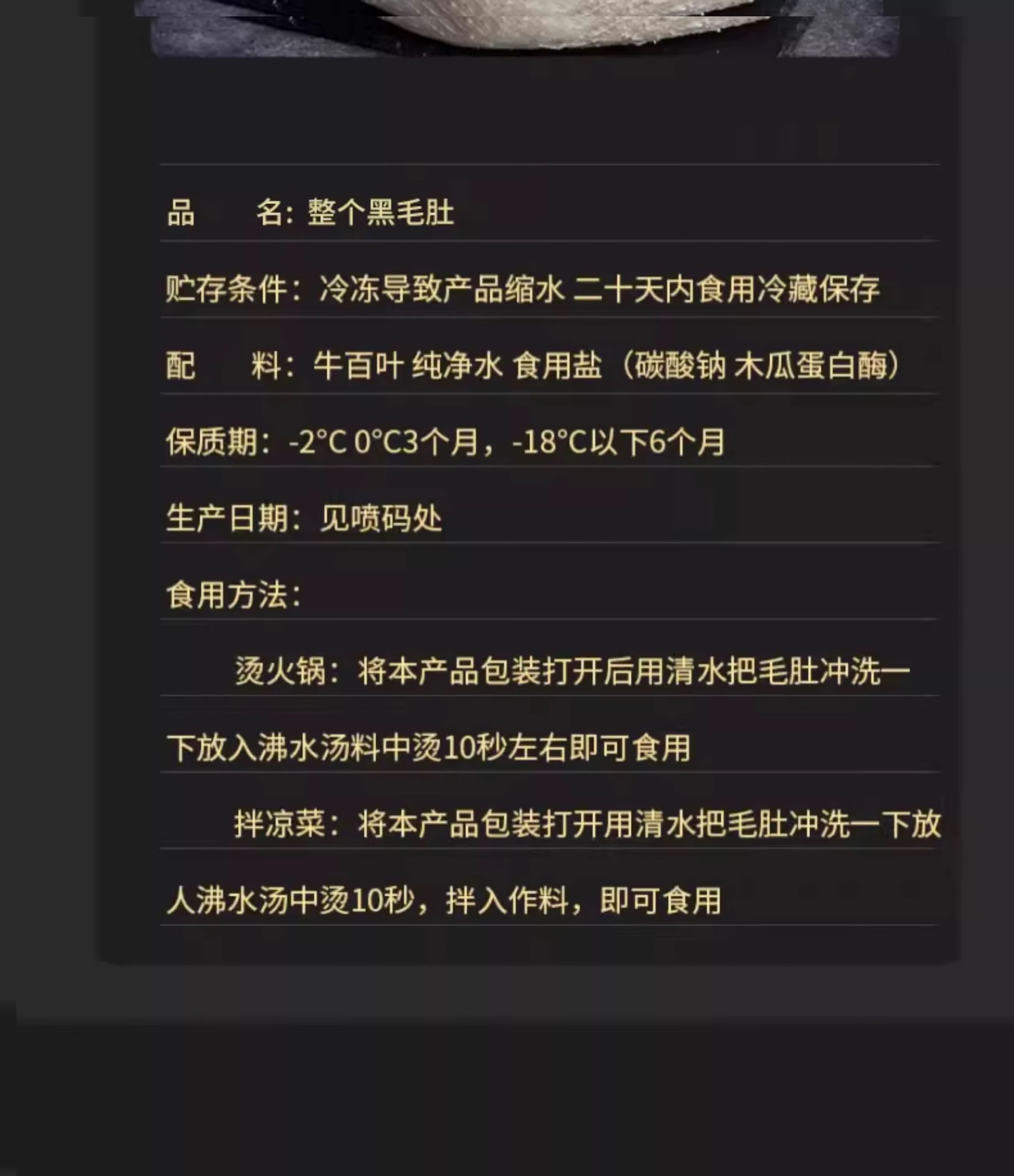 Necessary for hot pot: Black tripe 3Jin Jin is equal to 0.5kg. Fresh beef tripe with 10-leaf leaves and large leaves. Must-have for hot pot: Black tripe 500g*2 bags