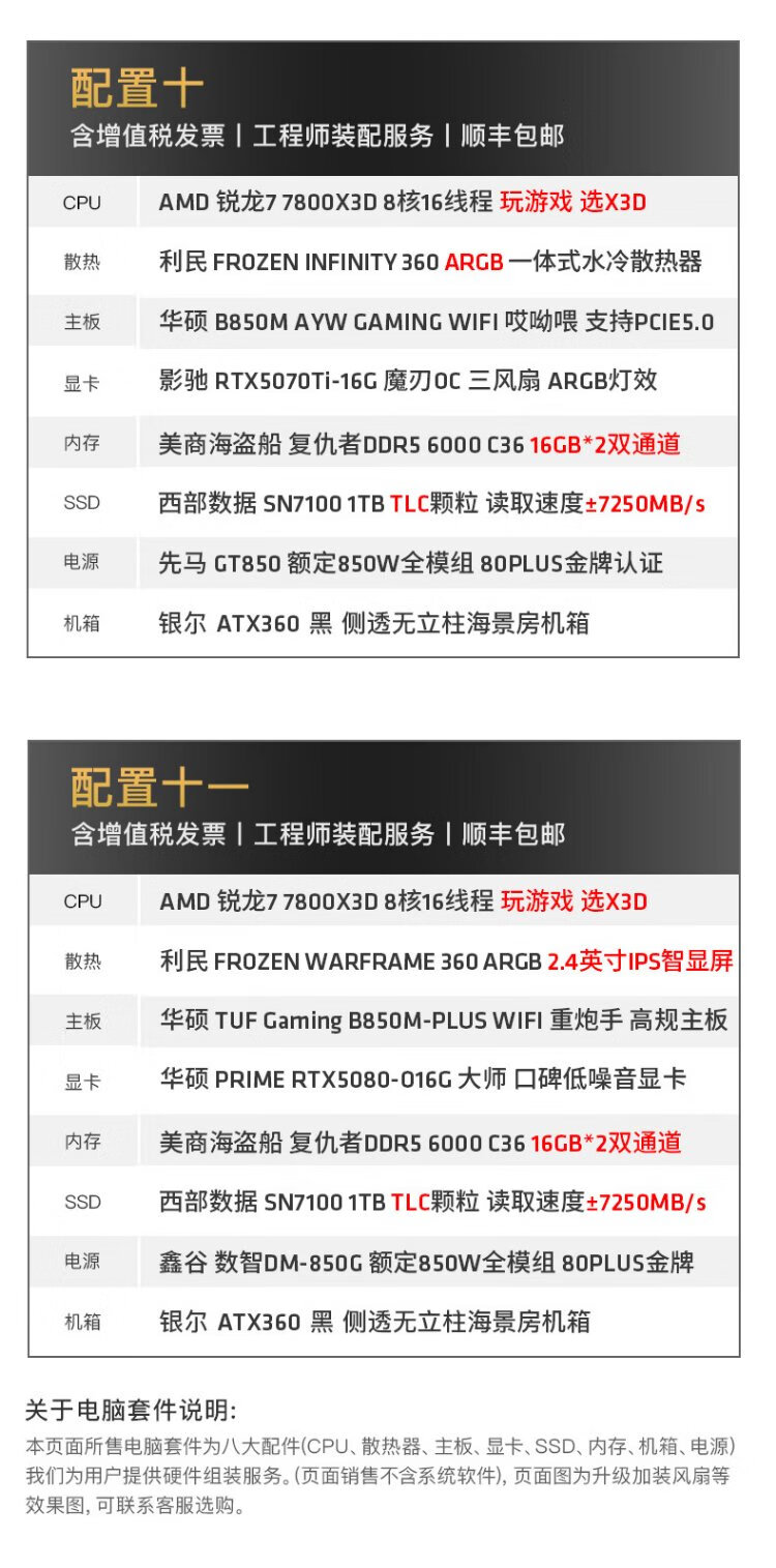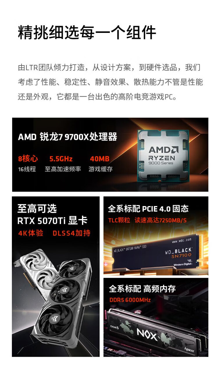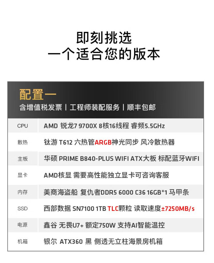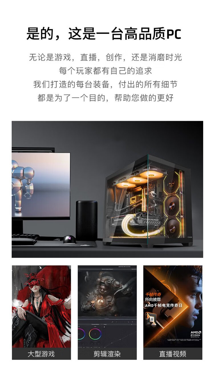 AMD/Lang R7-9700X/7800X 3D assembled computer RTX5060/5070 graphics card DIY sea view room game console entertainment live broadcast desktop computer play delta configuration one R7-9700X no graphics card host single host