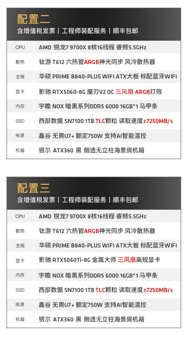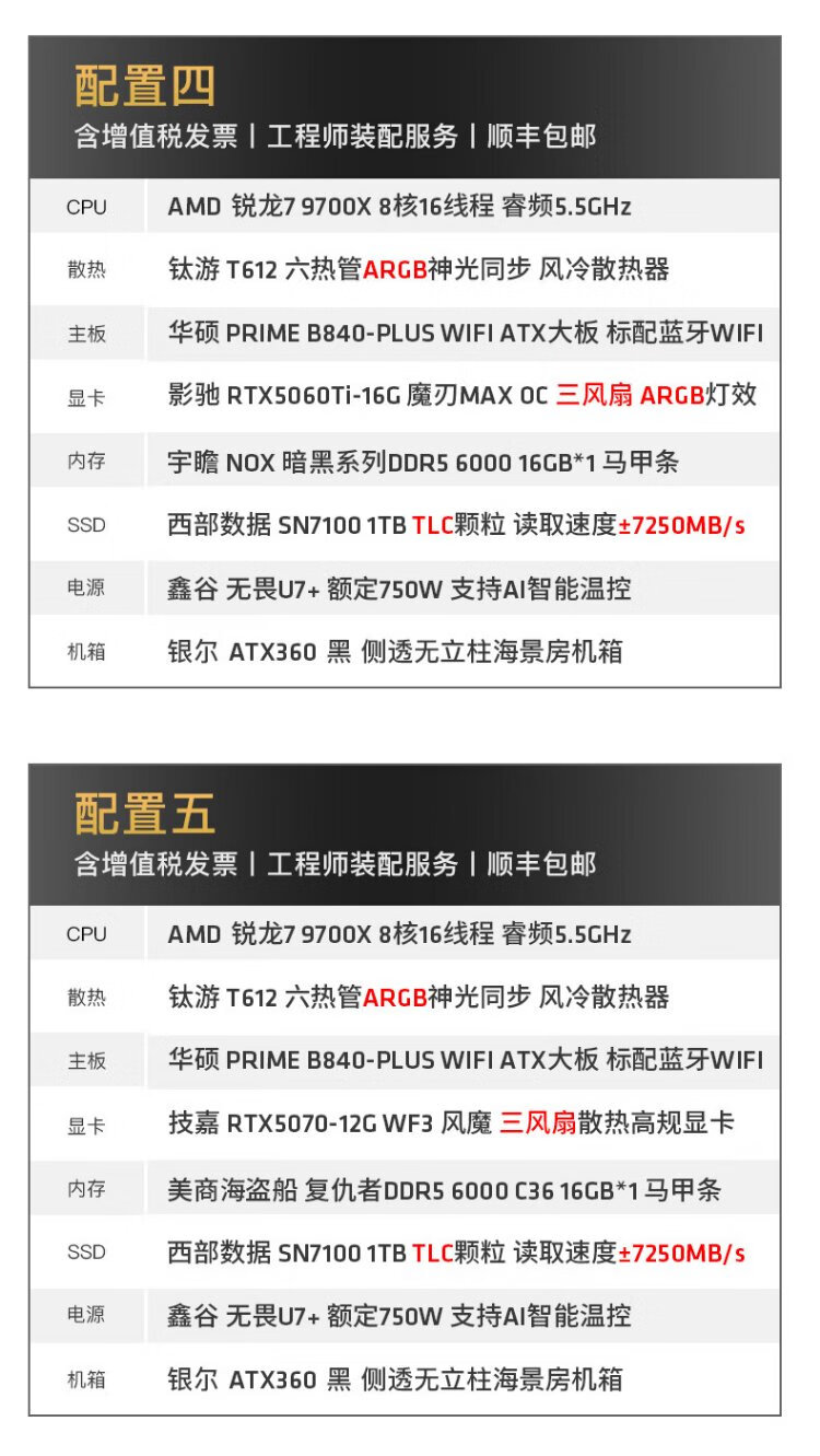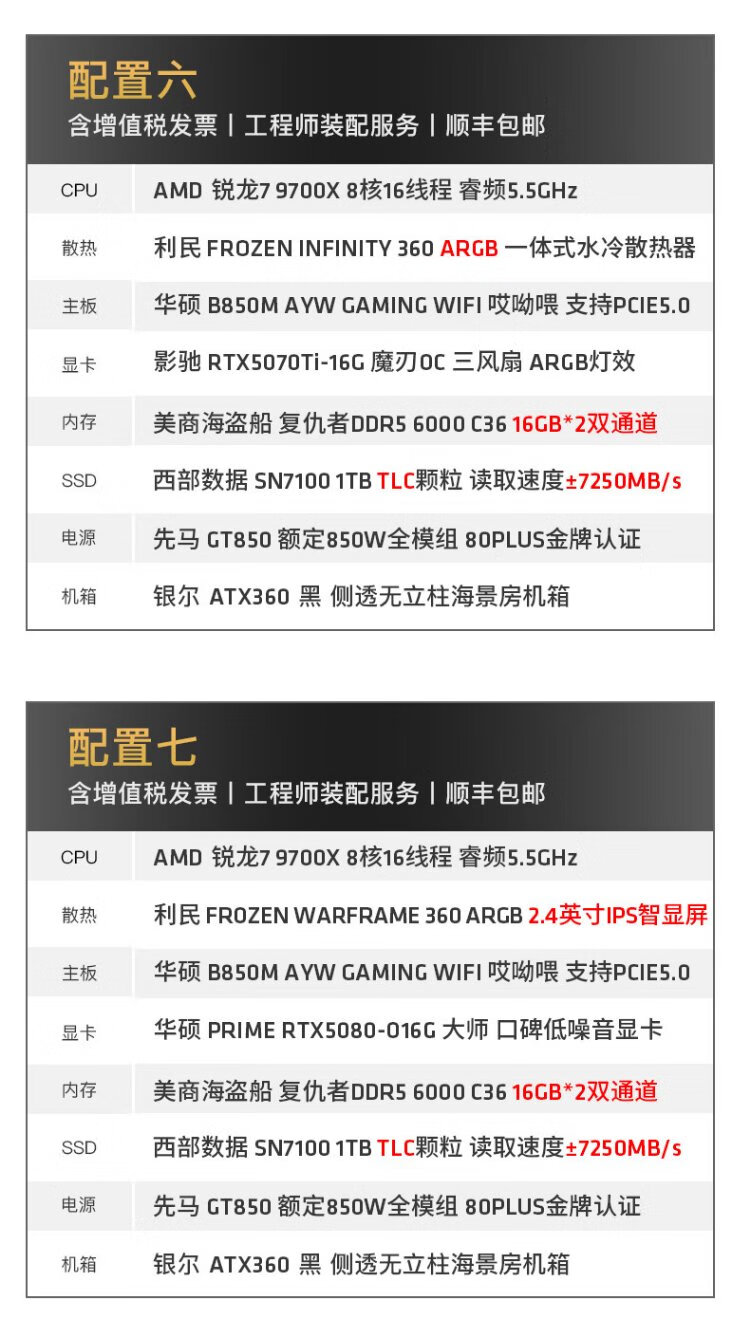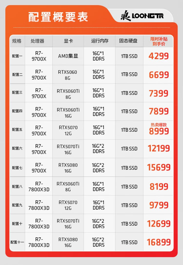 AMD/Lang R7-9700X/7800X 3D assembled computer RTX5060/5070 graphics card DIY sea view room game console entertainment live broadcast desktop computer play delta configuration one R7-9700X no graphics card host single host