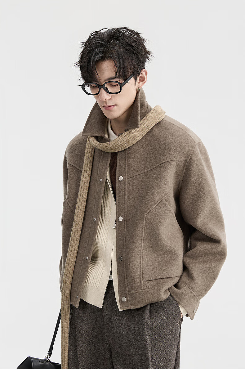Earl Zall wool double-sided woolen jacket men's 2025 early winter new commuter short coat men Z541601 mocha color M (170)