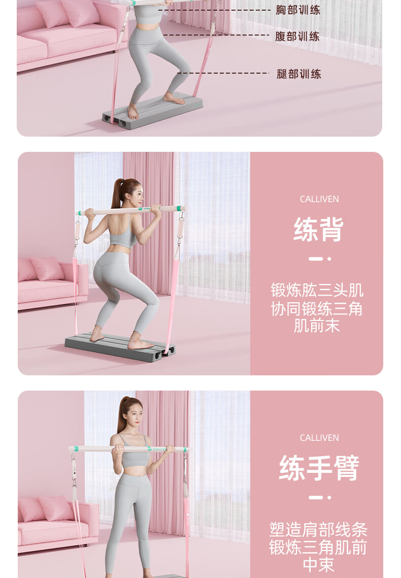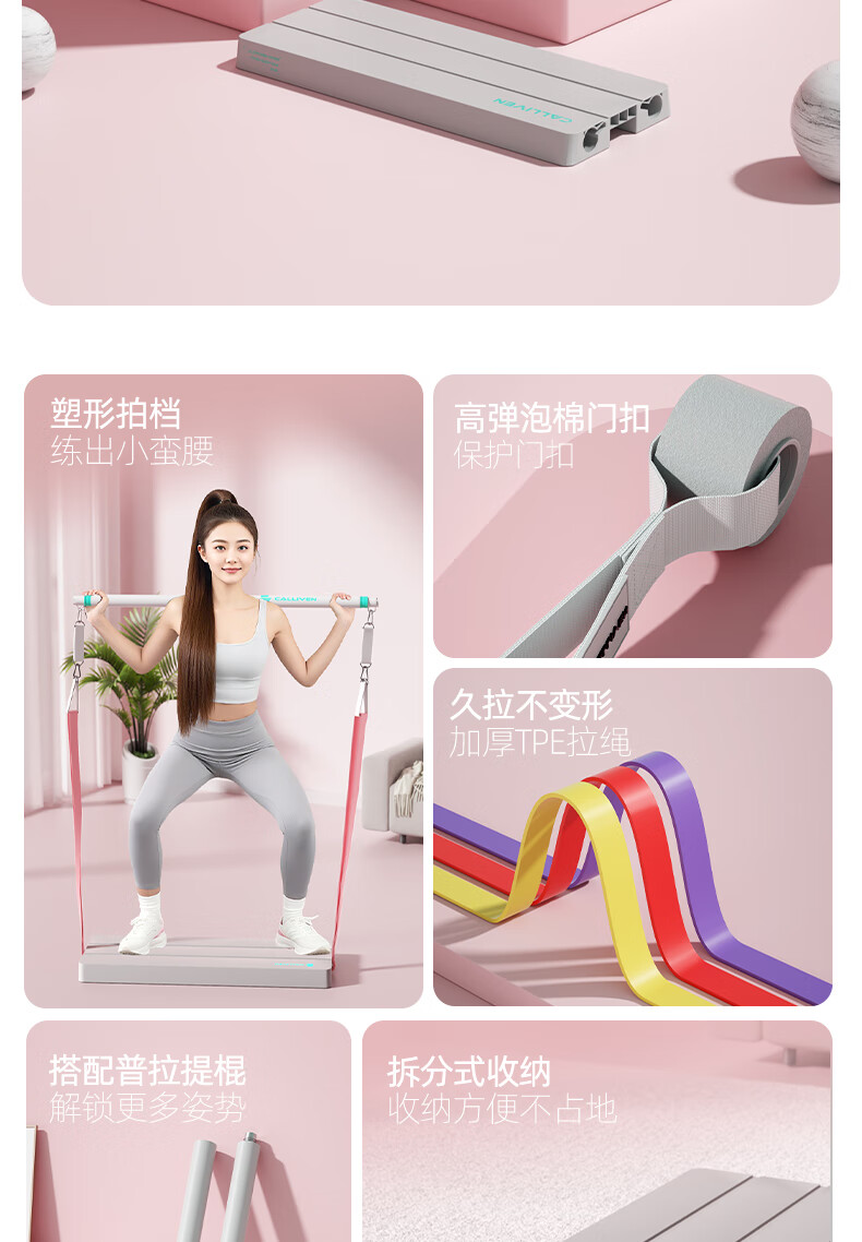 CALLIVEN elastic band thin shoulder Pilates pole pedal home fitness thin back women's tension rope resistance band squat trainer The tension value can be adjusted according to the number of different pulling ropes