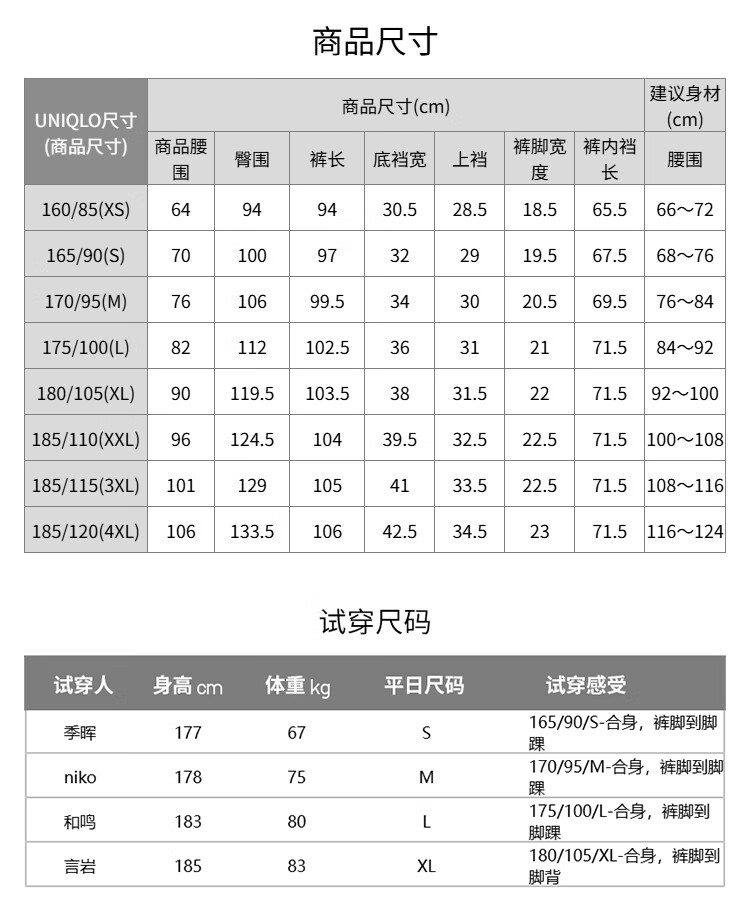 China (cm) 160-165/84-86 165-170 / 88-90 167-172 / 92-96 168-173 / 98-102 170-176 / 106-110