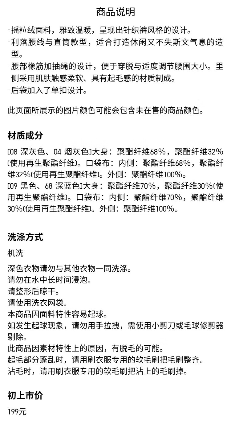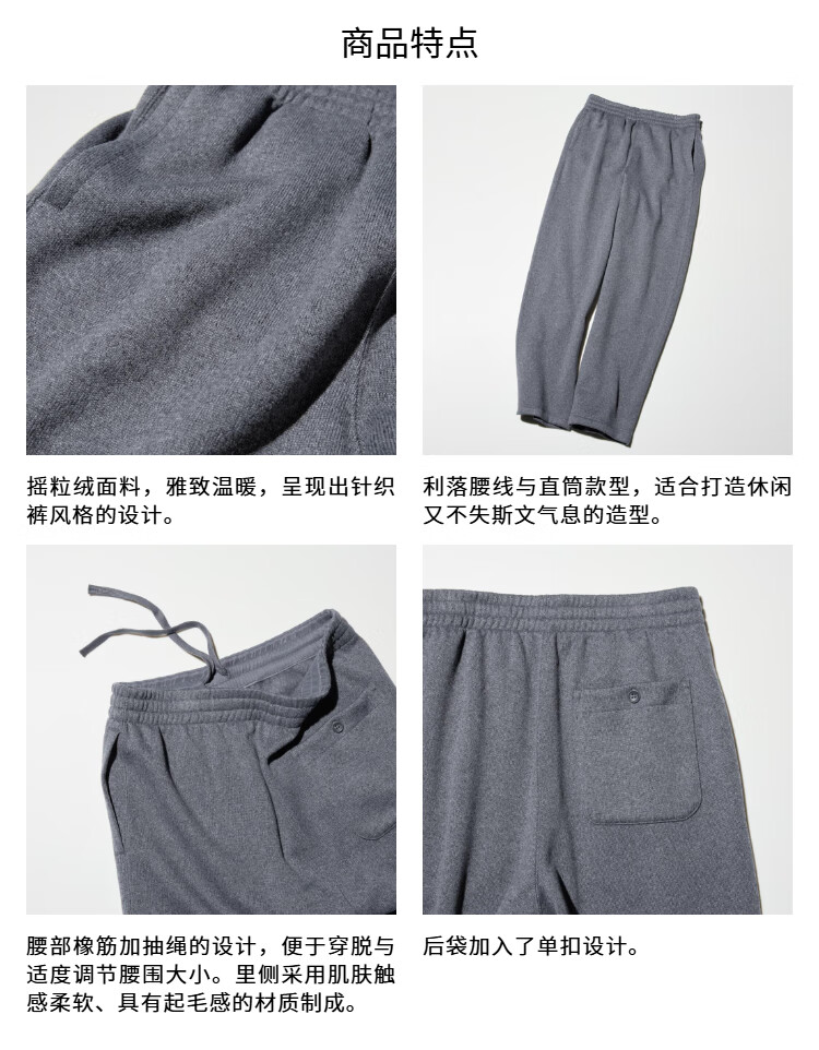 Uniqlo Men's and Women's Knitted Comfortable Nine-Point Pants/Polar Fleece Lined Trousers 25 Autumn and Winter 479933 09 Black M