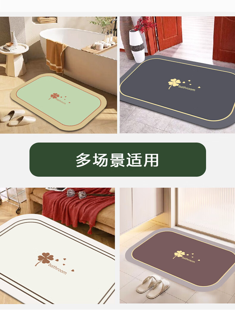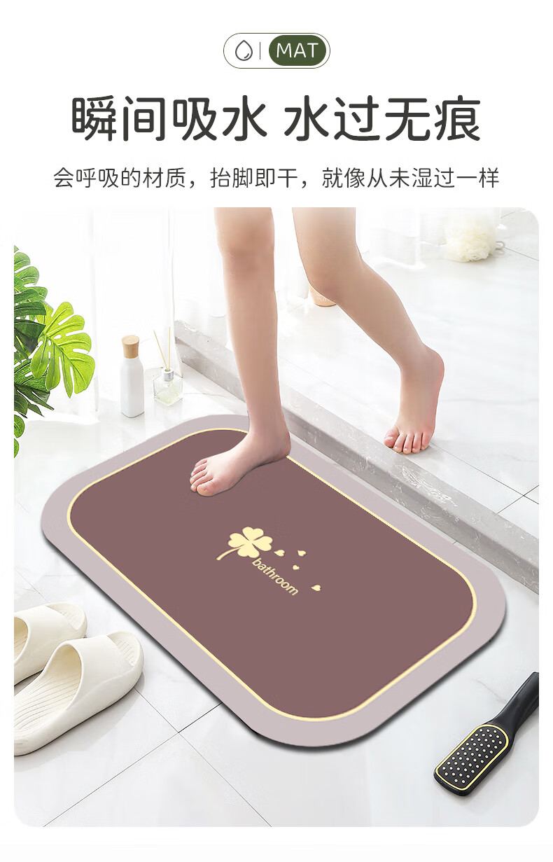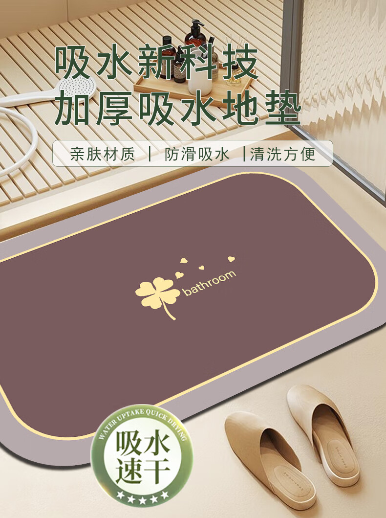 Bathroom floor mat absorbs water, non-slip, quick-drying, ultra-thick bathing foot mat, toilet bathroom new anti-slip mat, four-leaf clover-ka 40X60CM